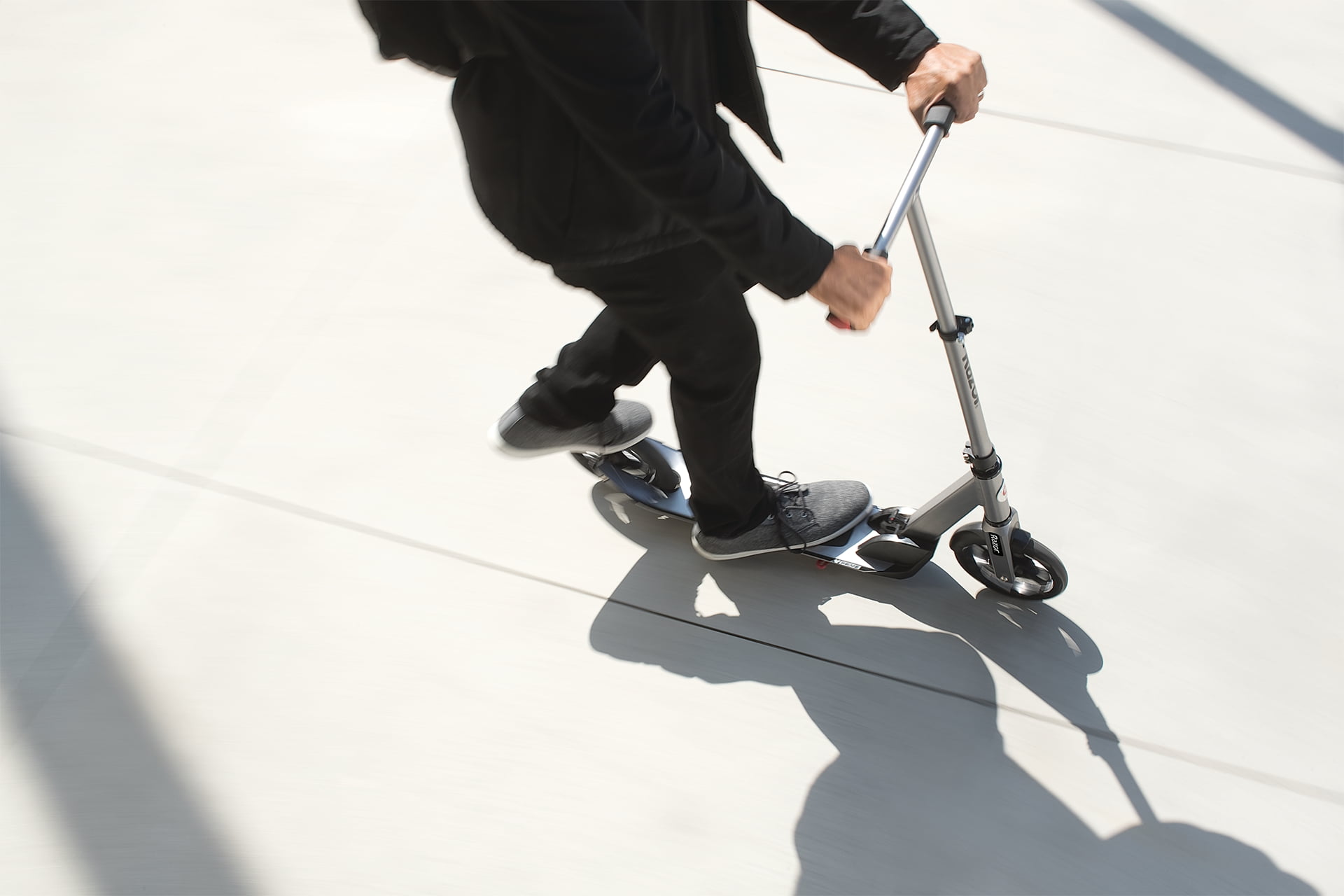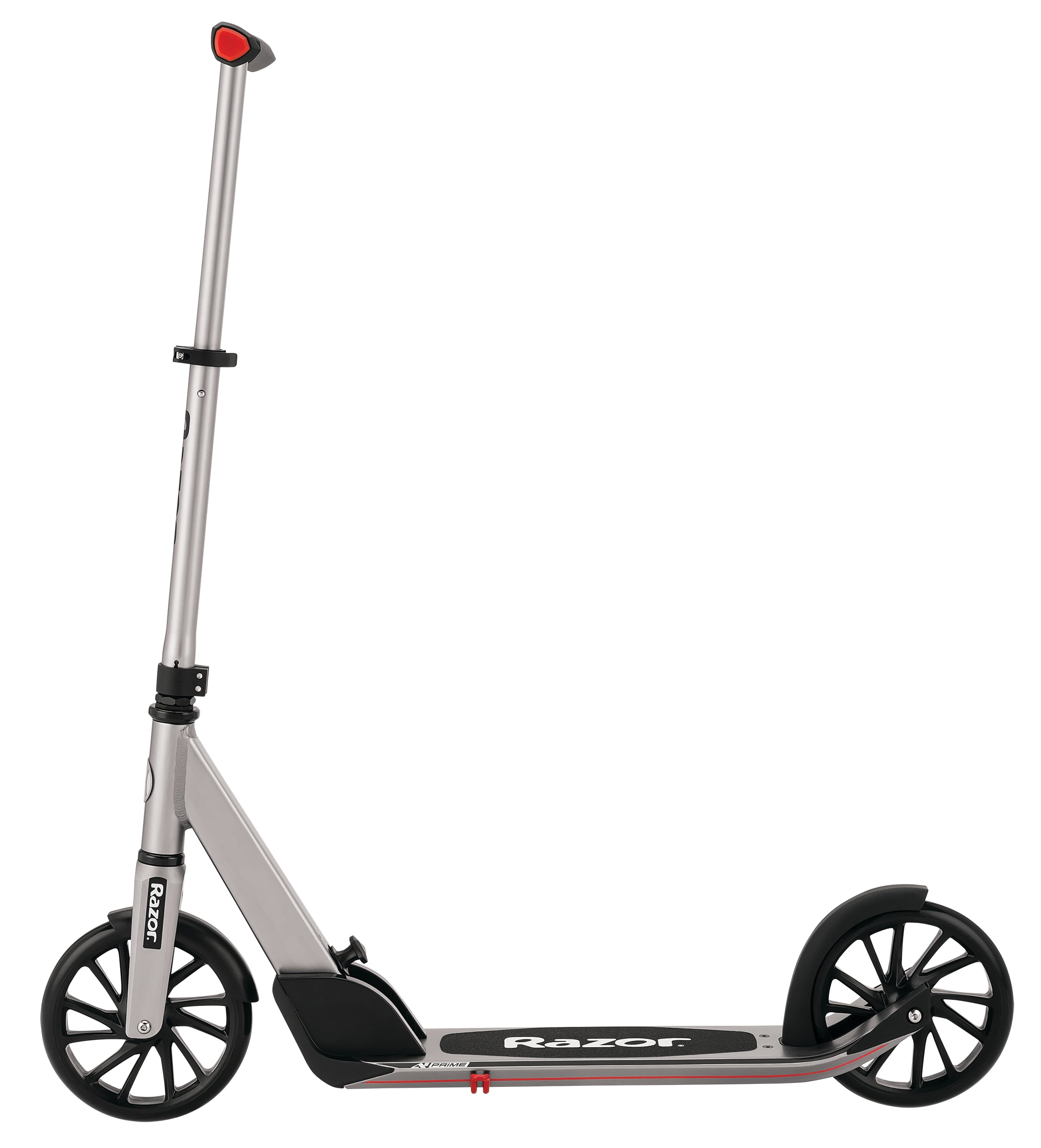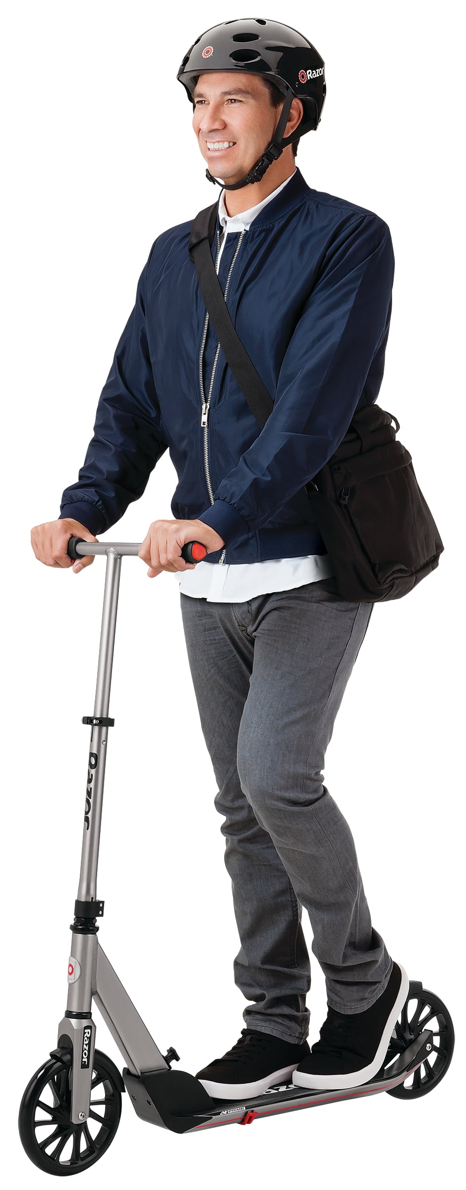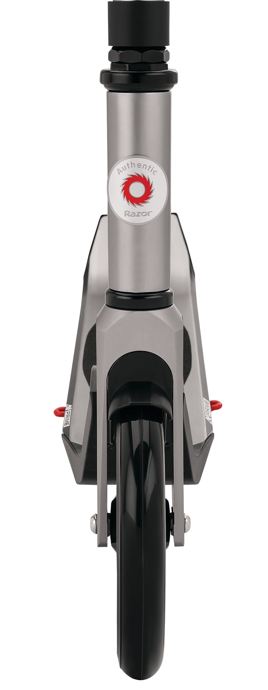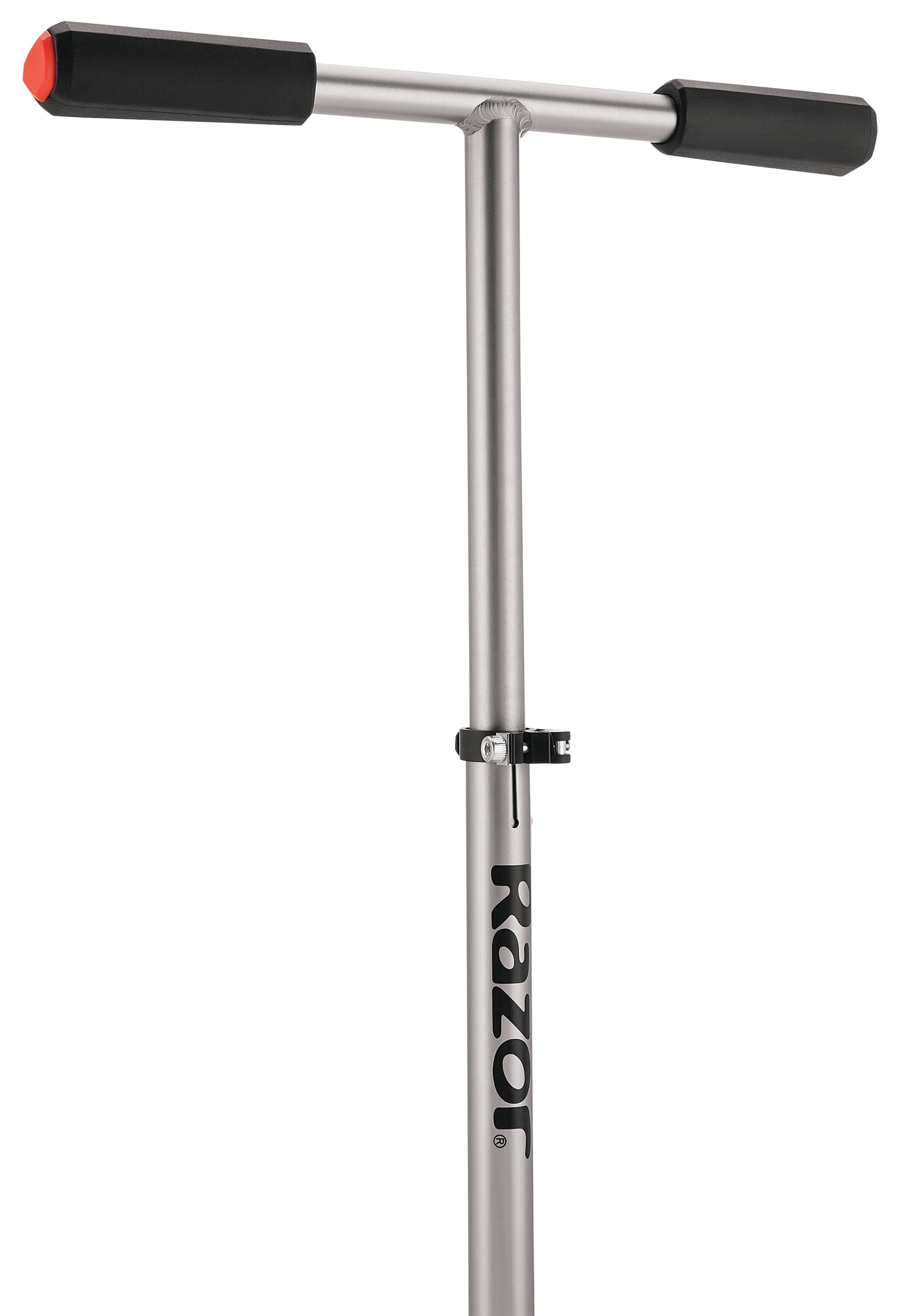Made of aircraft-grade aluminum for sturdiness Razor?s sleekest, high-style, sophisticated scooter boasts design and craftsmanship unique to the scooter market. A durable, gunmetal, anodized aluminum frame is a core feature of craftsmanship to comfortably support riders up to 220 pounds (100 kg). Easy-adjust handlebars, with a two-degree sweep, accommodate taller riders. Extra-large deck provides extra foot room for extended ride comfort. Includes patent-pending, anti-rattle technology for a smooth, quiet ride. Premium quality and construction including a one-piece, aluminum, precision billet fork, anodized aluminum frame, and rear-fender brake. Features extra-large, 8?(200 mm),urethane wheels with exclusive spoke design. Retractable, center kickstand is accessible from both sides of the scooter and holds scooter upright when not in use ?no need to lean or prop up. Frame: Anodized aluminum Handlebars: Width16.75? (425 mm), two-degree sweep, adjustable-height Grips: Prism-shaped design molded in soft rubber Clamp: Double-stacked Downtube: Hydro-formed aluminum, featuring patent-pending, anti-rattle, folding mechanism Fork: One-piece billet, aluminum Deck: Extrusion profile: length 13.4? (340 mm), width 5.1? (130 mm) Wheels: Exclusive spoke design, 8? (200mm),urethane Brake: Rear-fender Kickstand: Retractable, center stand Age: 8+ Max Rider Weight: 220 lb. (100 kg) Some assembly required Color: Gunmetal Assembled Product Dimensions:36.2?x 17.1?x 40.2? (920 mm x 433 mm x 102 mm) Product Weight:11.2 lb. (5.09 kg)