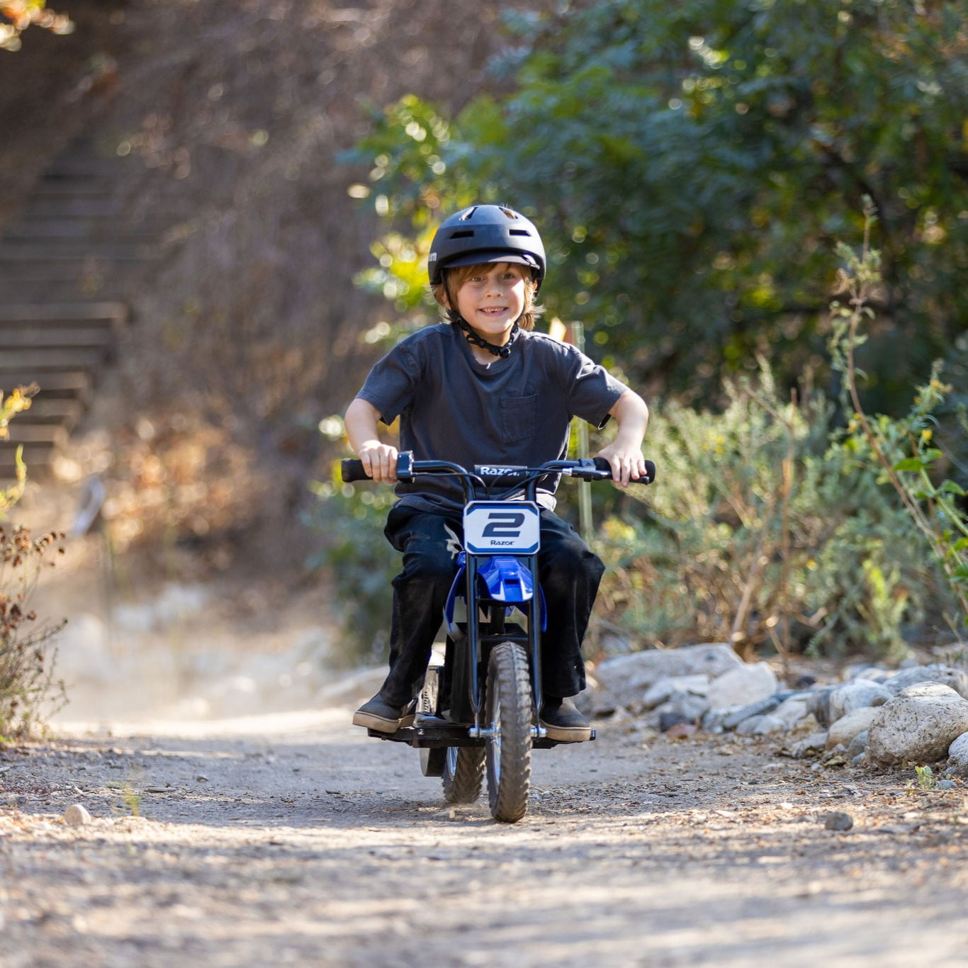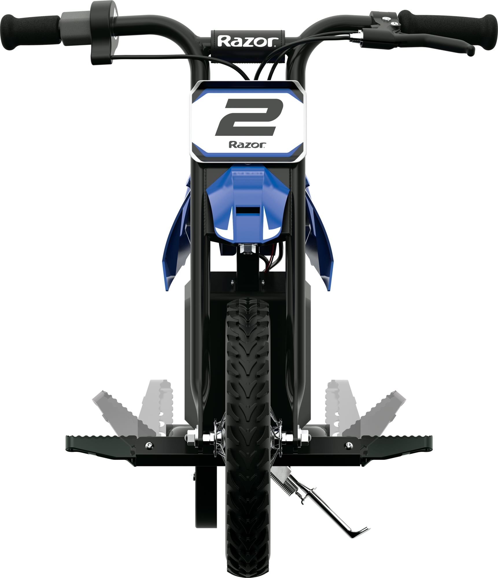 Razor’s smallest electric dirt bike, scaled down to size for riders ages 5 and up. Features a crossbar-reinforced handlebar, 12” spoked wheels with pneumatic tires, retractable kickstand, and hand-operated rear brake. Carries riders at speeds of up to 8 mph (13 km/h) in the default HIGH speed setting. A high/low speed control switch allows the selection of the right maximum speed. The 12V sealed lead-acid rechargeable battery boasts up to 80 minutes of continuous use on a single charge in the Low Speed Mode. Run Time: Low Speed Mode – up to 80 minutes of continuous use, High Speed Mode – up to 40 minutes of continuous use Speed: Low Speed Mode – up to 5 mph (8 km/h), High Speed Mode (default) – up to 8 mph (13 km/h) Motor: 100 watt, high-torque, chain-driven, rear-wheel drive Throttle: Twist-grip Brake: Hand-operated, rear Frame: Steel with authentic dirt bike geometry Fork/Handlebars: Steel Fairings: Shatter-resistant, plastic Grips: Foam Wheels: Spoked 12” (305 mm) wheels with pneumatic tires Kickstand: Retractable Foot pegs: Folding, metal Battery: 12V sealed lead-acid, rechargeable Electrical system certified compliant with UL2272 by ACT Lab LLC, an accredited testing lab. Max rider weight: 110 LBS Age: 5+ in Low Speed Mode, 7+ in High Speed Mode Age Group: Child Gender: Unisex Assembled product dimensions: 36.42″ (925mm) l x 21.46″ (545 mm) w x 25.16″ (639 mm) Assembled Product Dimensions: 36.42″ (925mm) L x 21.46″ (545 mm) W x 25.16″ (639 mm) H Product Weight: 29.7 lb (13.5 kg)