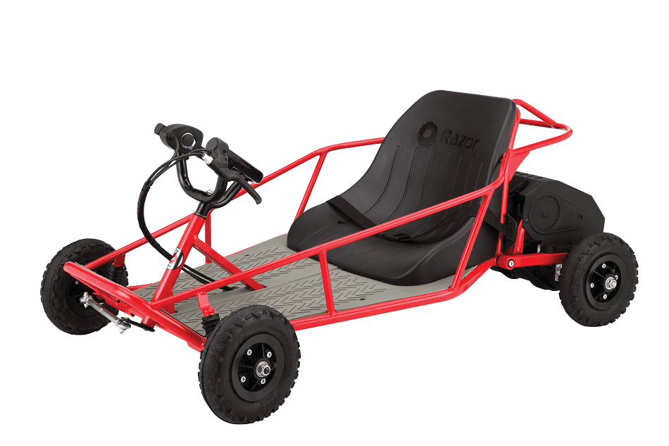 Electric Powered Boost –Features a 250-watt reduction drive motor for maximum torque along with a variable-speed throttle and chain-drive for speeds up to 9 mph (14 km/h) Kid-Sized Beach Buggy–8”(203 mm) knobby, pneumatic tires and terrain-following rear suspension come together for a smooth ride that’s ideal for kids (8+) first off-road riding Maximum Control –Operation is a breeze thanks to the hand-controlled accelerator and hand-operated rear disc braking system. Safe and Secure -The side roll cage creates a barrier between the rider and the outside, and the bucket seat with a lap belt adds security. Specifications: Speed: Up to 9 mph (14km/h) Run Time: Up to 40minutes of continuous use Motor: Variable-speed, high-torque, chain-driven Suspension: Terrain-following, rear Throttle: Thumb trigger Brake: Hand-operated, rear disc Frame: Steel Wheels: Steel with 8” (203 mm) knobby, pneumatic tires Seat: Bucket-style with lap belt Battery: 24V (two 12V) sealed lead-acid, rechargeable Electrical system certified compliant with UL2272 by ACT Lab LLC, an accredited testing lab. Includes: Battery charger and flag Age: 8+ Max Rider Weight: 120lb (54kg) Assembled Product Dimensions: 43″ x 27.6″ x 18.5″ (109 cm x 70cm x 47cm) Product Weight:64.7lb (29.4kg)