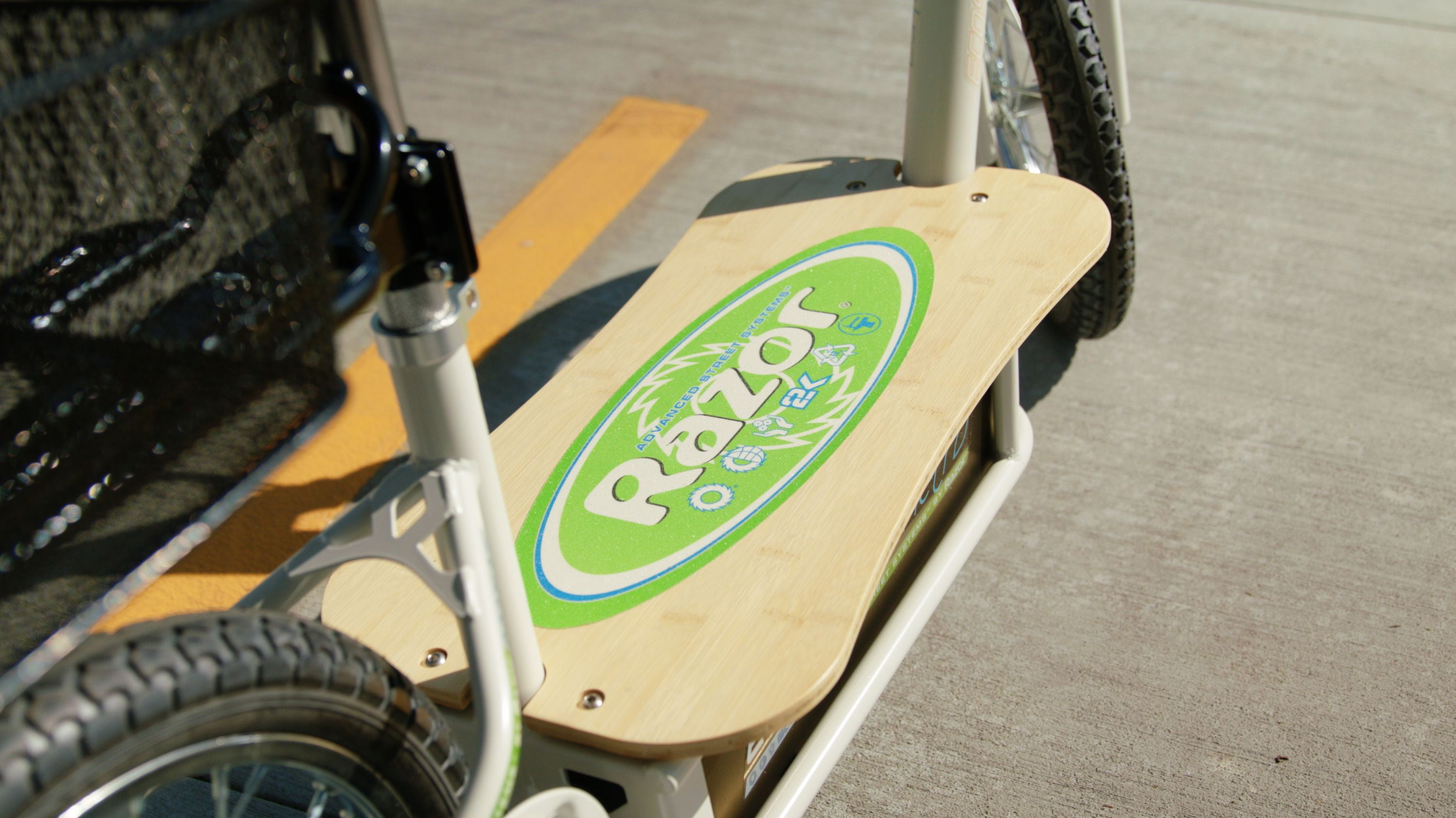 SIT AND RIDE –Soft padded seat and wide bamboo deck make for plenty of foot room and a cushy, stylish ride. SMOOTH HANDLING–Air-filled 16″tires(406 mm)provide a smoother, safer ride on uneven terrain. Comfortable, twist-grip hand throttle and hand brake provide ease of control. CARGO CARRIER –Tote your groceries, books, or bags with the handy detachable luggage rack and basket. FAST AND POWERFUL –A 500-watt, high-torque, chain-driven motor boasts an up to 18 mph (29 km/h) max speed with a range of up to 12 miles (19 km)and up to 40 minutes of continuous use. SAFETY AND STABILITY –Rear-wheel drive shifts weight to the rear, enhancing both drive traction and ease of steering Battery: 36V (three 12V) sealed lead-acid, rechargeable (Battery charger included) Electrical system certified compliant with UL2272 by ACT Lab LLC, an accredited testing lab. Some Assembly Required Age: 16+ Age Group: Teen, Adult Gender: Unisex Max Rider Weight: 220 lb (100 kg) Assembled Product Dimensions: 57″ x 20″ x 42.9″ (146 cm x 51 cm x 109 cm) Product Weight: 65.12 lbs (29.6 kg)