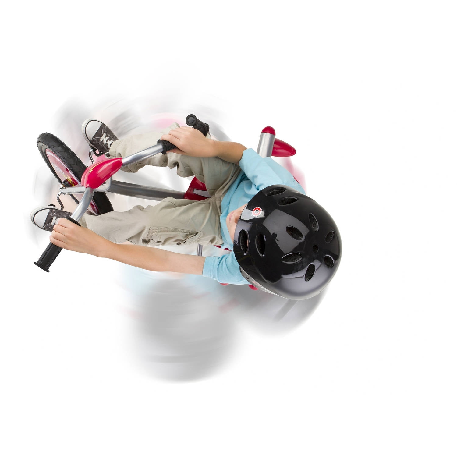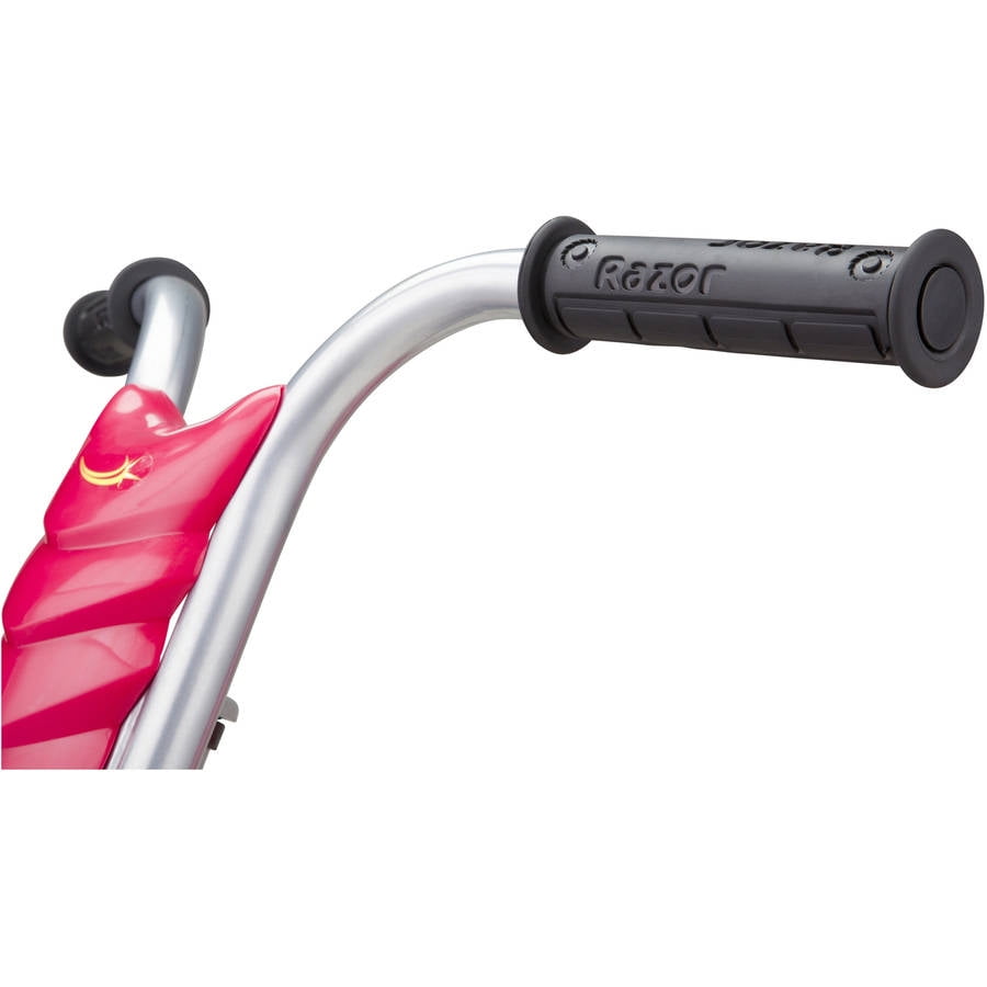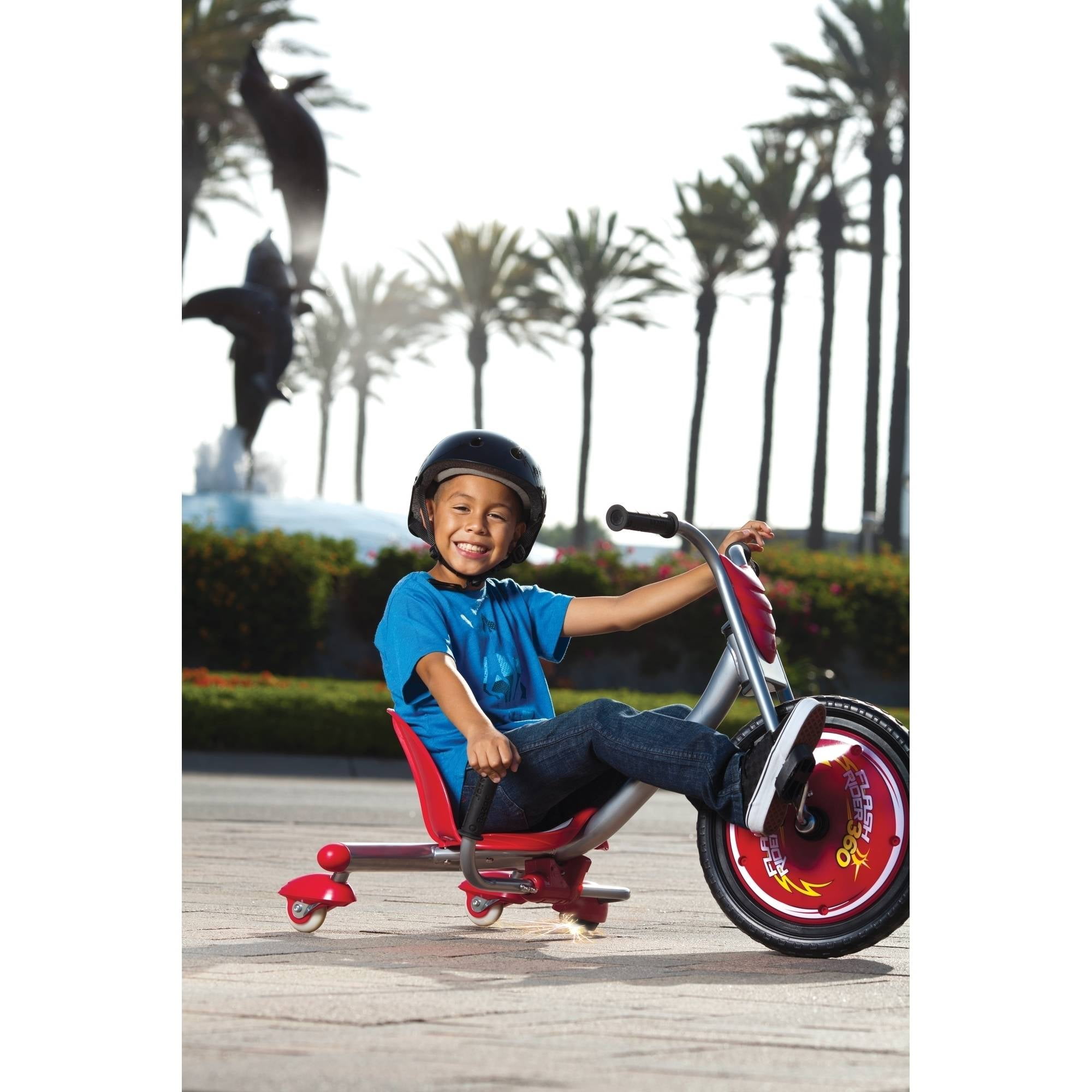 Razor Flashrider 360 Enjoy fast 360-degree spins with this Razor flash rider 360 ride-on Full-sized bucket seat Positioned for pedaling while rider is reclined to create a low center of gravity Pull the spark lever to let them fly Dual-inclined caster wheels for swift rotation Maximum weight: 160 lbs Some assembly required with the 3 wheel ride-on 6-month limited warranty from date of purchase Designed for children ages 6 years and up Welded steel frame and fork High-impact wheels MX-style handlebars with rubber grips Replaceable Spark cartridge International Disclaimer: This Razor product is produced for sale in the United States and Canada. The Razor warranty for customers who intend to use it outside of the United States and Canada is not applicable. Razor products produced for and sold in international channels are warrantied as applicable in such foreign countries. Call +1 866 467 2967 or email [email protected] for more details regarding Razor products that require service, were purchased in the United States or Canada, and are now outside the United States or Canada. On these products, which require service, consumers are responsible for all costs including shipping, resulting taxes, duties of replacement parts and local power adapters at the owner?s expense.
