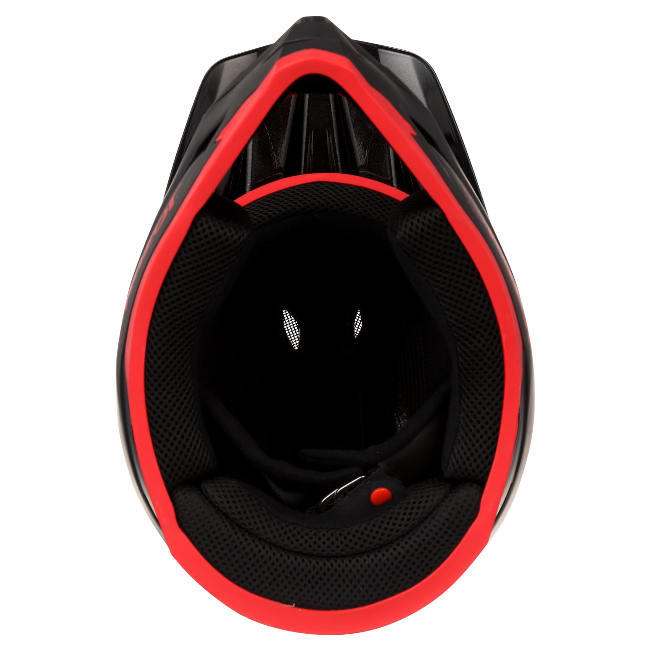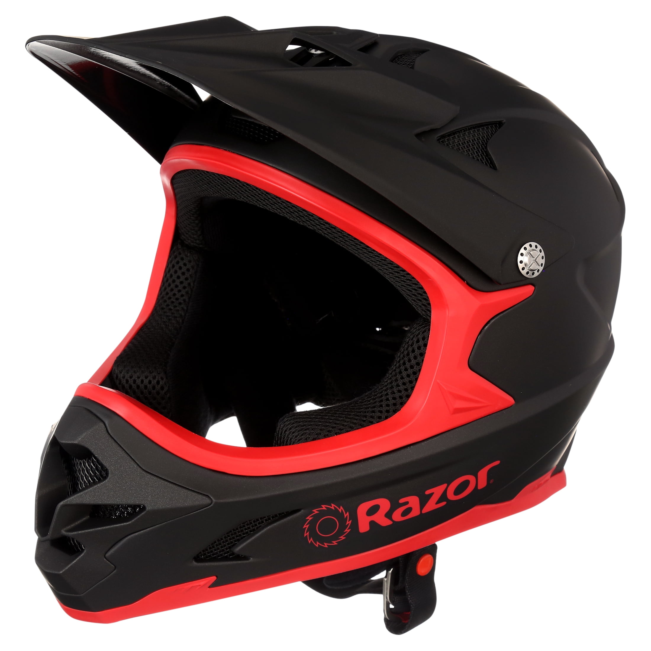 Black/Red For Ages 8 and Up Large eye-ports for goggles Complies with CPSC Full face protection Proven Razor brand helmet 1 year manufacturer’s warranty Vented for added convenience Child/Youth Unisex Multi-Sport