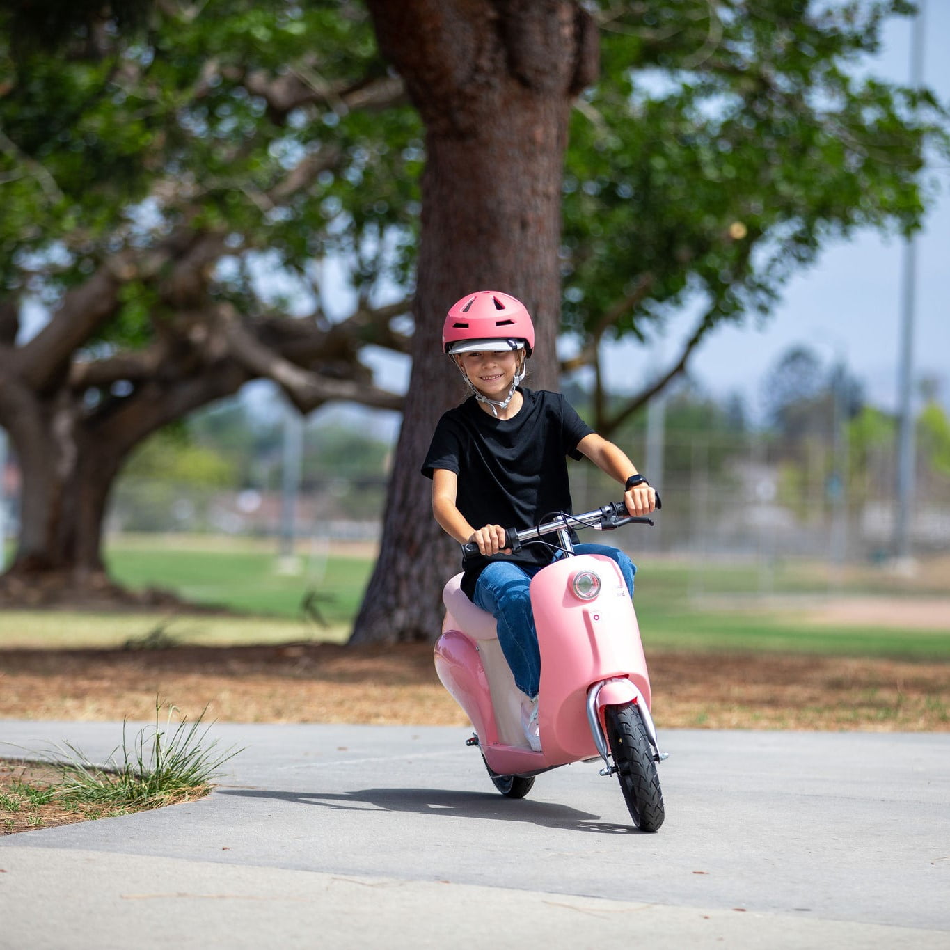 Authentic But New – With its padded seat, twist-grip throttle control, and hand-operated brake, the Pocket Mod is a scaled-down European scooter that looks and feels like the real thing. Electric-powered Fun – The high-torque, hub-driven motor boasts speeds up to 15 mph (24 km/h) in the default High Speed Mode. A high/low speed control switch allows the selection of the right maximum speed. Built-in Storage and Stability – The secret storage compartment under the seat makes it easy to carry your essentials with you, and the dual kickstand keeps everything upright. Color Match Your Style – With many color variations available, personalize your ride with the shade that best suits your vibe. Run Time: Low Speed mode – up to 80 minutes of continuous use, High Speed Mode – up to 40 minutes of continuous use Speed: Low Speed Mode – up to 10 mph (16 km/h), High Speed Mode (default) – up to 15 mph (24 km/h) Motor: 250-watt, high-torque, rear-wheel, brushless, hub-driven Battery: 24V (two 12V) sealed lead-acid, rechargeable Electrical system certified compliant with UL2272 by Guangdong UTL Co., LTD., an accredited testing lab. Wheels: 12″ (305 mm), mag wheels with pneumatic tires Age Group: Child, Tween, Teen Age: 8+ in Low Speed Mode, 13+ in the High Speed Mode Max Rider Weight: 170 lbs (77 kg) Includes: Decal sheet (Capri only), Battery charger (all models) Some assembly required Assembled Product Dimensions: 50.59″ x 18.42″ x 27.63″ (128.5 cm x 46.8 cm x 70.2 cm) Product Weight: 49.38lbs (22.4 kg)