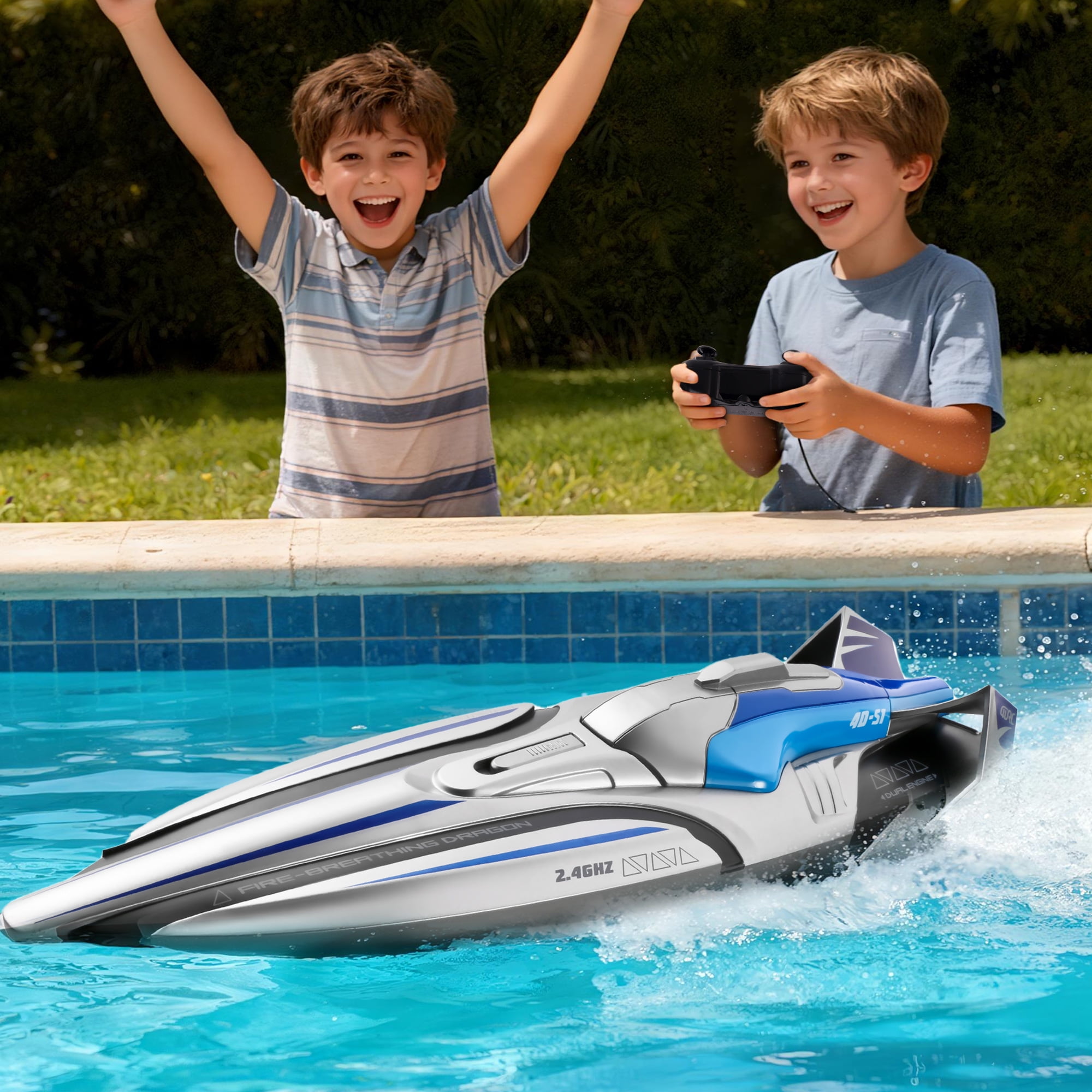 Remote Control Boat, 15KM/H Fast RC Boat with 2 Rechargeable Batteries, Pool Toys Water Toys for Boys & Girls