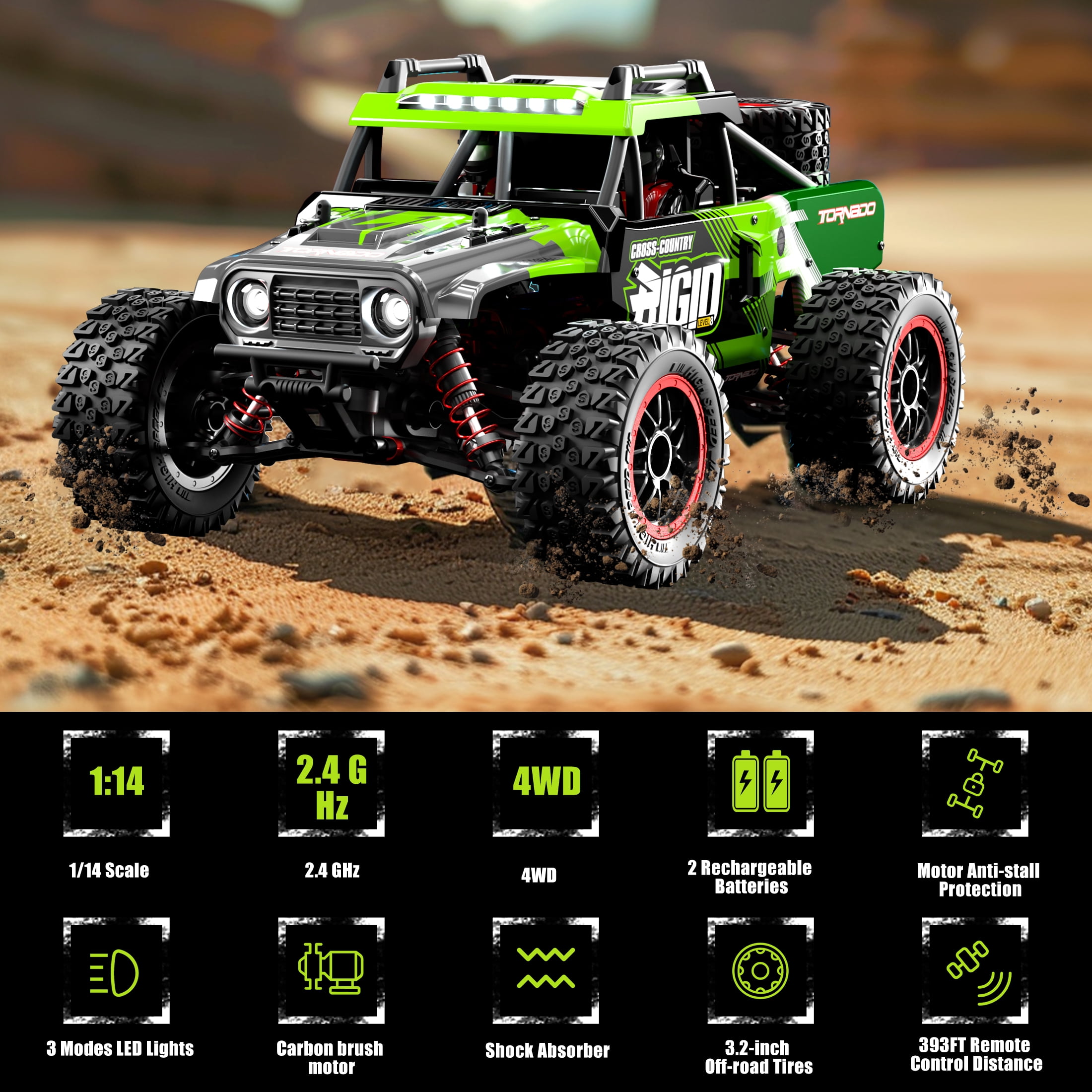 RC Cars 1:14 4WD High Speed Remote Control Truck 60+km/h Fast All Terrain Off Road RC Truck Toy Gifts for Kids Adults, 2 Batteries