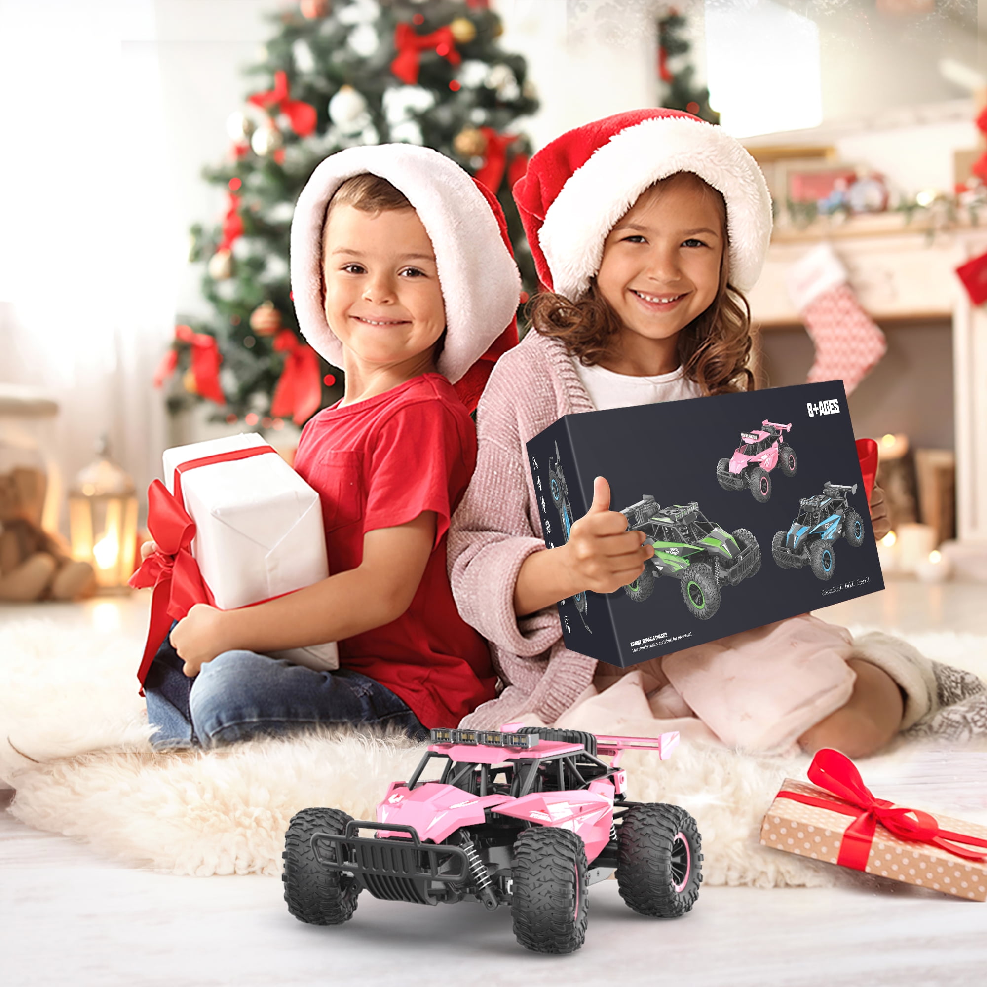 【Durable & All Terrain Car】: All products have passed drop test and impact test, so they can withstand unexpected operation, such as crashing into wall or stone. and suspension system provide good grip and buffering, so kids can drive this monster car anywhere like beach, grass and concrete road. 【Cool Chassis Lights & Headlights】: Flashing lights make this RC car unique and different. It can run around the house or yard even at night, catching the eyes of kids and dogs. This rc truck will help encourage them to go outside and play, instead of playing games on cellphone/tablet. 【Girl’s Dream RC Car】: A rare and pretty pink shell that girls love. This beautiful four-wheel pink remote control car immerses girls in a vibrant world, allowing them to show their driving skills, unleash their passion and adventurous spirit. 【20KM/H Speedy 1:16 RC Cars】: Equipped with strong motor and 2 powerful safety batteries, this pink remote control monster truck can reach speed of 20km/h and play time extends to . Anti-interference 2.4GHz radio control is responsive and will not confuse with other RC when multiple cars play together. 【Ideal Toy Gifts for Girl】: A great rc car toy gift for kids from 8 to 12 years old, birthdays and many other occasions. If you are looking for an exciting and extra cool gift, you will love our toy-grade RC cars. Put your work on hold, go out with your children and enjoy family time.