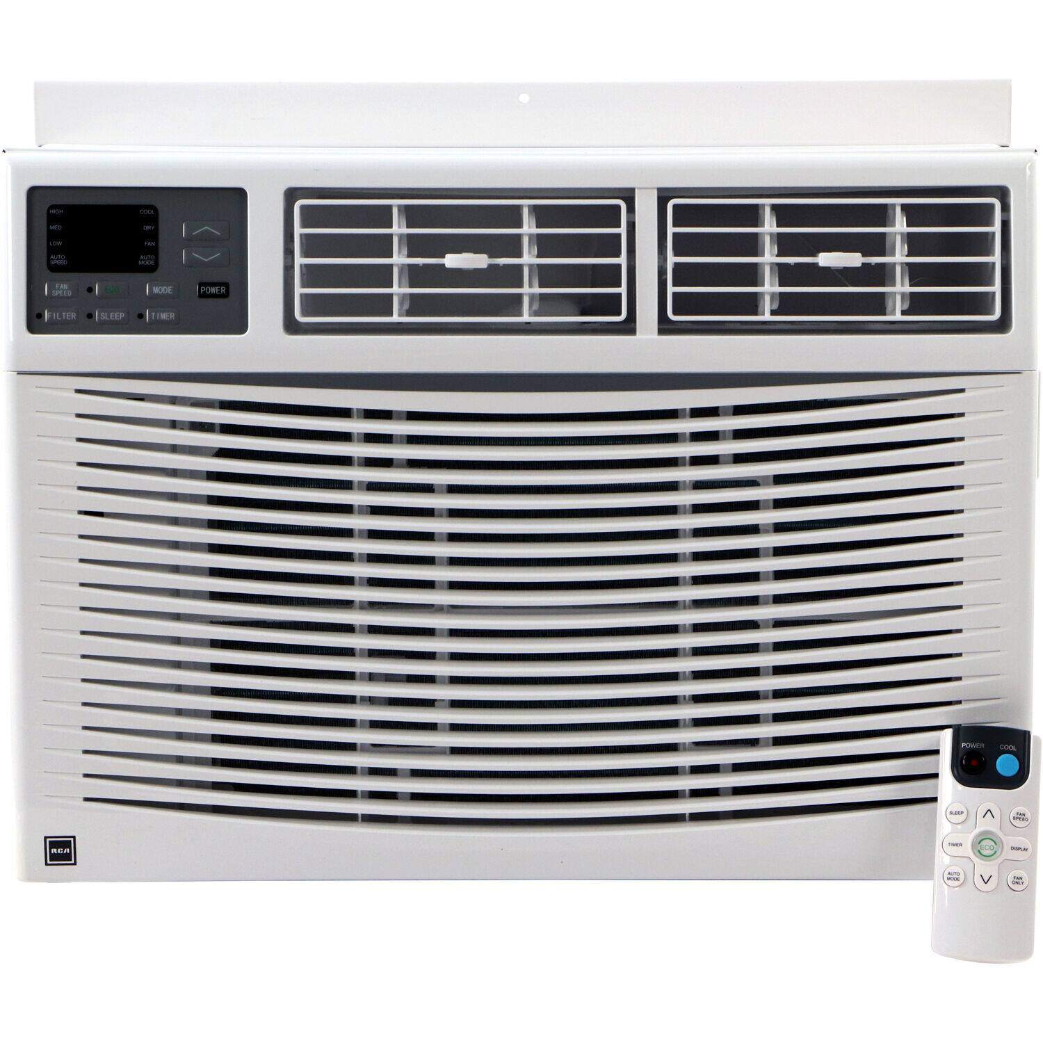 The RCA 10,000 BTU window air conditioner is ideal for cooling rooms up to 400 square feet, making it perfect for bedrooms, living rooms, studios, and apartments. This window-mounted unit features electronic controls for customizable comfort and an easy-install window mounting kit for quick setup. With three cooling speeds, three fan speeds, and a dehumidification mode, it ensures efficient and reliable performance. The 24-hour timer allows precise temperature settings, while adjustable air louvers direct cool air where needed. The easy-clean washable mesh air filter helps maintain air quality, and a clean filter alert ensures smooth operation. Covered by a 1-year limited warranty, this sleek, high-performance air conditioner is designed for convenience and functionality, keeping your space comfortably cool.