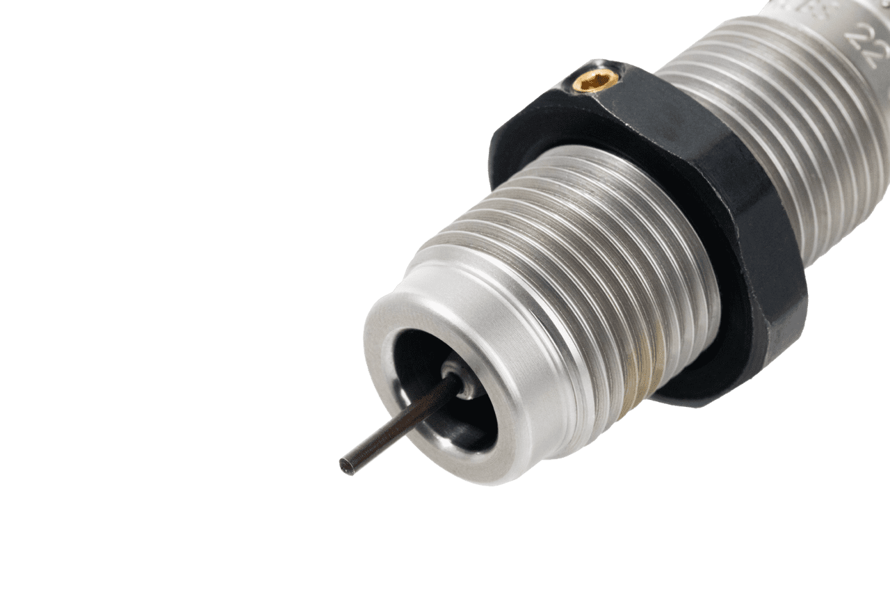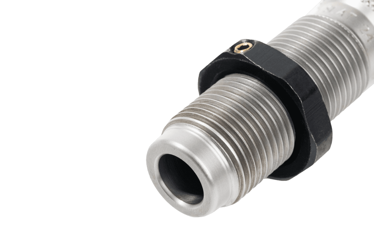 This two-die set is intended for reloading bottleneck cases, and consists of a Full-Length Sizer Die with an Expander-Decapping Unit, and a Seater Die with Bullet Seater Plug. The Full-Length Sizer Die brings the case to SAAMI minimum cartridge dimensions. It sizes the outside of the case, de-primes and expands the neck to accept the bullet. The die has vents to prevent case damage caused by trapped air and for excessive lubricant. Headspace is held to minimum tolerances to avoid changing the case body length during full length sizing. The included Seater Die has a built-in roll crimper to secure the bullet at the same time as it’s seated.