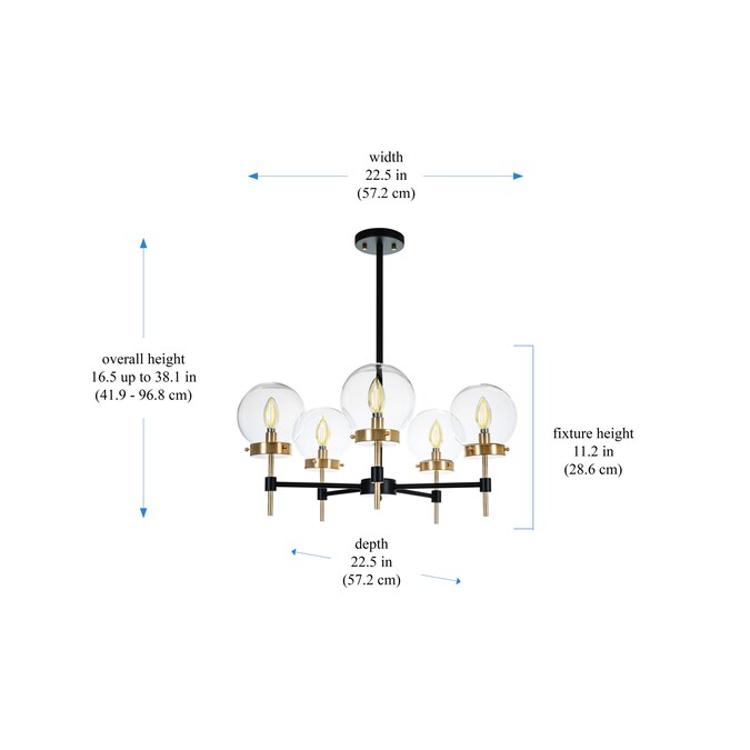 - Uses (5) 60W candelabra incandescent or LED bulbs