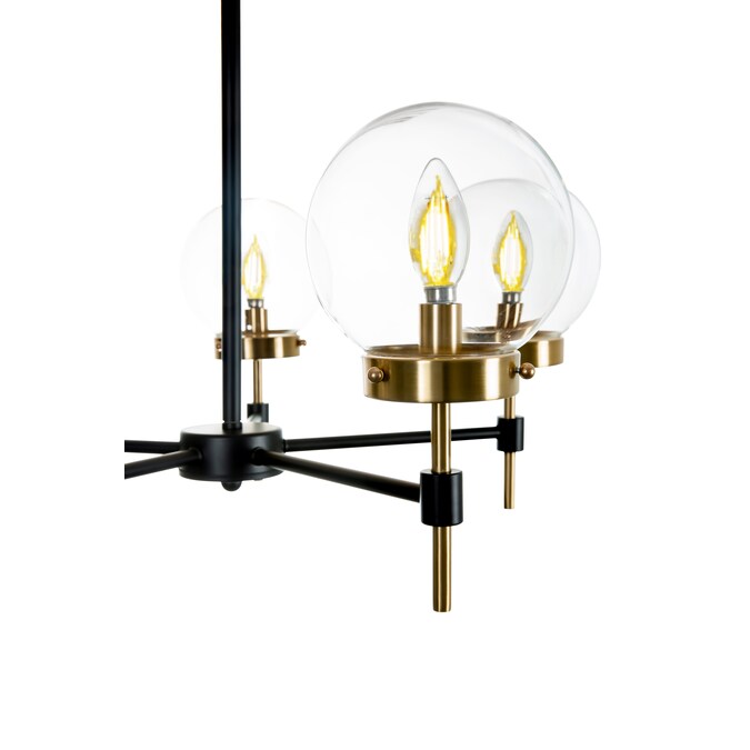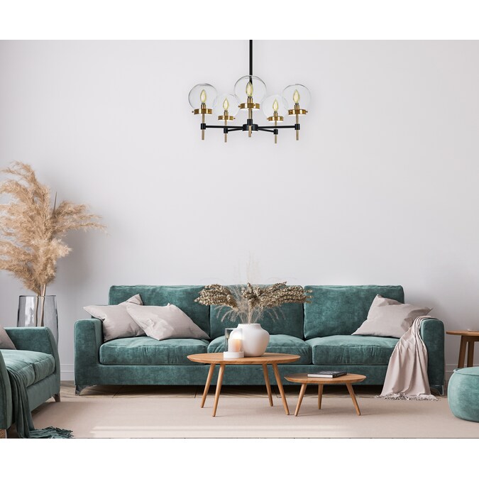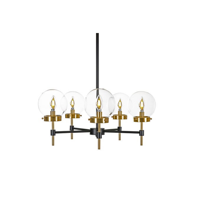 The Milan 5-light black and gold chandelier by RD Lighting features clean, simple styling with a beautiful display of glass orbs. Using inspiration from mid-century modern designs, this chandelier’s clean disposition and substantial presence will be the centerpiece of the entire home. Made from metal and glass, this chandelier is ideal for entryways, living rooms, dining rooms, and bedrooms.
