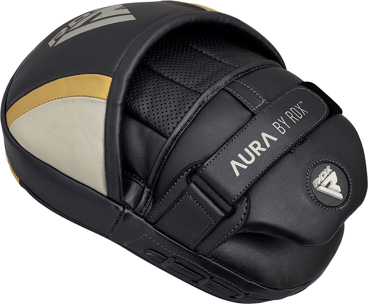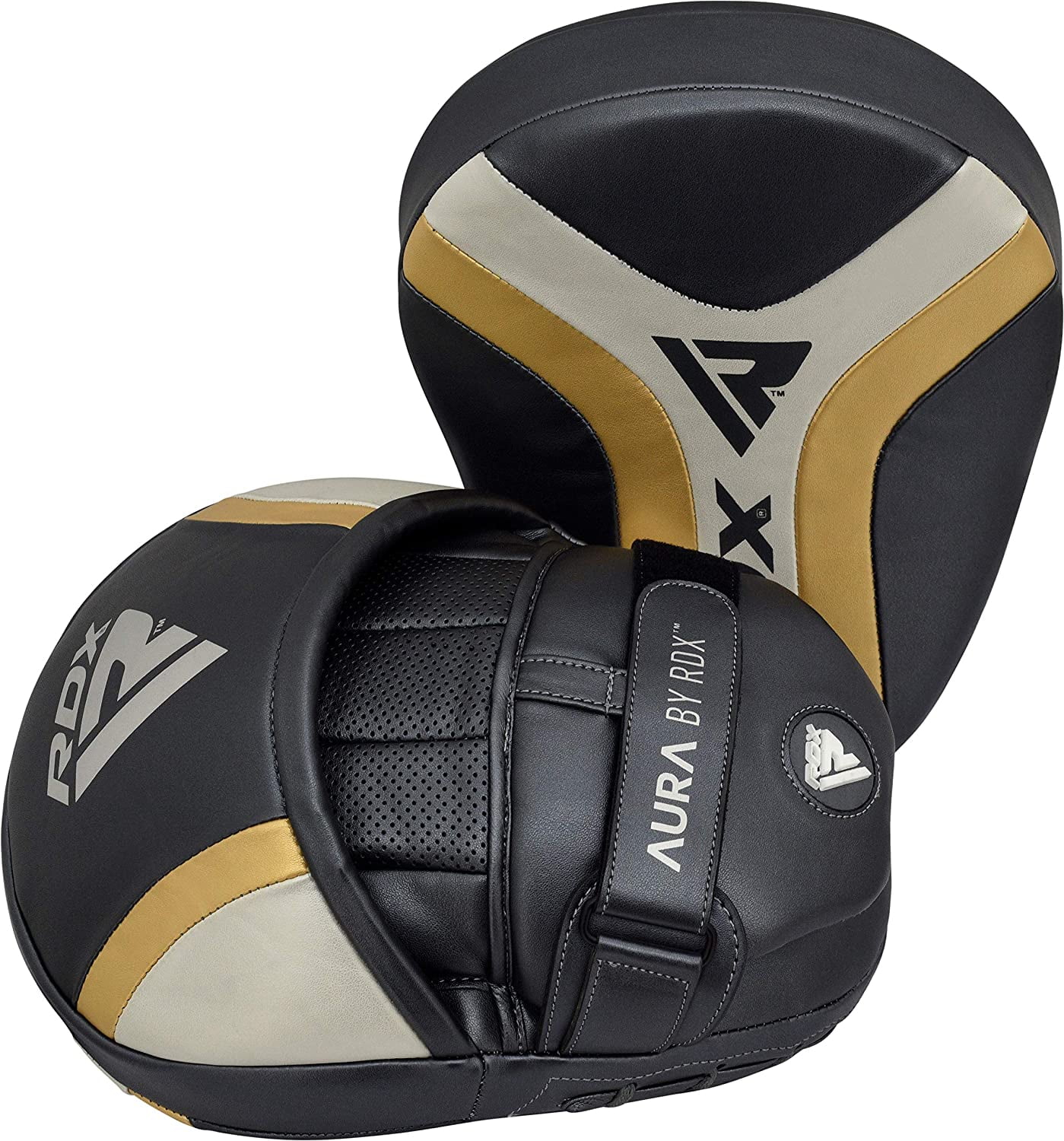 RDX Focus Boxing Punch Mitts, Punching target Leather Curved Hand Pad with Adjustable Strap, Hook and Jab Strike Shield for MMA, Golden