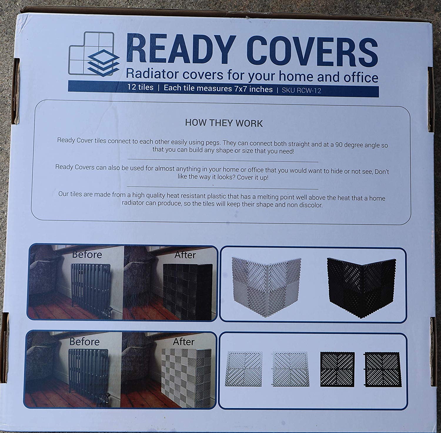 Ready Cover Tiles Connect To Each Other Using Pegs, They Can Connect Both Straight And At a Right Angle So That You Can Customize The Shape And Size That You Need! Ready Covers Steam Covers Are a Simple, Stylish, And Affordable Solution For Any Exposed Radiator. Keep your Home Safe For Children By Covering Your Hot Radiator. In Addition Ready Cover Tiles Can Be Used to Cover Just About Anything, Don’t Like The Way It Looks? Cover It Up! Easy And Quick To Build – No Tools Required. Heating Cabinet, Heater Cover, Steam Cover, Radiator Cover, Radiator Heater Cover, Cover for Radiator, Steam Heat Cover, Build A Radiator Cover, Home Improvement, Home Decor, Child Safety, Baby Proof, encasement, hot box, child proof, shield, surround, and conceal radiator, cover something, cover for radiator heater, fits all sizes, cover up, vented tiles