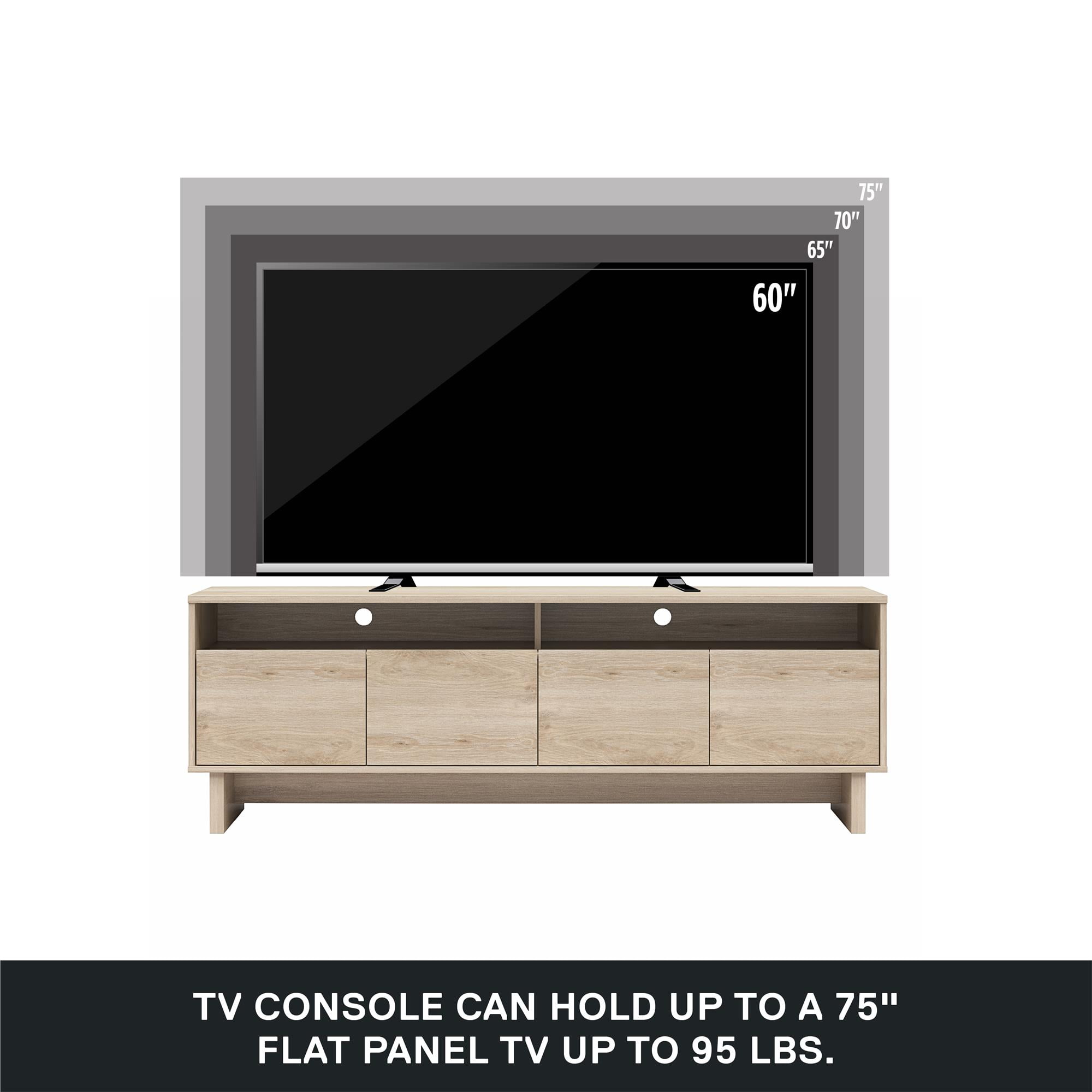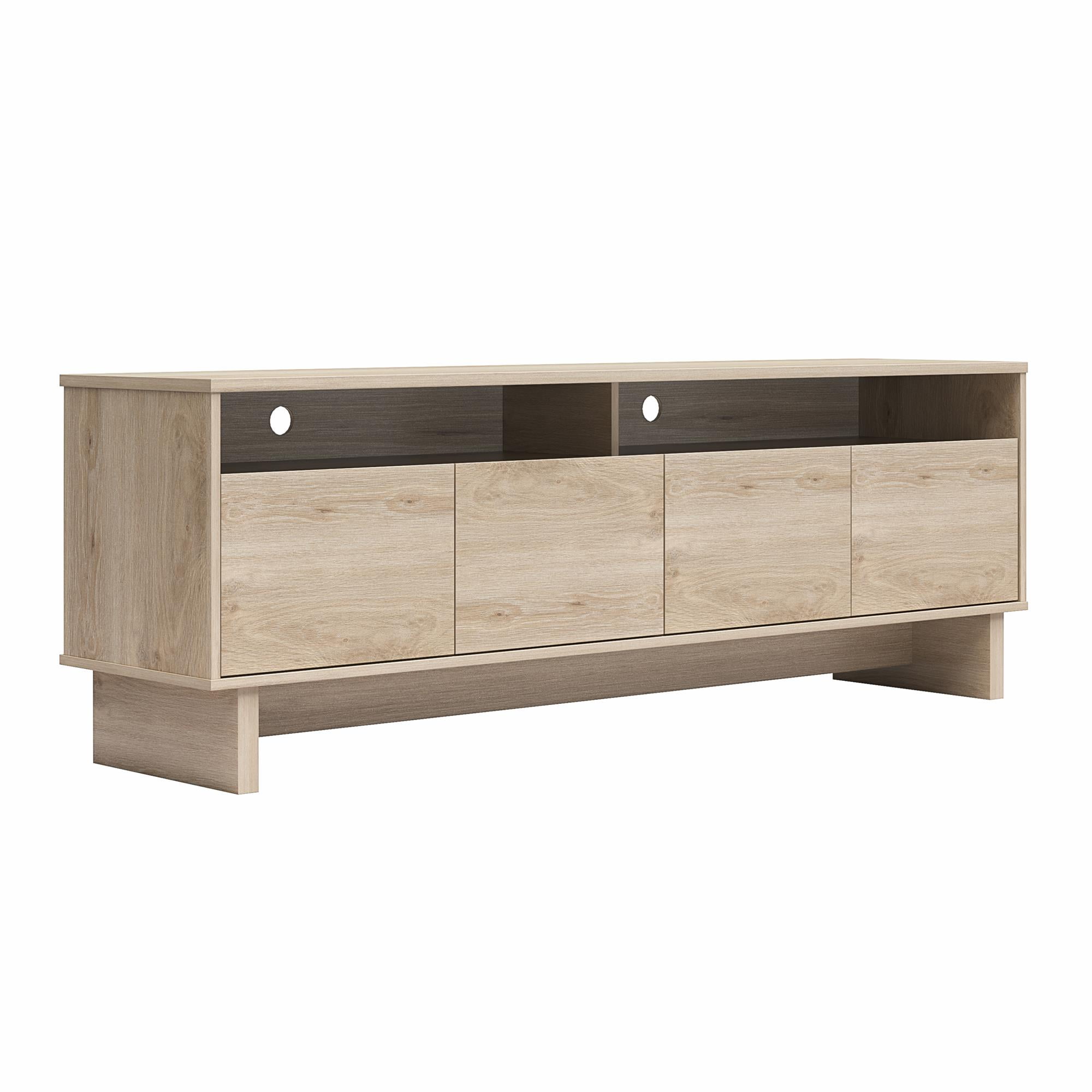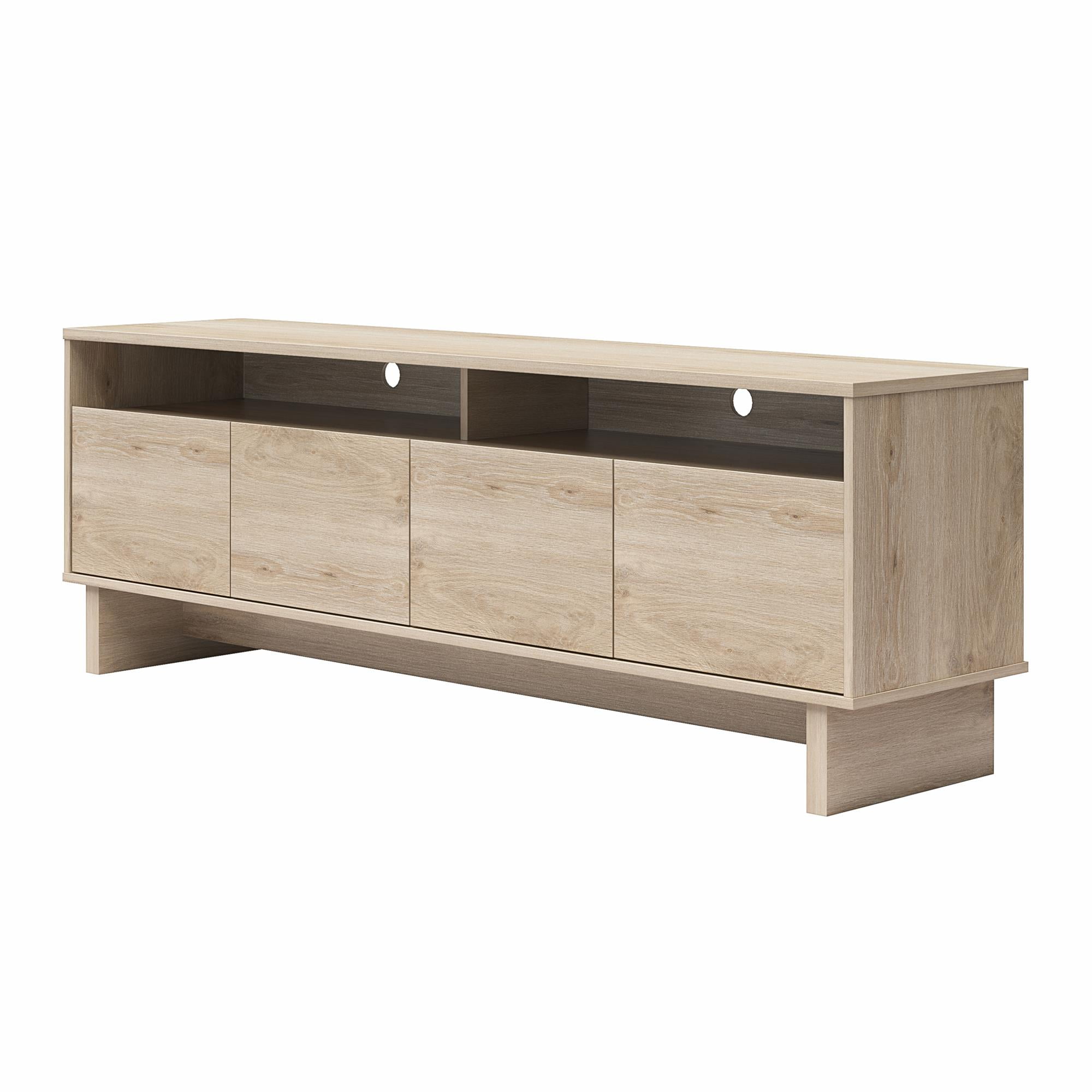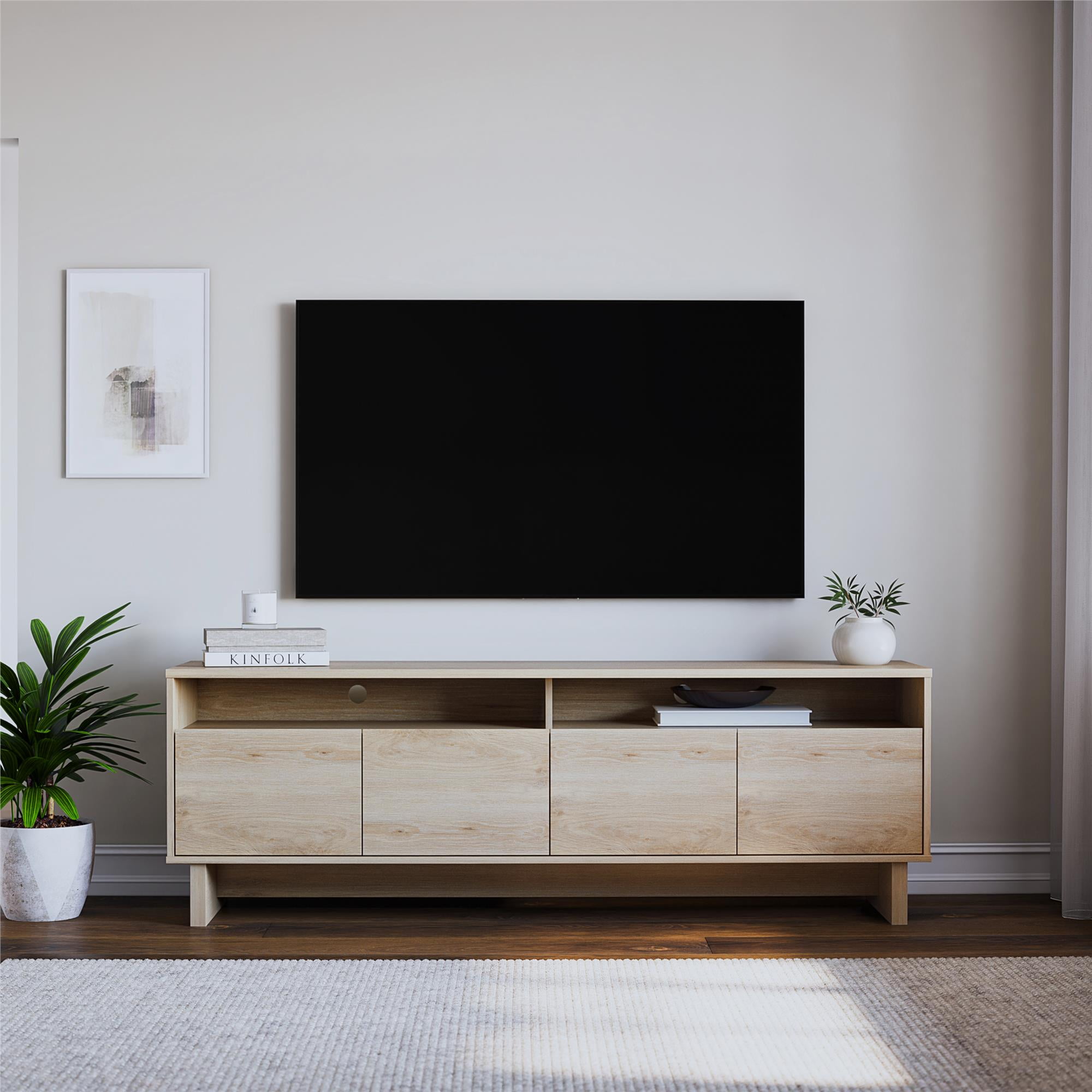 RealRooms Nivelle 4-Door TV Stand Console for TVs up to 75″, Blonde Oak