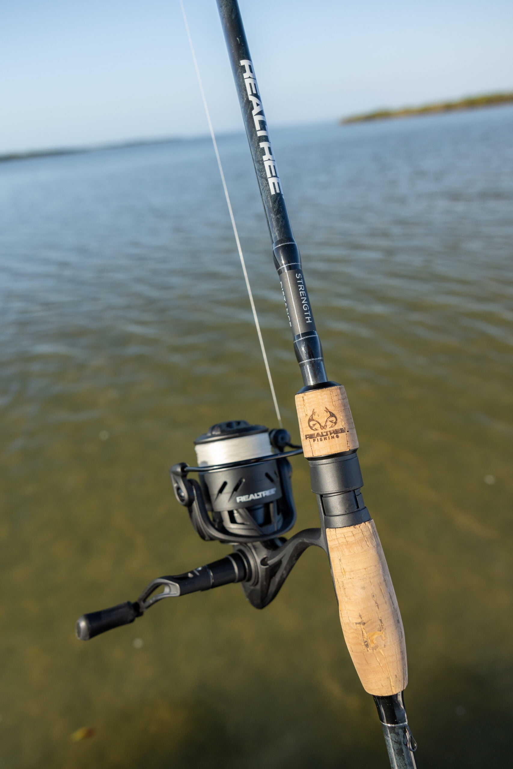Realtree 6ft 6in Medium Spinning Fishing Pole & Reel Combo 6’6″ Medium IM7 Graphite Spinning Pole Stainless Steel Guide Frames w/ Aluminum Oxide Inserts Cork Handle and Foregrip 2000 Size Spinning Reel 6.2:1 Gear Ratio 10+1 Bearings Braid Ready Spool Great for Youth and Adults Designed for Freshwater The Realtree 6ft 6in Medium Spinning Fishing Pole & Reel Combo is equipped for Moderate Fishing Rod Action and Medium Fishing Rod Power.