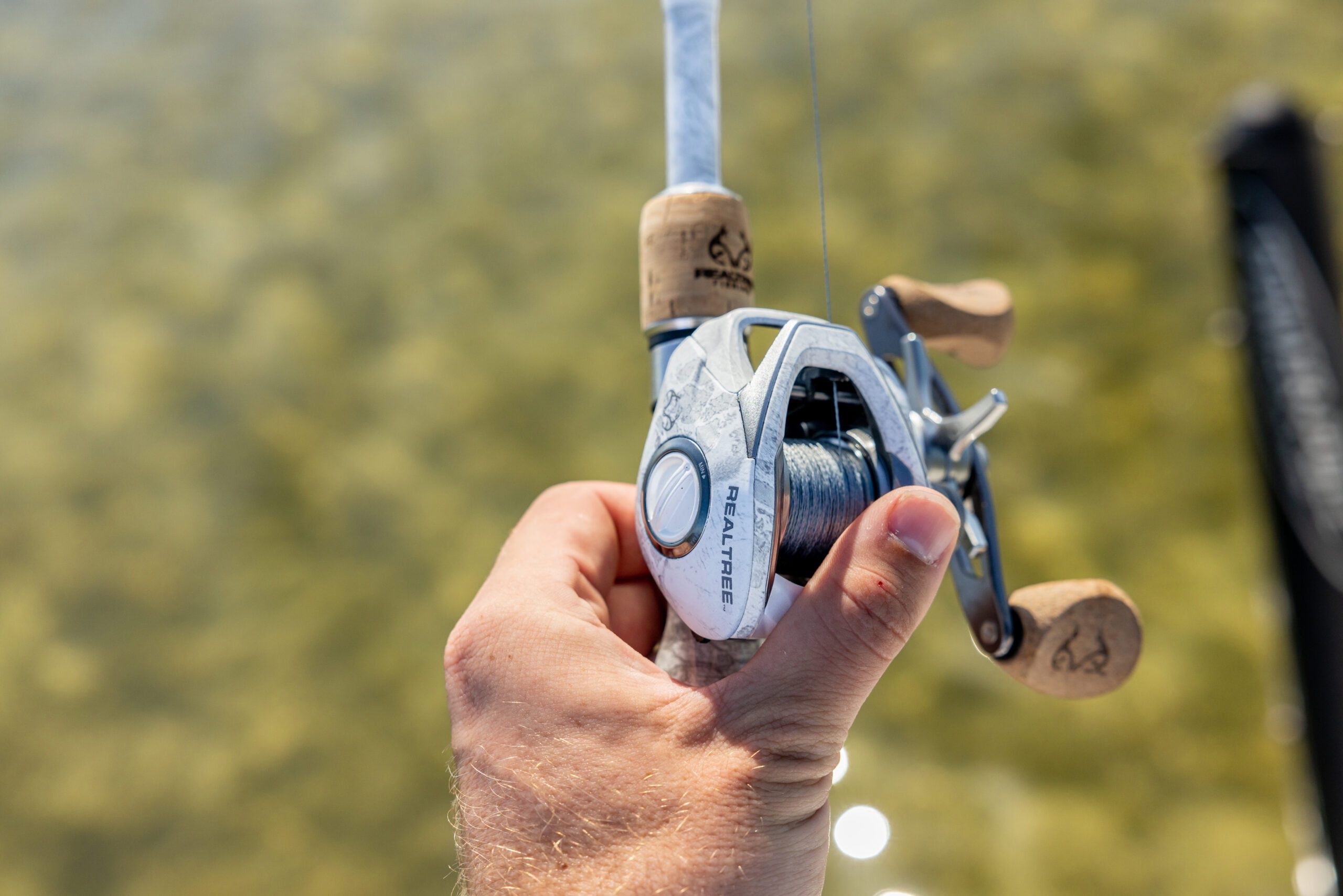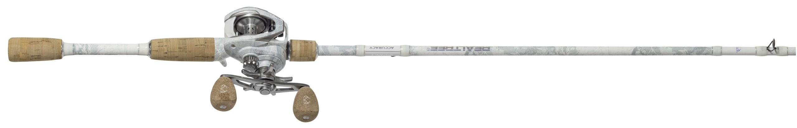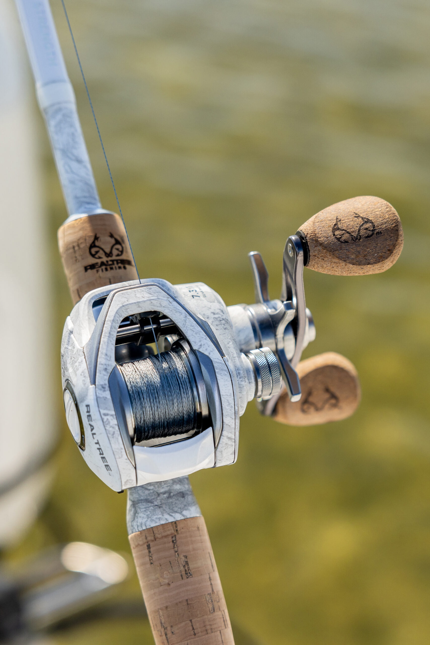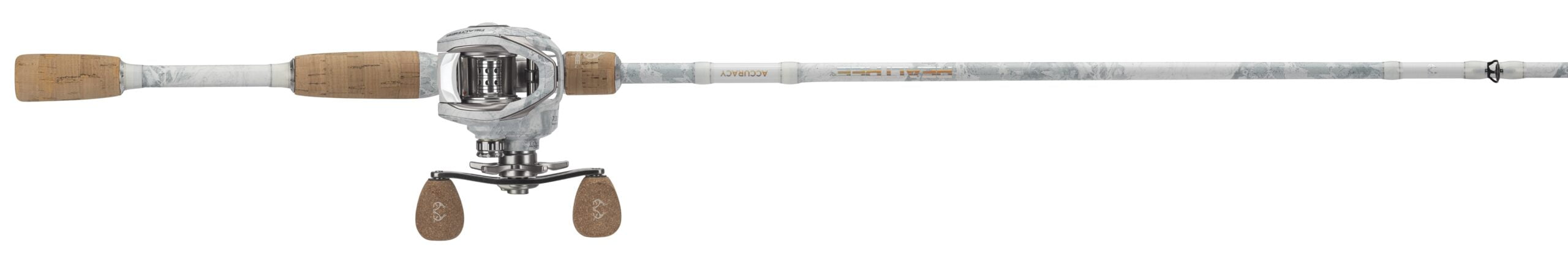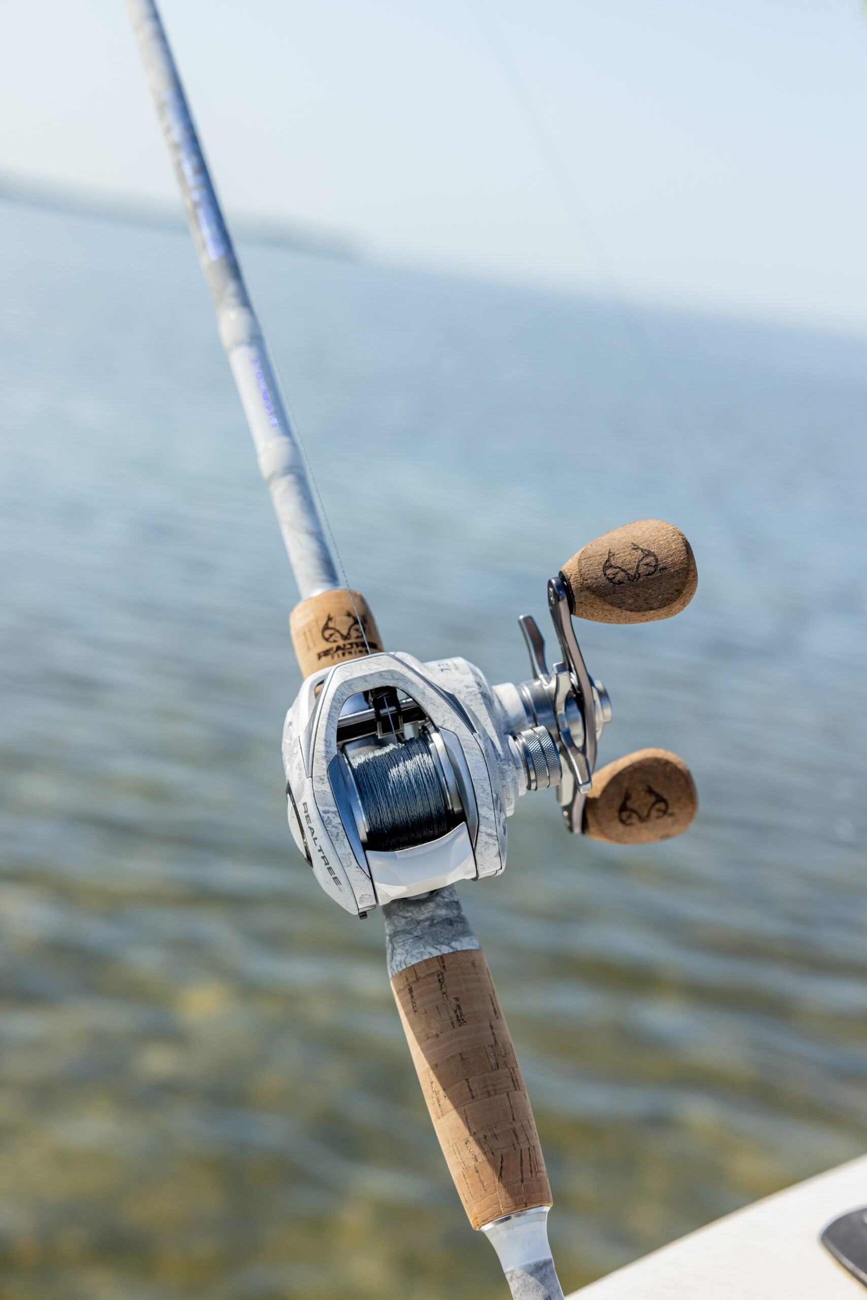 Introducing the Realtree Baitcast Pro IM7 Graphite 7ft Medium Heavy, Baitcasting Fishing Pole & Reel Combo 7′ Medium Heavy IM7 Graphite Fishing Pole Aluminum Handle w/ Cork Knobs Carbon Fiber Drag System 7.3:1 Gear Ratio 7+1 Bearings Line Capacity: MONO 12lb/120yds -BRAID 30lb/140yds Cork Handle and Foregrip Great for Adults Graphite Frame and Sideplates Designed for Freshwater External Adjustable Magnetic Brakes Stainless Steel Guide Frames w/ Aluminum Oxide Inserts Double Anodized Aluminum Spool Classic RealTree Camo design! Equipped for Moderate Fishing Rod Action and Medium Fishing Rod Power Baitcasting Fishing Pole and Reel Combo