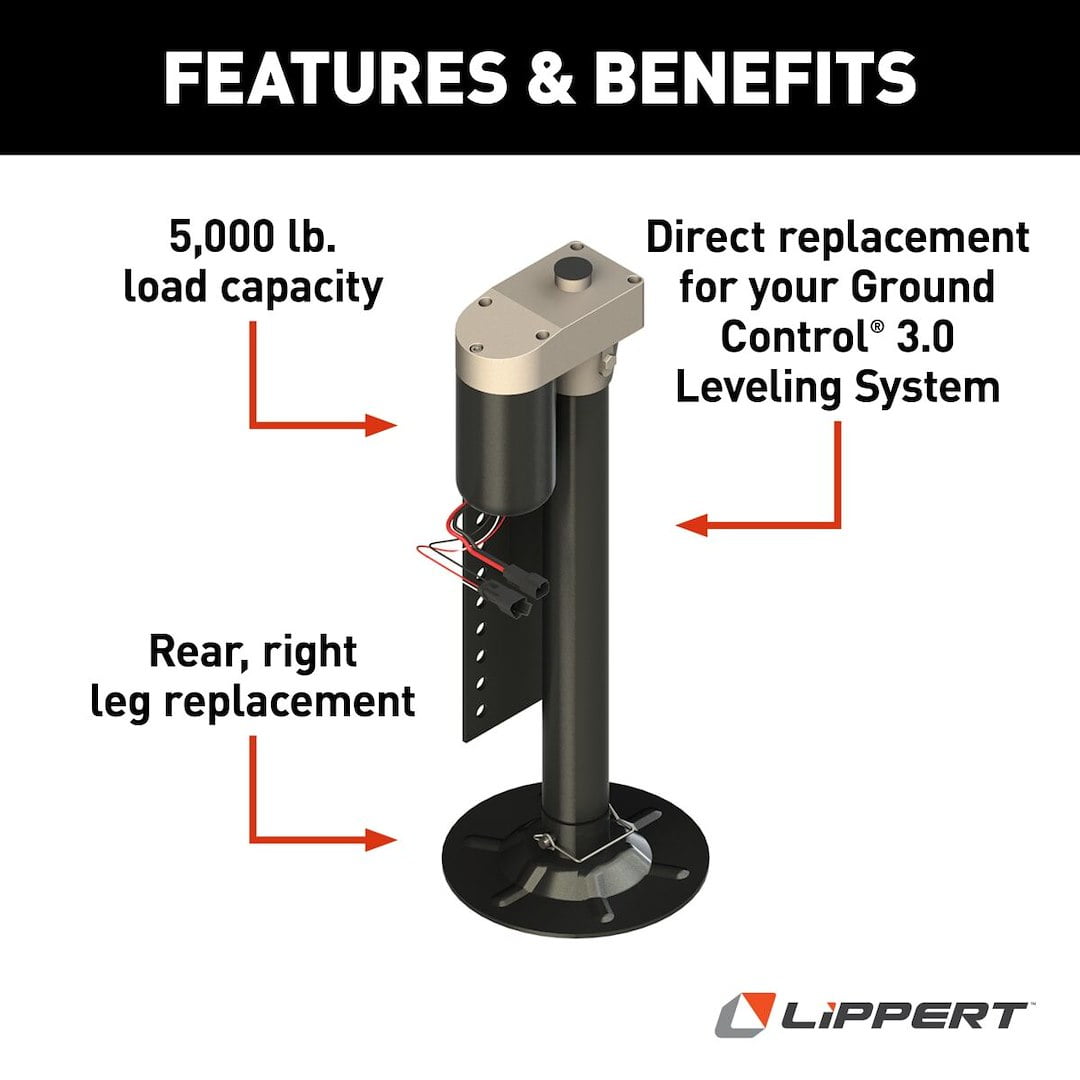 Lippert Ground Control® Automatic 5th Wheel RV Leveling System Rear Hall Effect Jack – Right Leg #344792