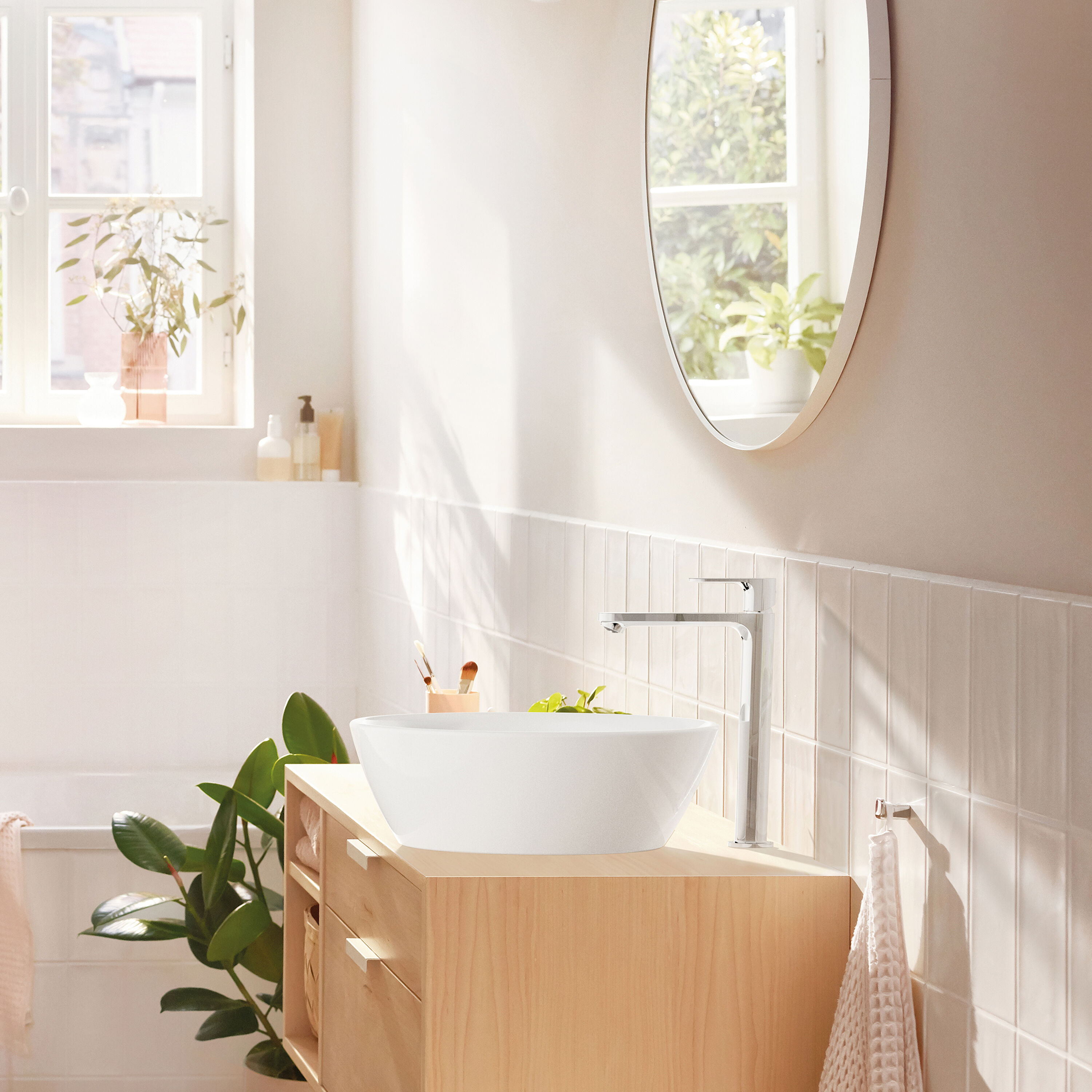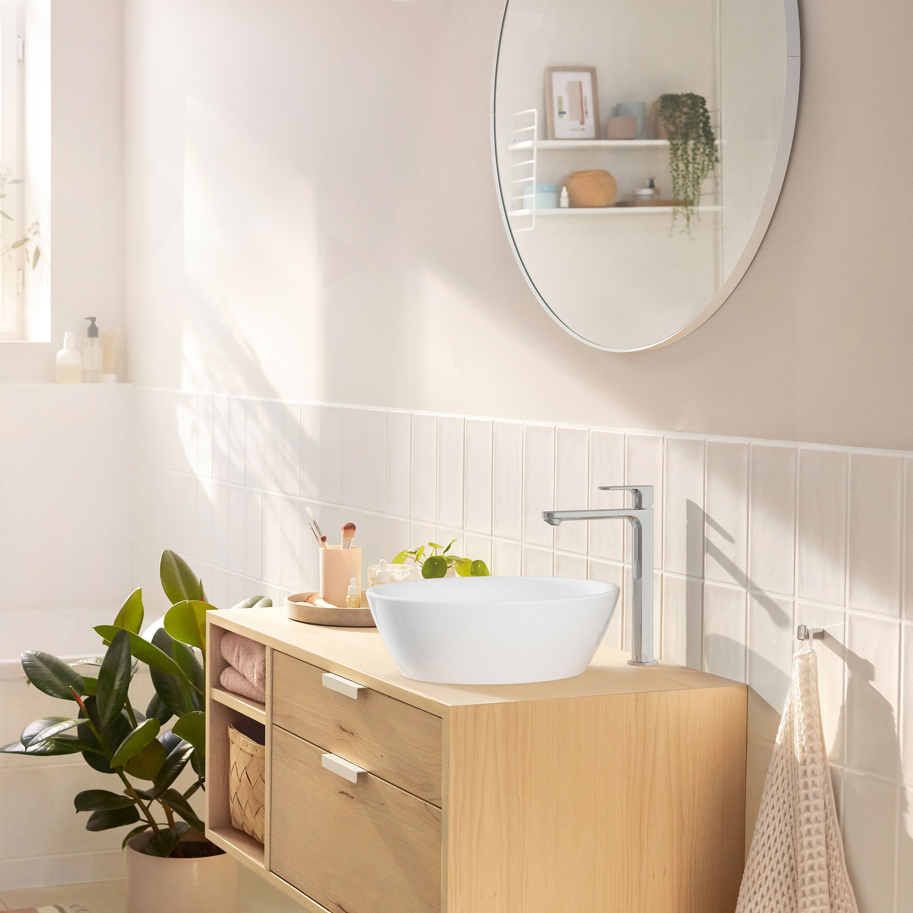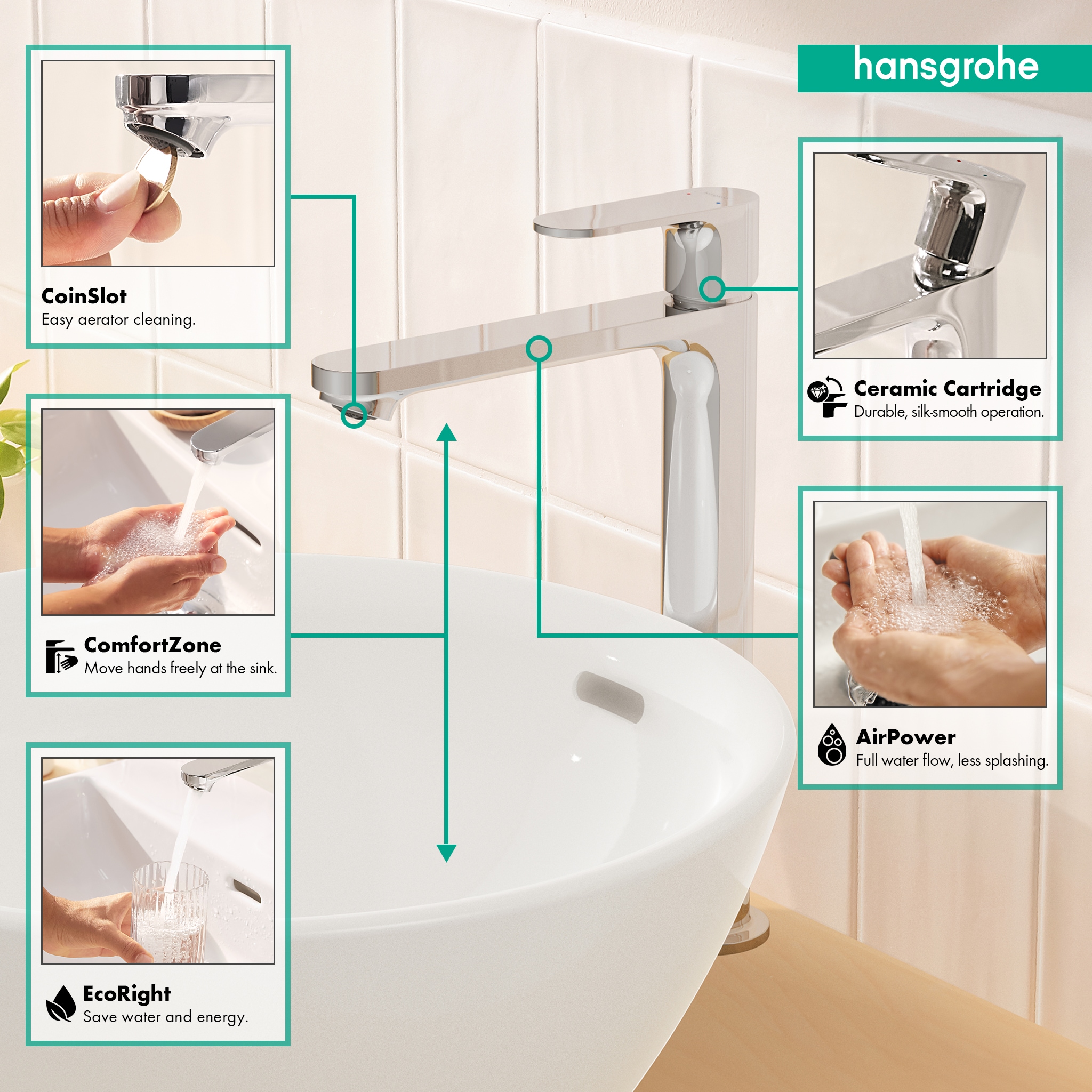 Quality that suits your style: Rebris S bathroom faucet. With its timeless, sleek design, the Rebris S 240 bathroom faucet with pop-up drain will visibly enhance your bathroom. The sleek, rounded shapes and precision surfaces create an atmosphere of well-being. Rebris S includes modern designer faucets at a fair price. Make your own dream bathroom a reality. The renowned hansgrohe quality brings the promises of a winning design to life: A high-quality ceramic valve system controls the water volume and temperature. This keeps working smoothly and reliably even after frequent use. Thanks to innovative hansgrohe technology, the faucet helps to save water also: even at high water pressure, there is a max. flow of 1.2 GPM. For a full water jet, the single lever faucet enriches the water with air (AirPower). This creates a soft jet that splashes less – meet the beauty of water. The included pop-up drain can be easily opened and closed using one hand. This makes it Easy to operate the waste plug without having to reach into the water. The faucet is even suitable for hard water. The aerator can be removed for cleaning and descaled using a coin. No tools needed. This keeps the faucet looking like new.