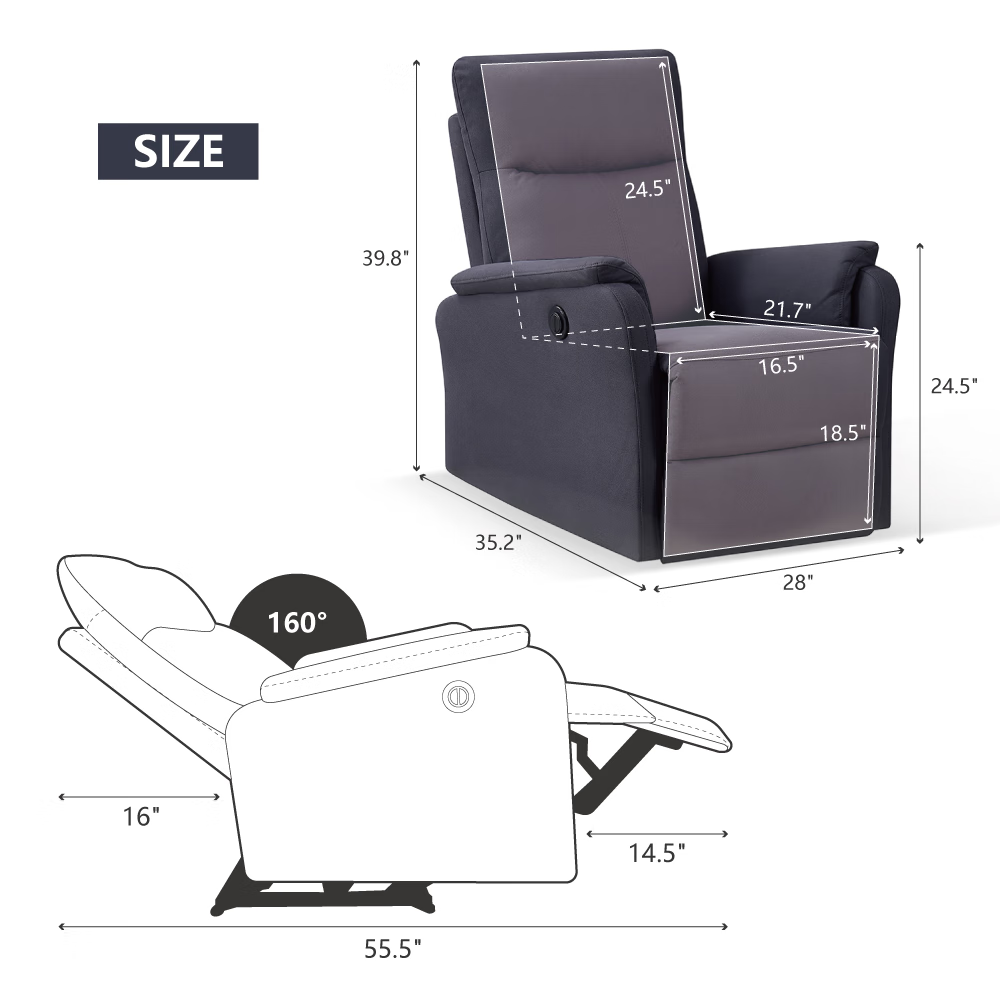 The lift chair recliner is filled with high-density thick foam, thick seat and headrest and backrest with appropriate height Power recliner easy to control for all age groups,just press the button to achieve lift or recline between 90-160 degrees for watching TV, reading a book or taking a break,ideal for adults, elderly,disabled,pregnant women. Designed with a proper width,this electric recliner chair does not need too much room, Small CBM suitable for any space of home, Living room,Bed room,lounge,Reading room and so on. Soft and comfortable-breathable fabric material, comfortable sitting,durable and easy to clean.