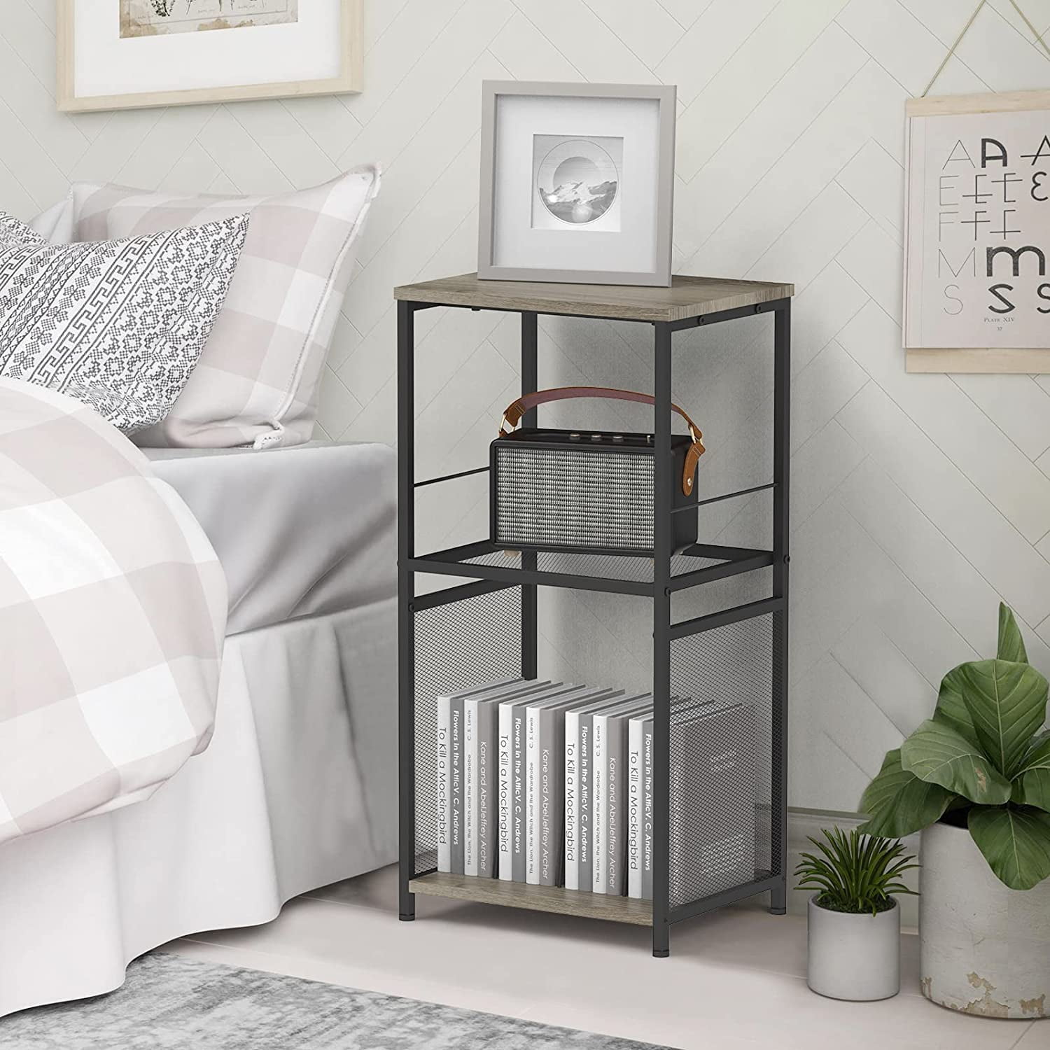 [Durable & Stable] This record player table gives your living room or entertainment space a modern look. The trendy laminated particleboard and MDF give the stand a sturdy build that will last for years and pair with the metal legs for a contemporary feel. [Versatile Use] modern simple and generous-style record player stand, suitable for various occasions, including living room, study, bedroom, office, farmhouse, etc., Also can serve as a nightstand, vinyl record storage cabinet, bedside table, album or books storage table, etc. [Space Saving] Two open shelves offer ample space to store the DVD player, cable box, and your preferred video gaming console, while the wood shelf with removable metal wire dividers offers a perfect platform for up to 80 albums. [Perfect Size] This vinyl record storage stand is the perfect size for a small space. A smart solution to store all the precious records you collected, and the record player, speakers, and stereo. The dimension is 15.8″ L x 11.8″ W x 31.7″ H. [Easy Assembly] This nightstand bedside table can be quickly assembled. Hardware bag included, every single piece has its label, easy to assemble in 15 mins.
