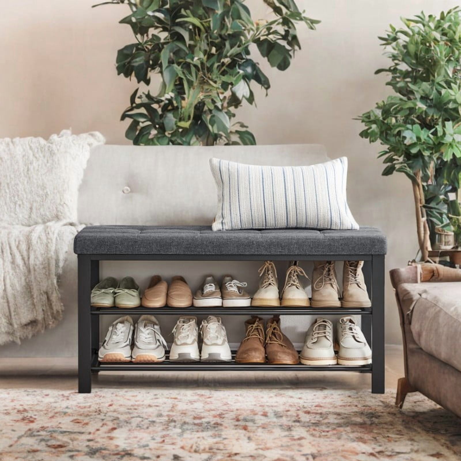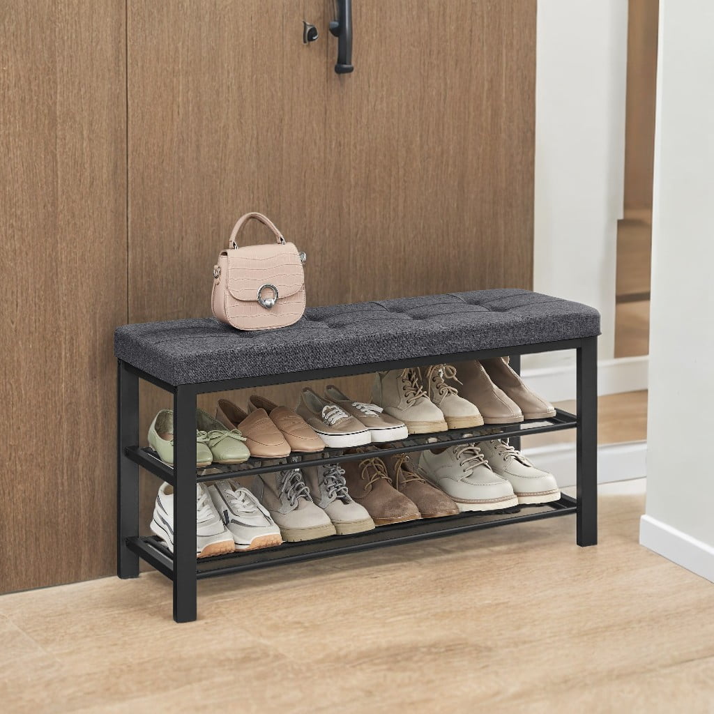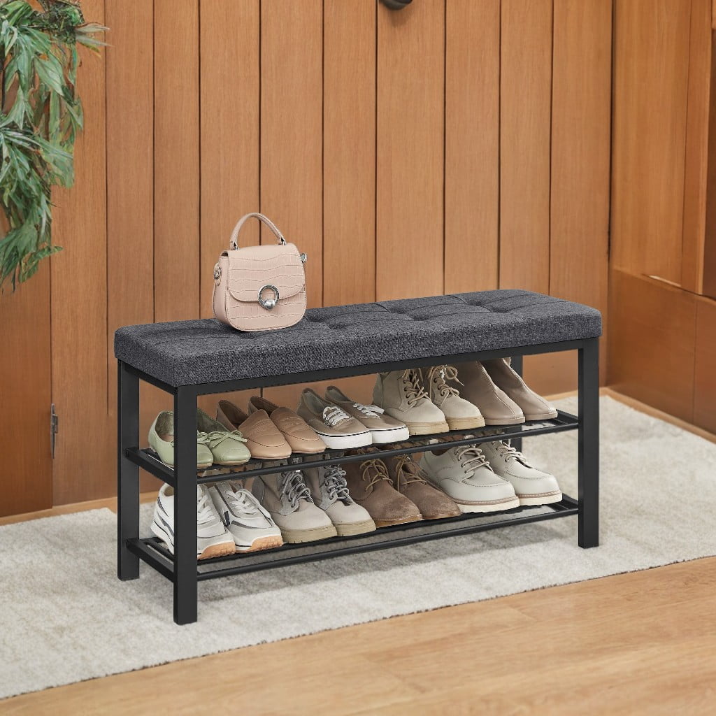 Rectangular Steel Indoor Shoe Bench with 2 Shelves, Storage & Seat,Dark Gray and Black