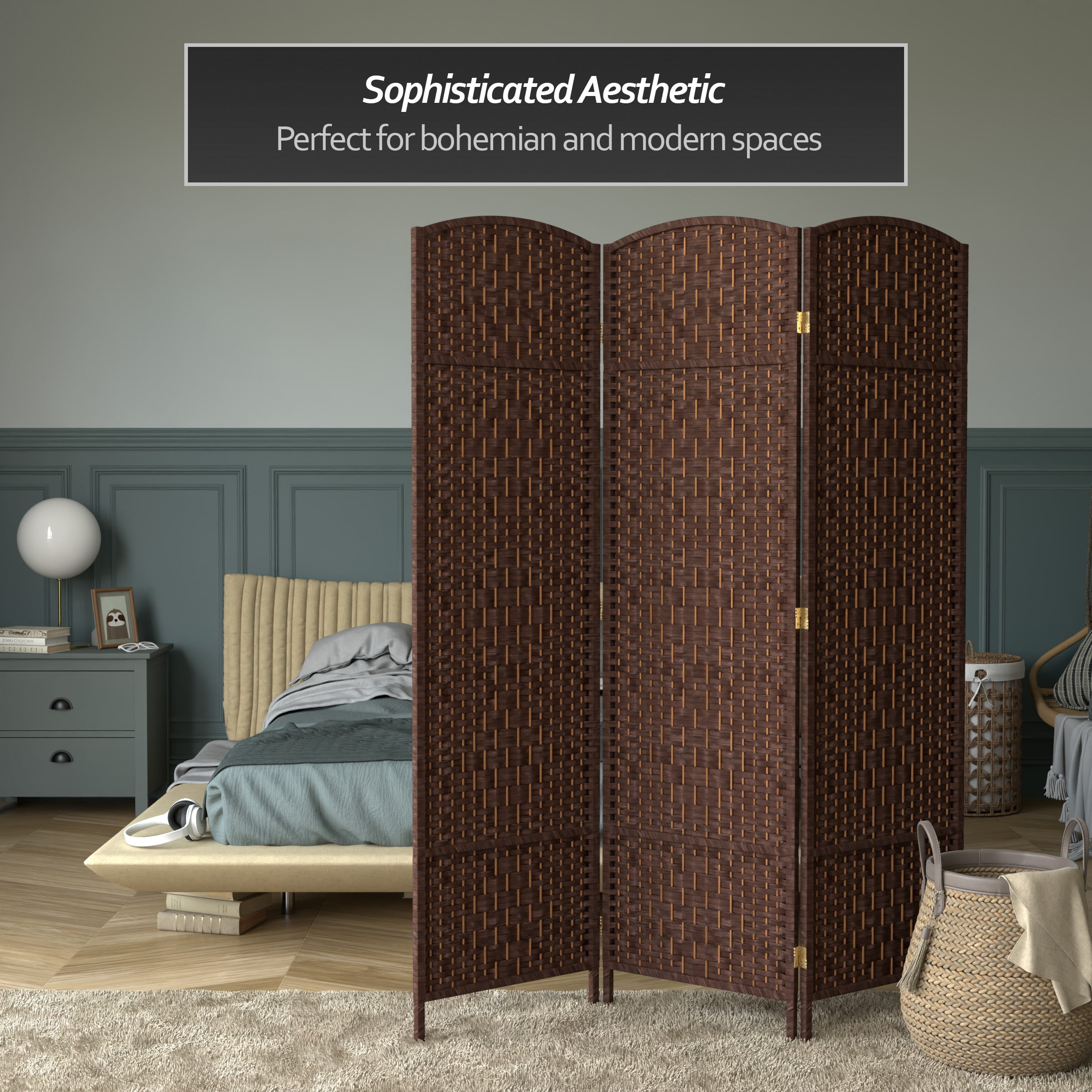 Red Lantern 6 ft. Tall Diamond Weave Fiber Room Divider – Dark Mocha – 3 Panel