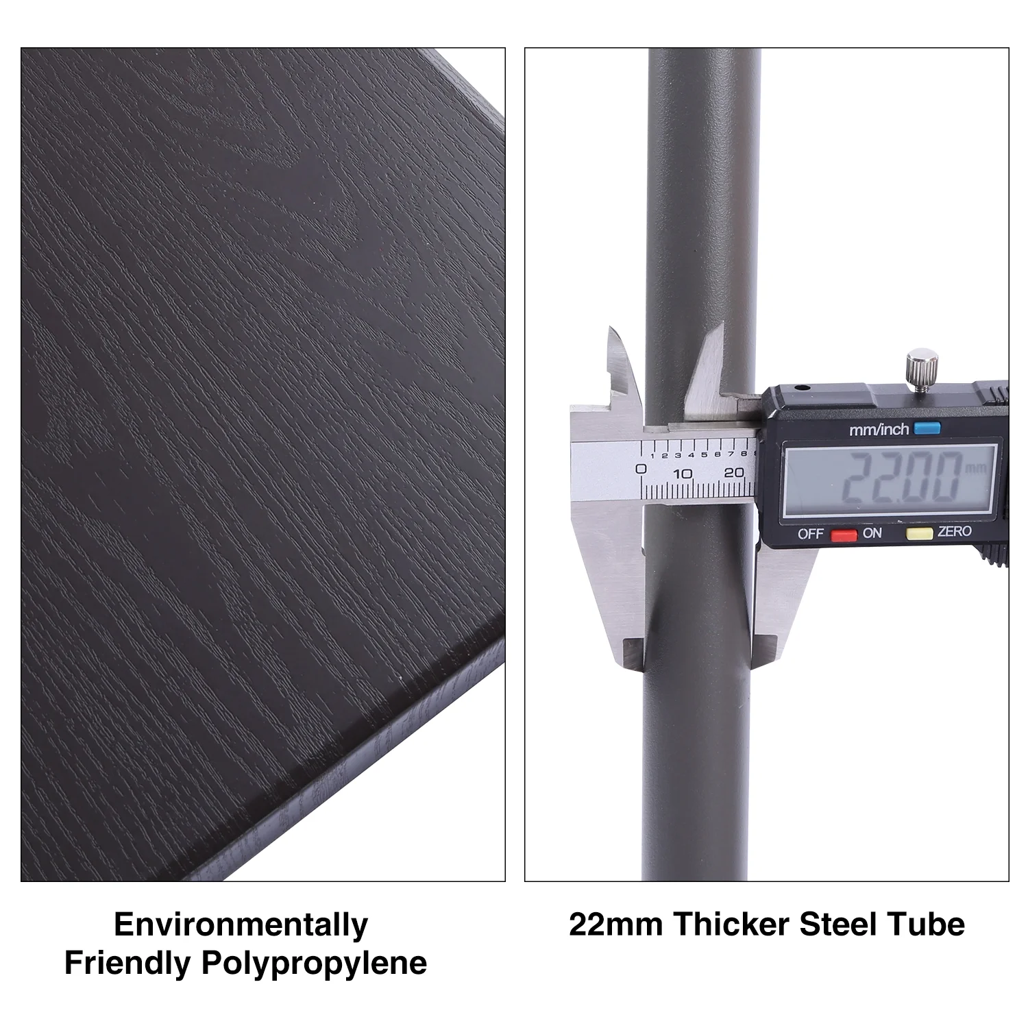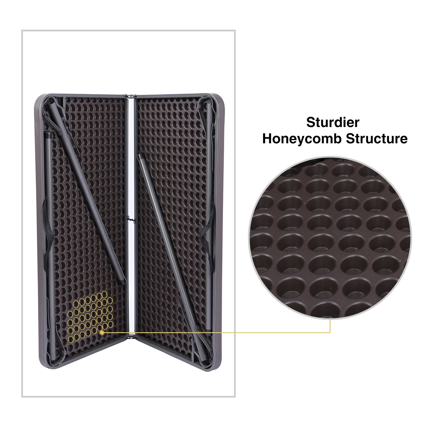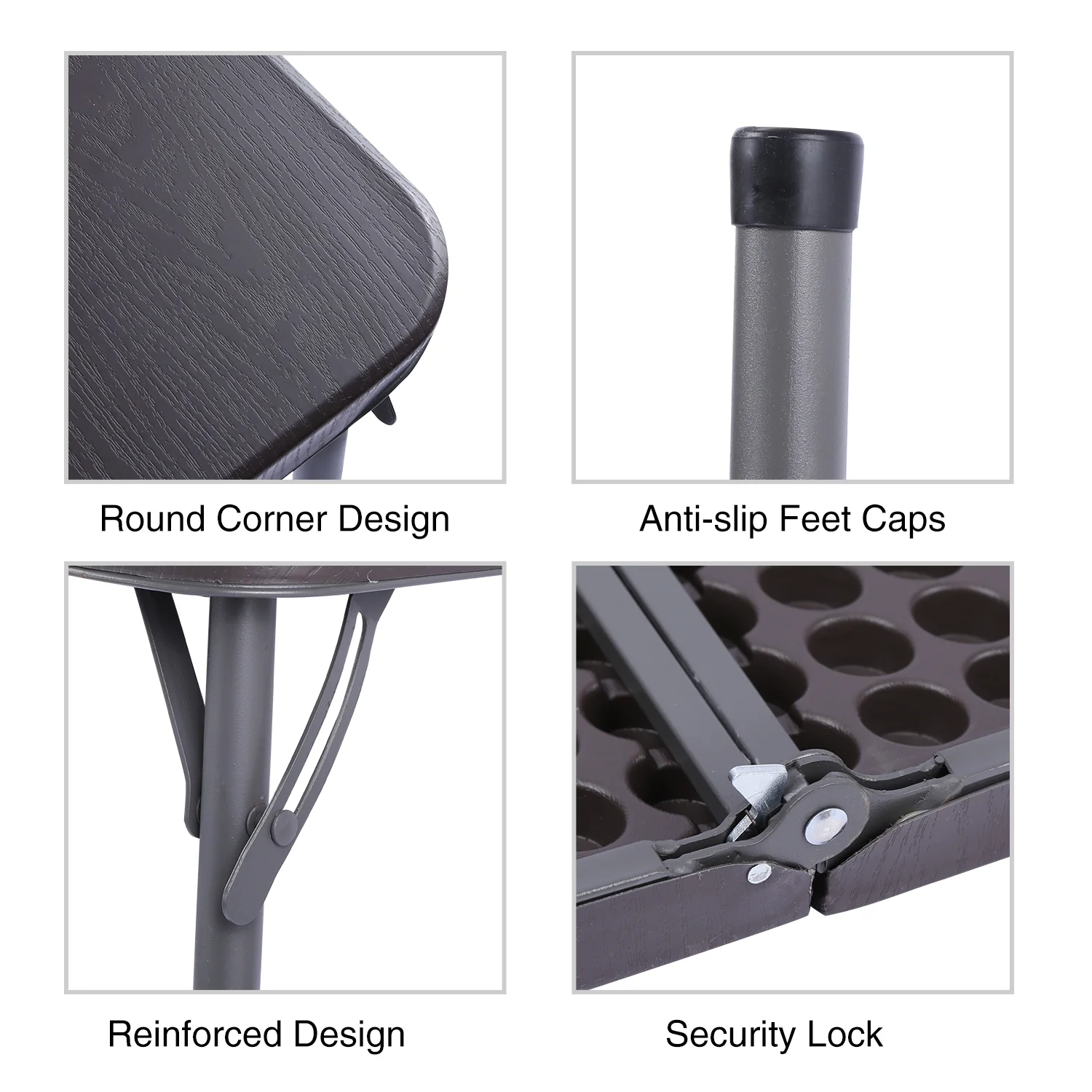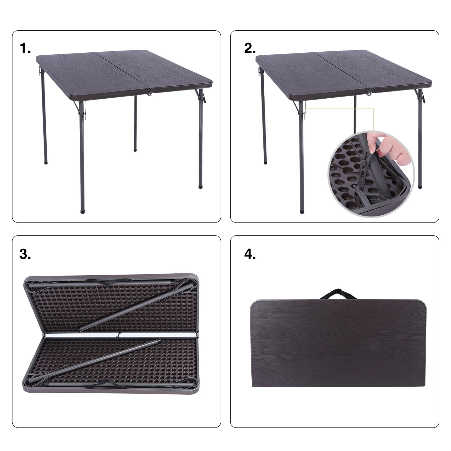 Redcamp card table is made of environmentally friendly PP tabletop and 22 mm thicker steel tubes which are very durable that can last for a long time. It can hold up to 165 lbs. The table is big enough for 4 people to use. With its compact folded size, the table can be stored in a limited space.