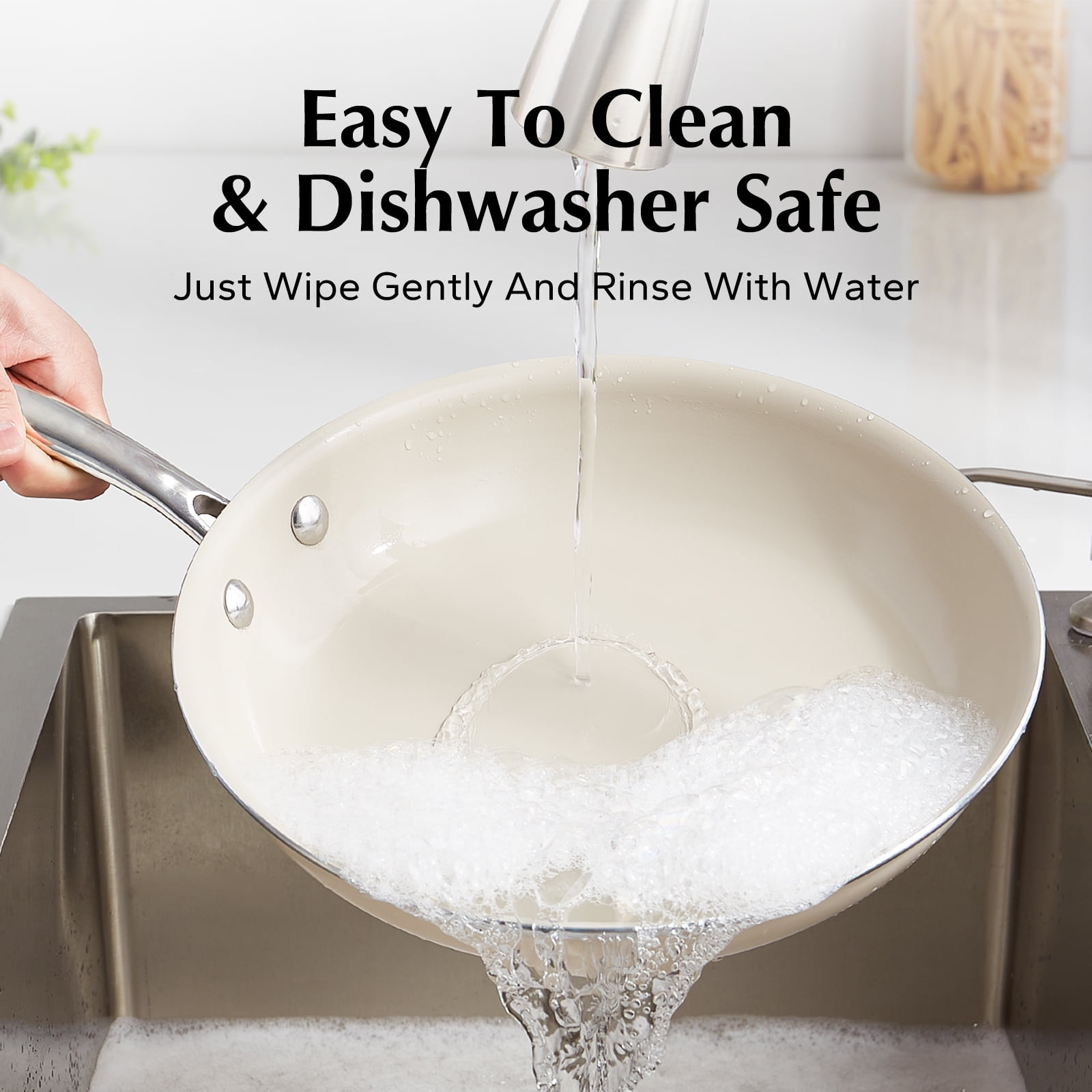 Non-Toxic Coating: 3-layer nonstick coating make a healthy cooking experience and lifestyle. Ergonomic Handle: Ergonomic bakelite handle remains cool and is securely attached with double rivets for stability and ease of use. Fast Heating: High magnetic conductive base made of three-layer aluminum heats quickly and evenly, suitable for various stoves. Easy Cleaning: Non-stick design allows for simple cleaning with a paper towel or water, and is dishwasher safe. Multi-Functional: Suitable for frying fish, beef, chicken, bread, and more, meeting all daily cooking needs.