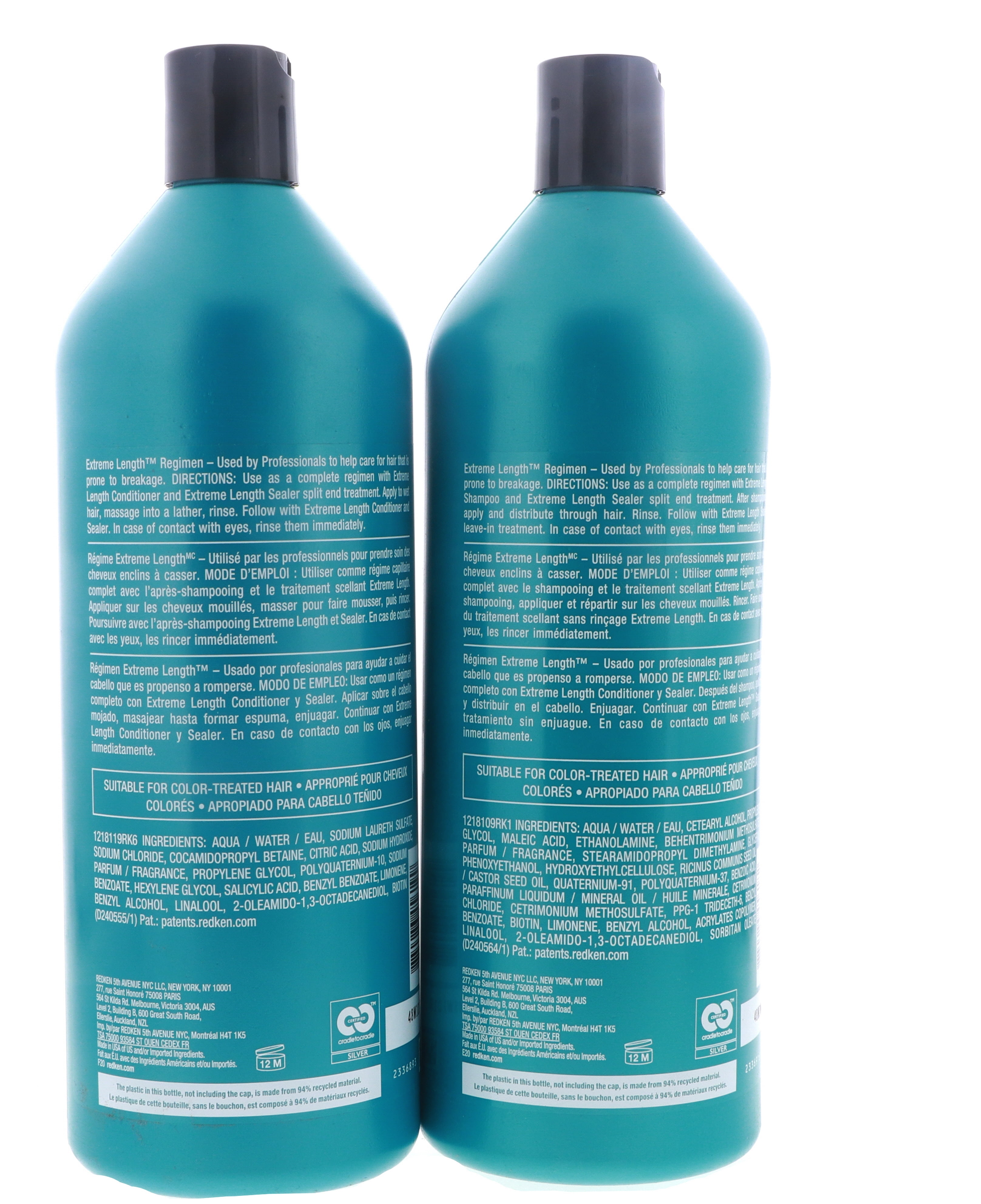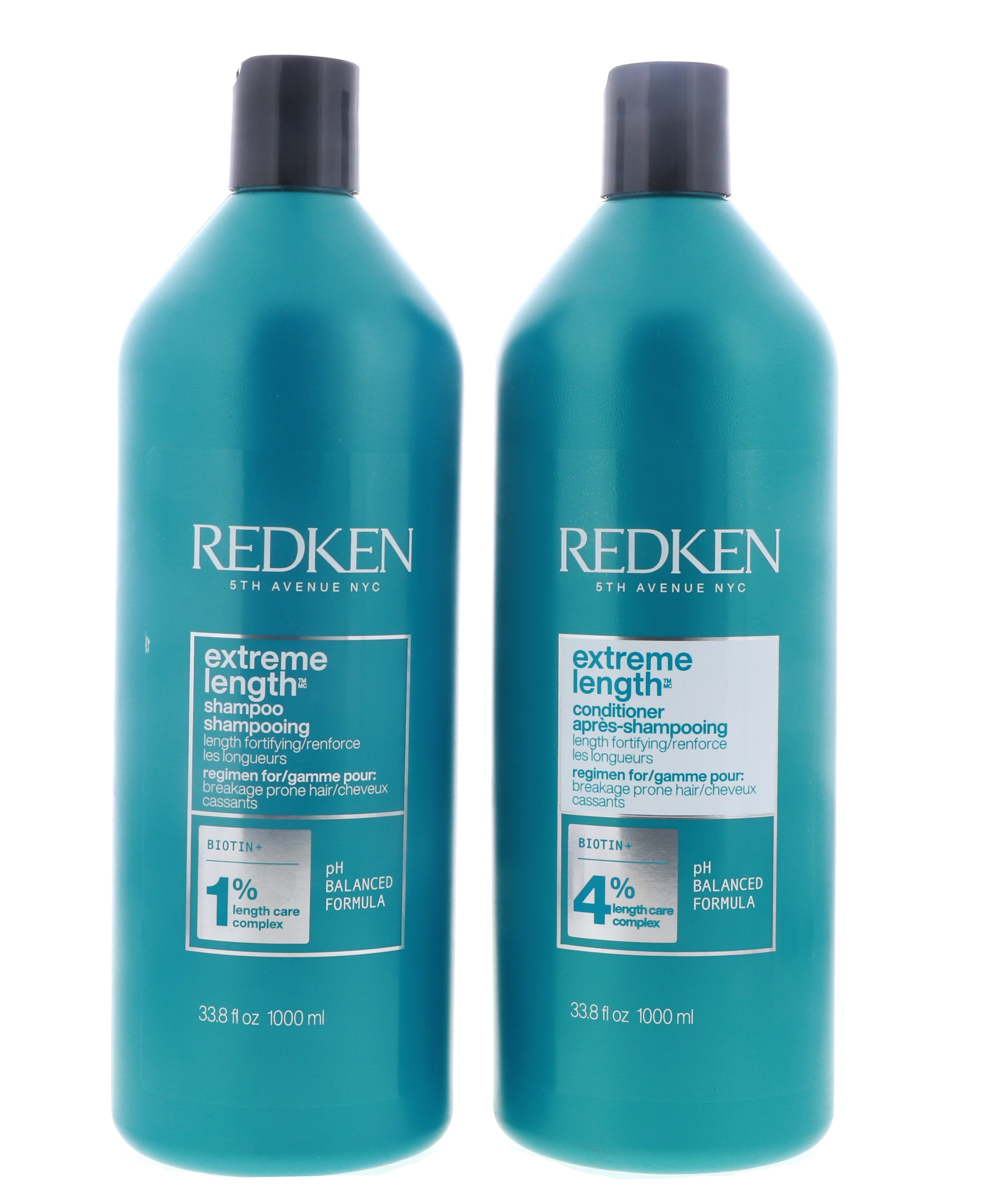 The Redken Extreme Length Conditioner and Shampoo are hair care products designed to strengthen and promote healthy hair growth. Both products come in a 33.8 oz bottle and can be used together for best results. The Extreme Length Shampoo features a sulfate-free formula that gently cleanses the scalp and hair, removing dirt, oil, and product buildup. It also contains biotin and castor oil to promote healthy hair growth and prevent breakage. To use, apply to wet hair, massage into a lather, and rinse thoroughly.