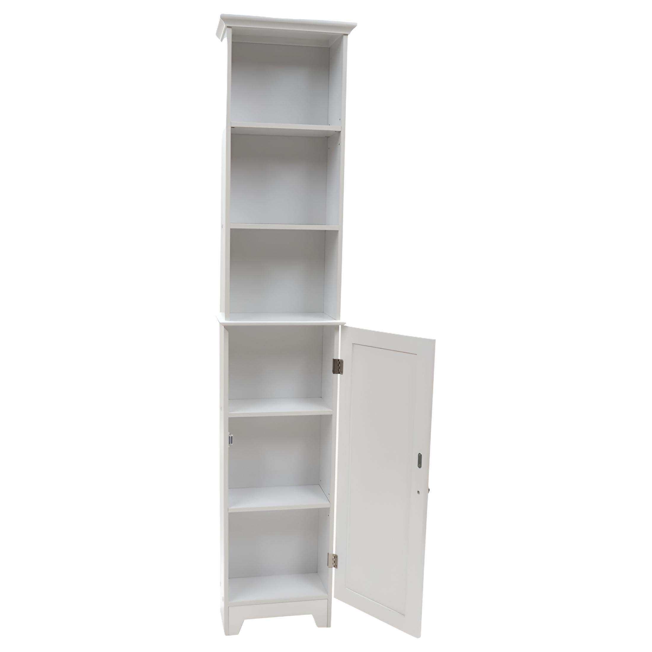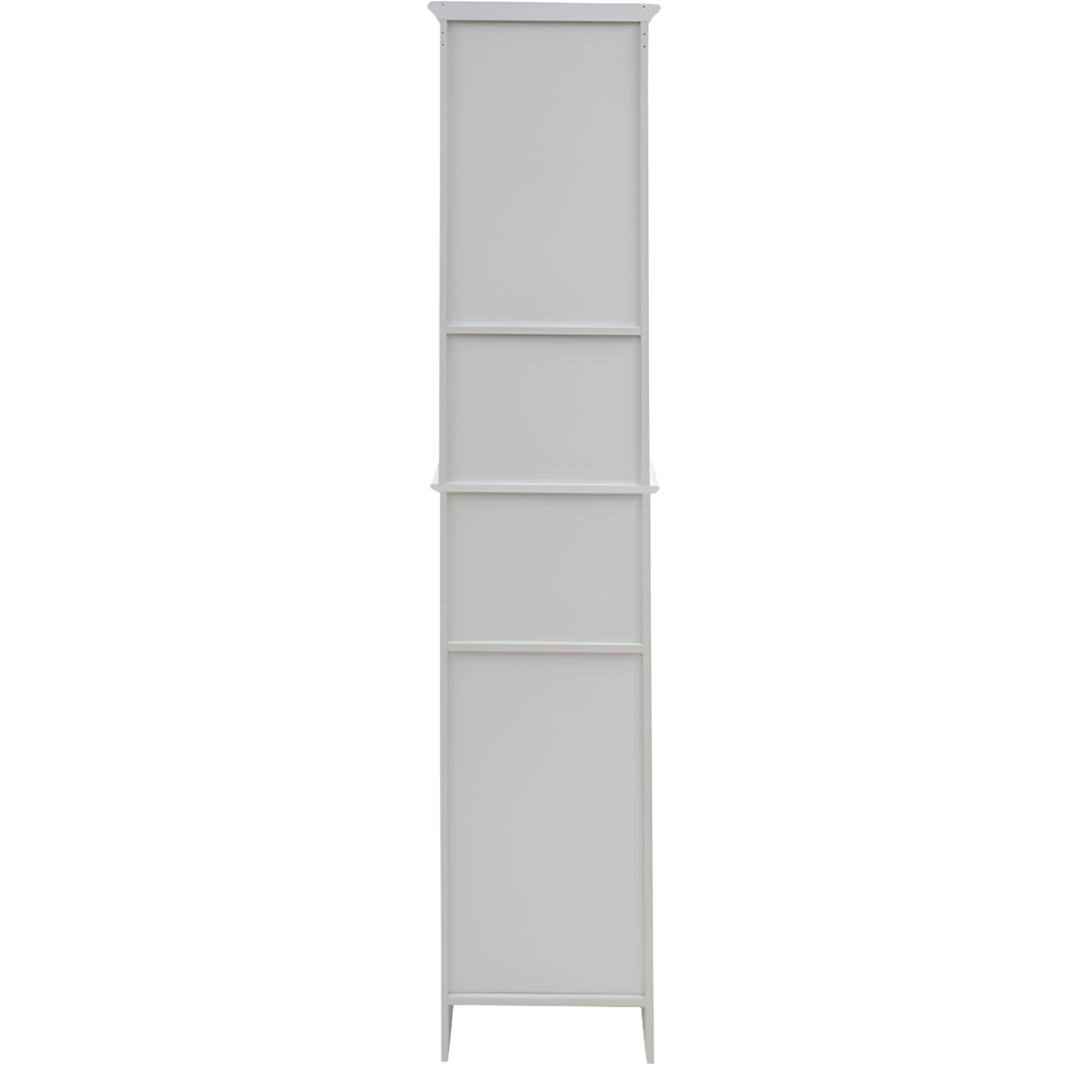 Quality materials and construction Sleek, Clean, Modern Style Easy assembly – complete instructions included Semi-gloss durable enamel finish Six total shelves: Center top two shelves are adjustable, Lower cabinet two shelves are adjustable. Lower cabinet door and stylish hardware included Overall Dimensions: 13.375″ W x 8.00″ D x 65.00″ H This product is CARB II and TSCA Tile VI compliant