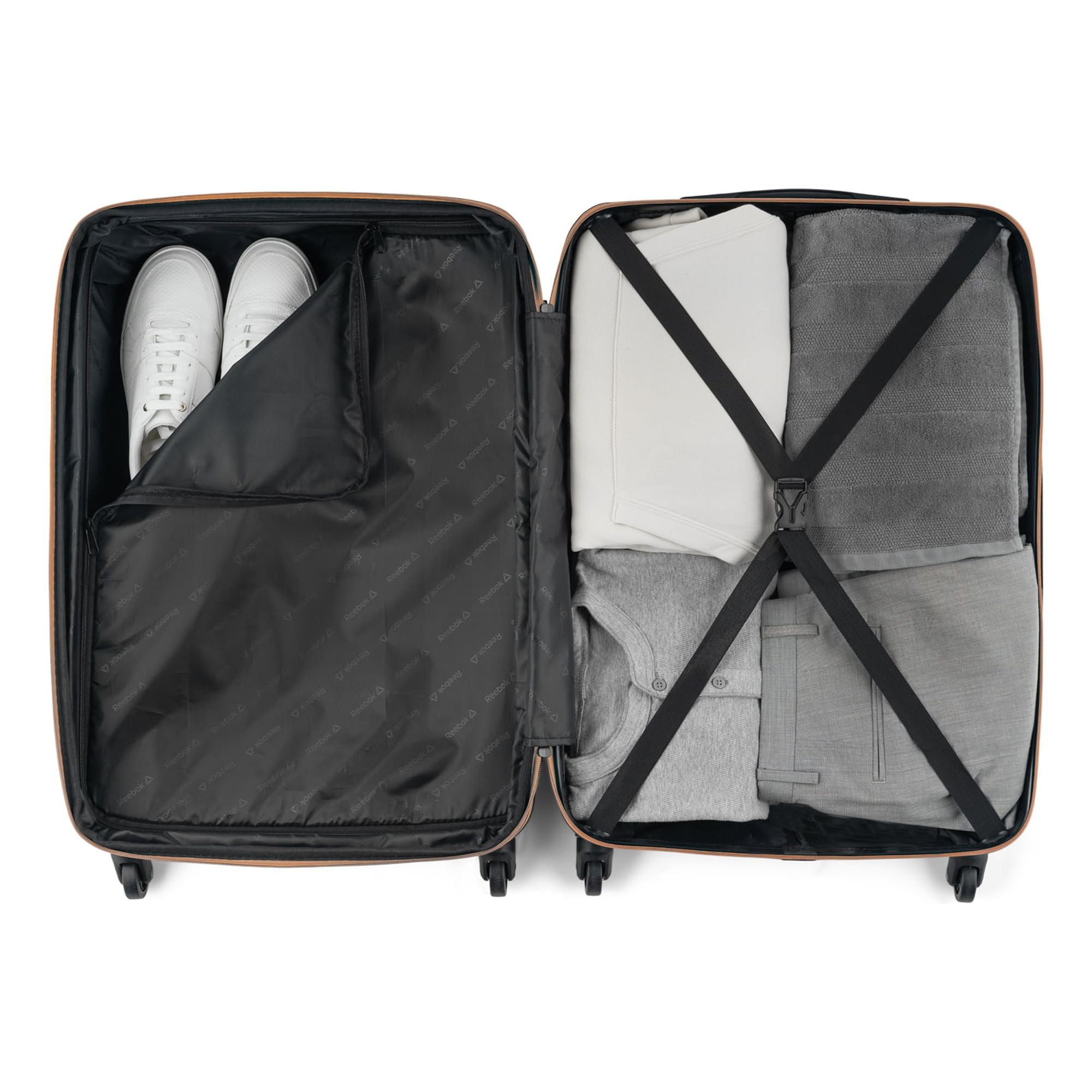 Made with resistant materials and reinforced handles, this hardside set is built to last. Includes practical travel-ready functionalities, such as an ergonomic handle, 360-degree spinner wheels for smooth rolling, and an expansion system to store those last-minute items.