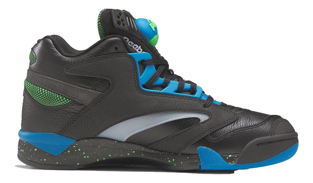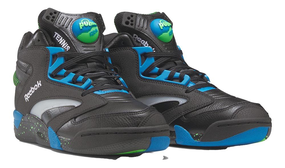 Reebok Men’s SHAQ VICTORY PUMP Basketball Shoes featuer a leather upper. A mashup between Shaq Attaq and the Court Victory Pump these silhouettes explore the possibility of Shaquille O’Neal’s domineering career on the tennis court. Sporting Shaq’s signature logo that is reimagined with a tennis serve the Reebok Shaq Victory Pump lets you be a force of nature whether you are serving smashes on the tennis court or executing the black tornado on the hardwood. Core Black – Energy Blue – Solar Lime men basketball fashion sneakers athleisure court Shaq