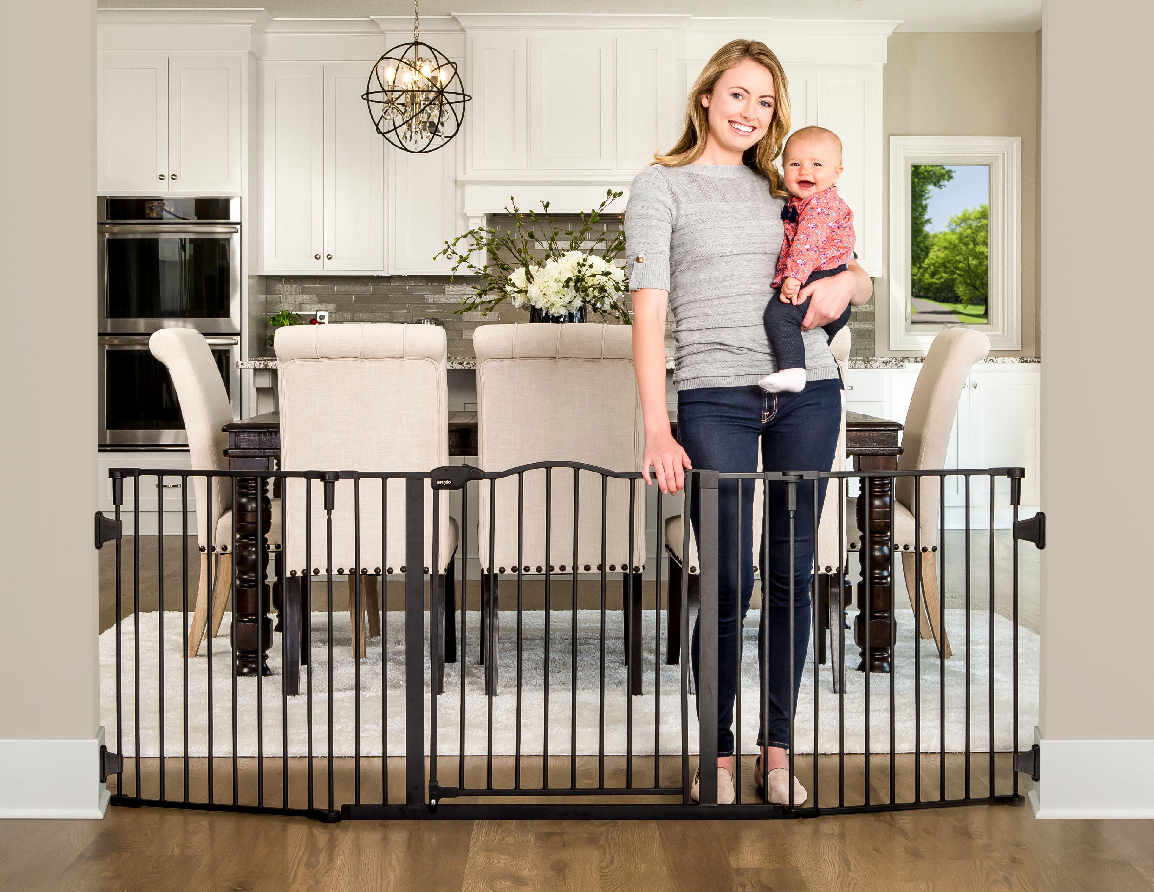 Regalo Deluxe Home Accents 74 inch Widespan Baby Safety Gate, Black, Ages 6 to 24 Months