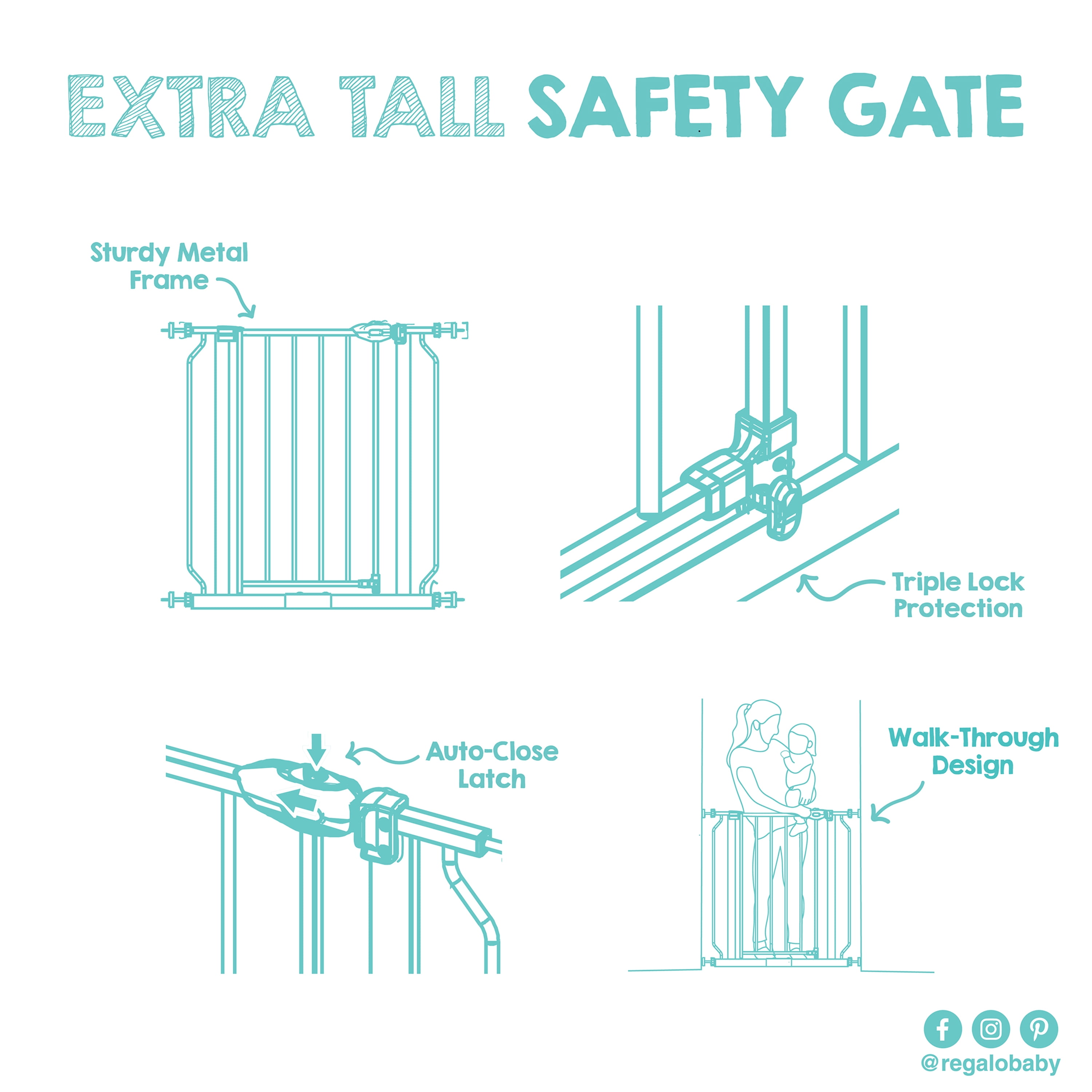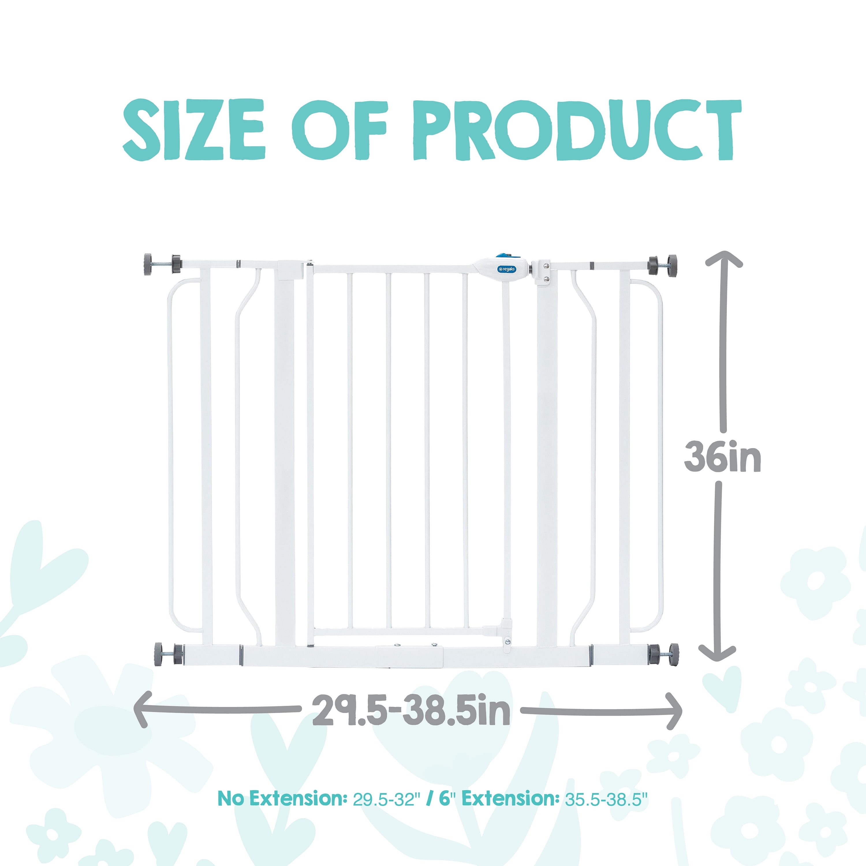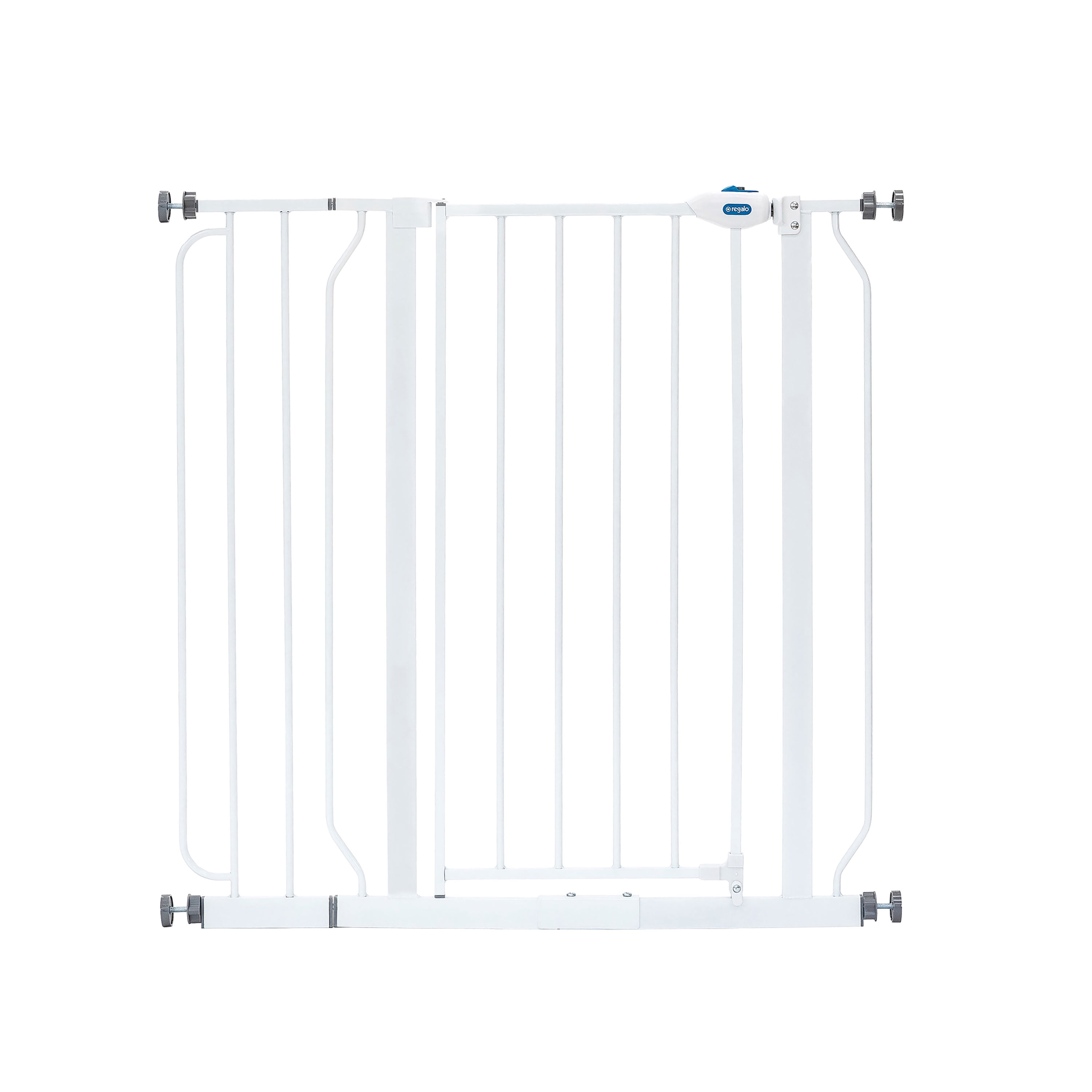 Your baby took their first steps, now they are off and exploring their new world. It’s time to childproof your home. A baby gate is an essential tool for protecting your child, especially if they like to climb. The Regalo Extra Tall Assembly Baby Gate provides the security you can rely on for those moments when you can’t be in arms reach of your little one. The all-steel construction of the baby gate provides parents with peace of mind that it will hold up to the everyday use of your curious toddler. The adjustable nature of the gate provides convenience accommodating door openings between 29-38.5″. We know gate installation is important. It needs to be safe, yet quick. To make installation hassle-free, pressure mounts the gate with the included rubberized tension knobs or use the included hardware to attach the gate to your wall.