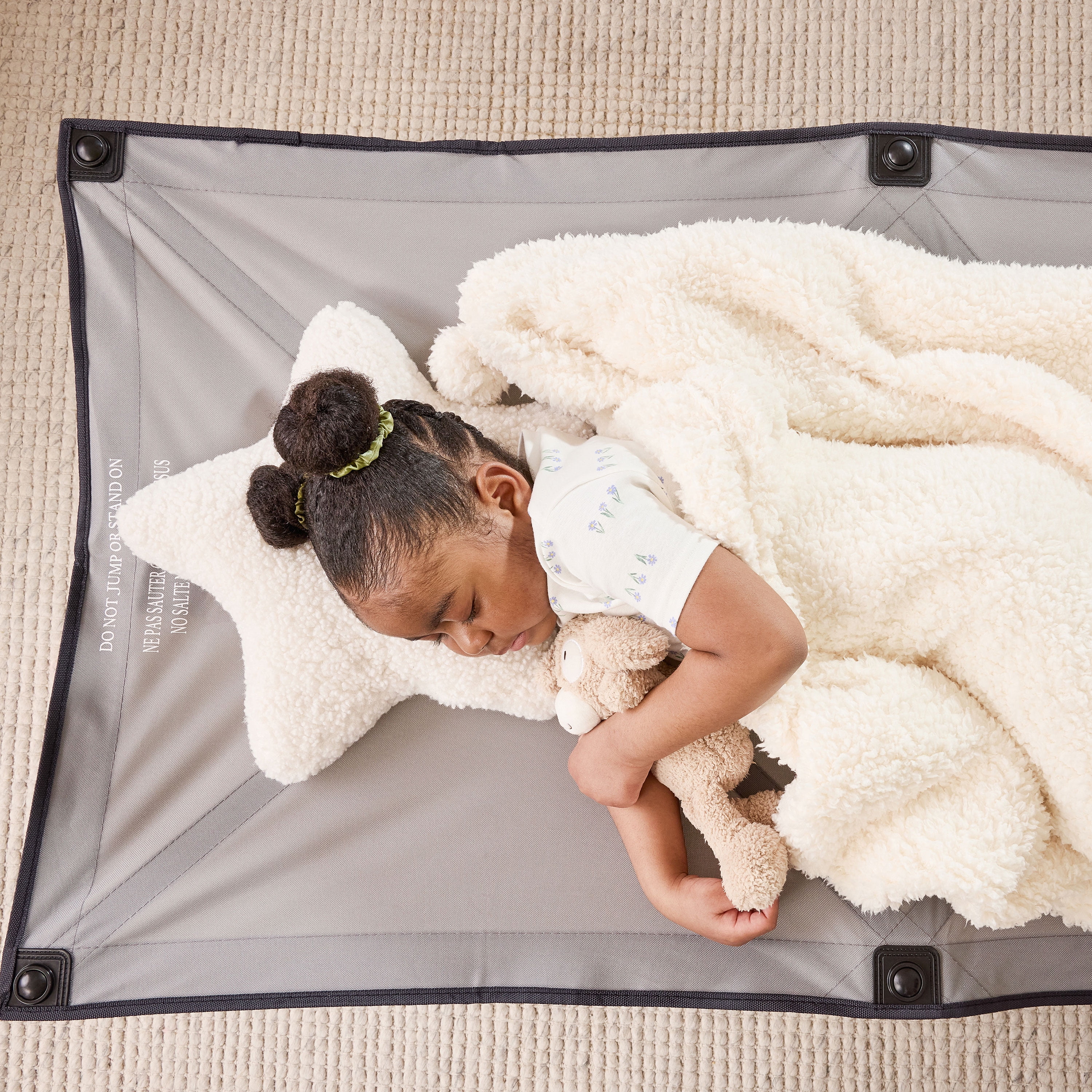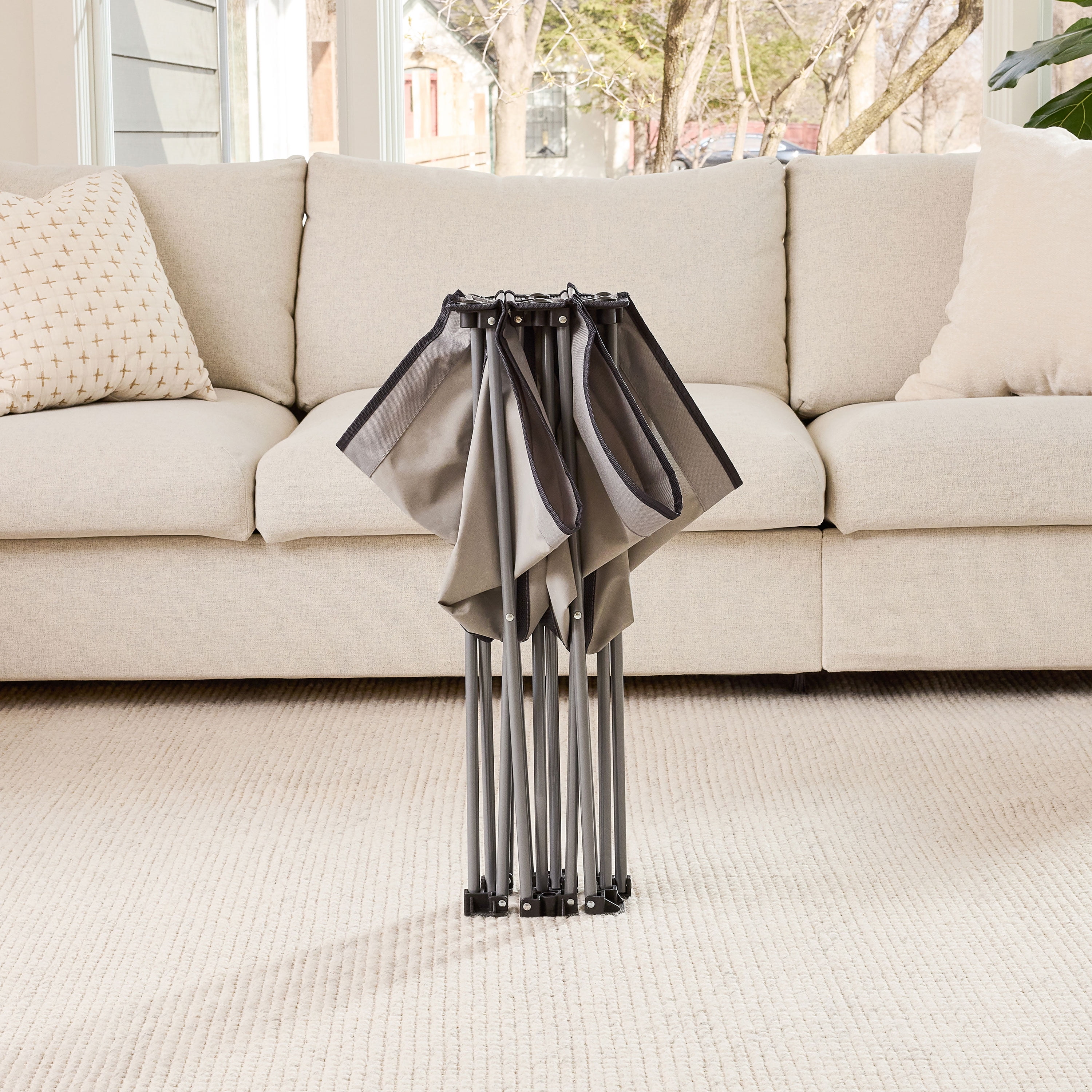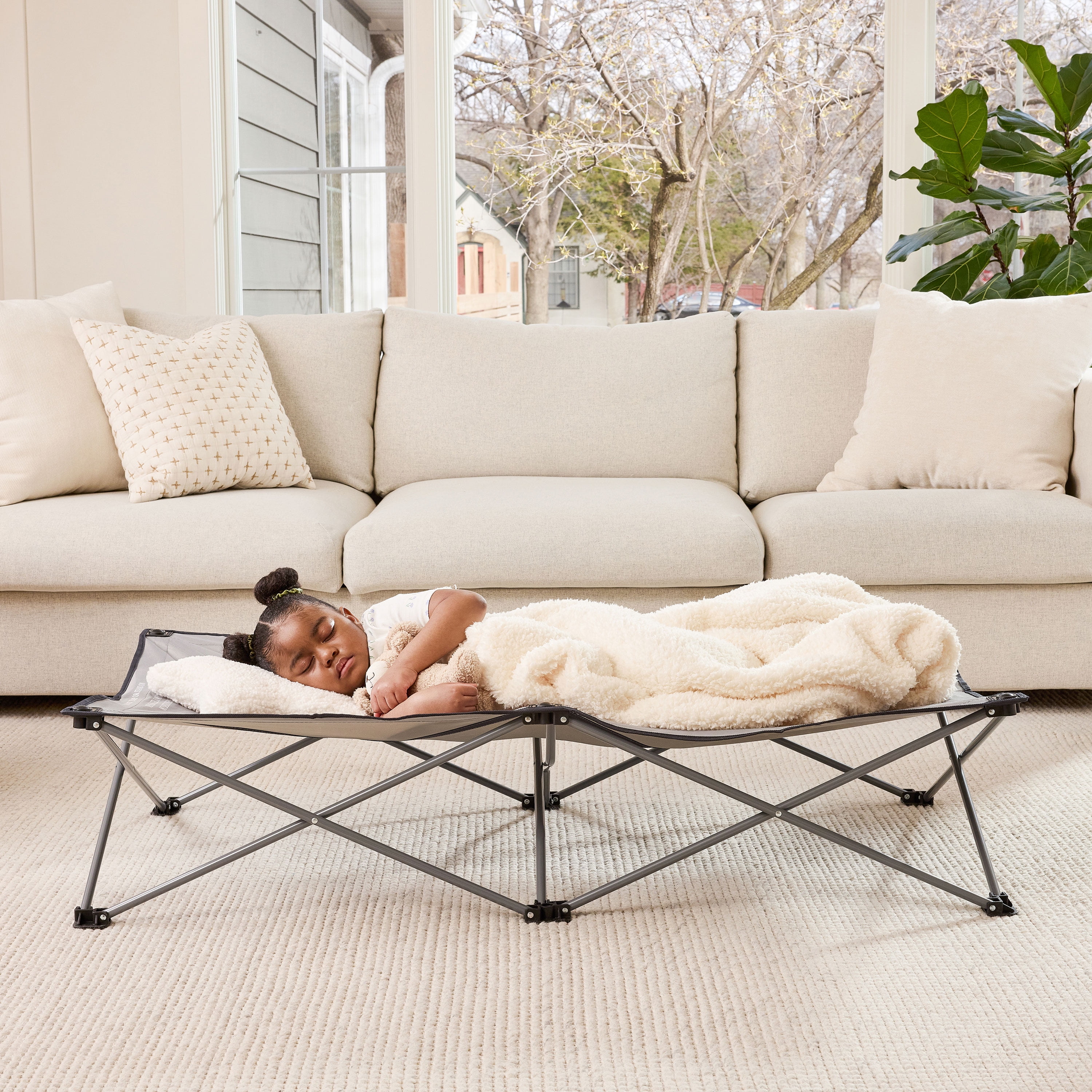 The Regalo Gray Extra-Long My Cot Portable Toddler Bed is a multi-functional cot for your little one who needs a safe, comfortable place to rest. An essential item for travel, sleepovers, nap time, picnics, and camping, the My Cot was designed for portability. The extra-long My Cot comes in at 54 inches long and can hold children up to 80 pounds, making it ideal for children 2-8 years old. Made of an all-steel construction, the versatile cot is built with durability, safety, and convenience in mind.