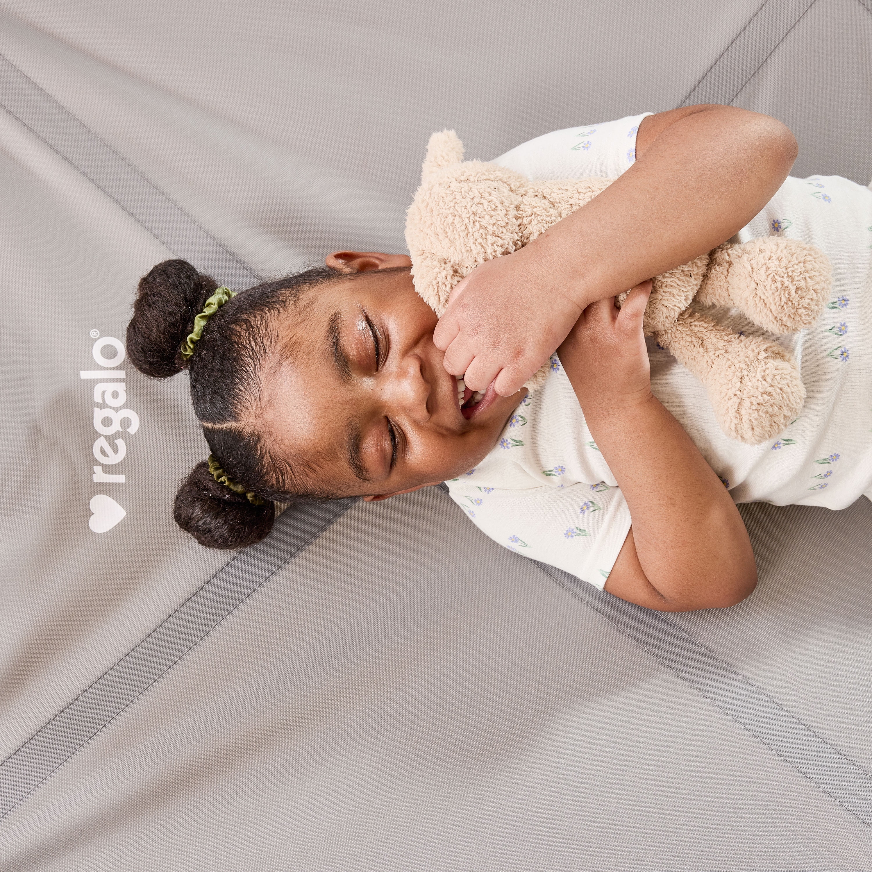 Regalo Extra Long My Cot Portable Toddler Bed, Folding Travel Cot for Kids, Gray