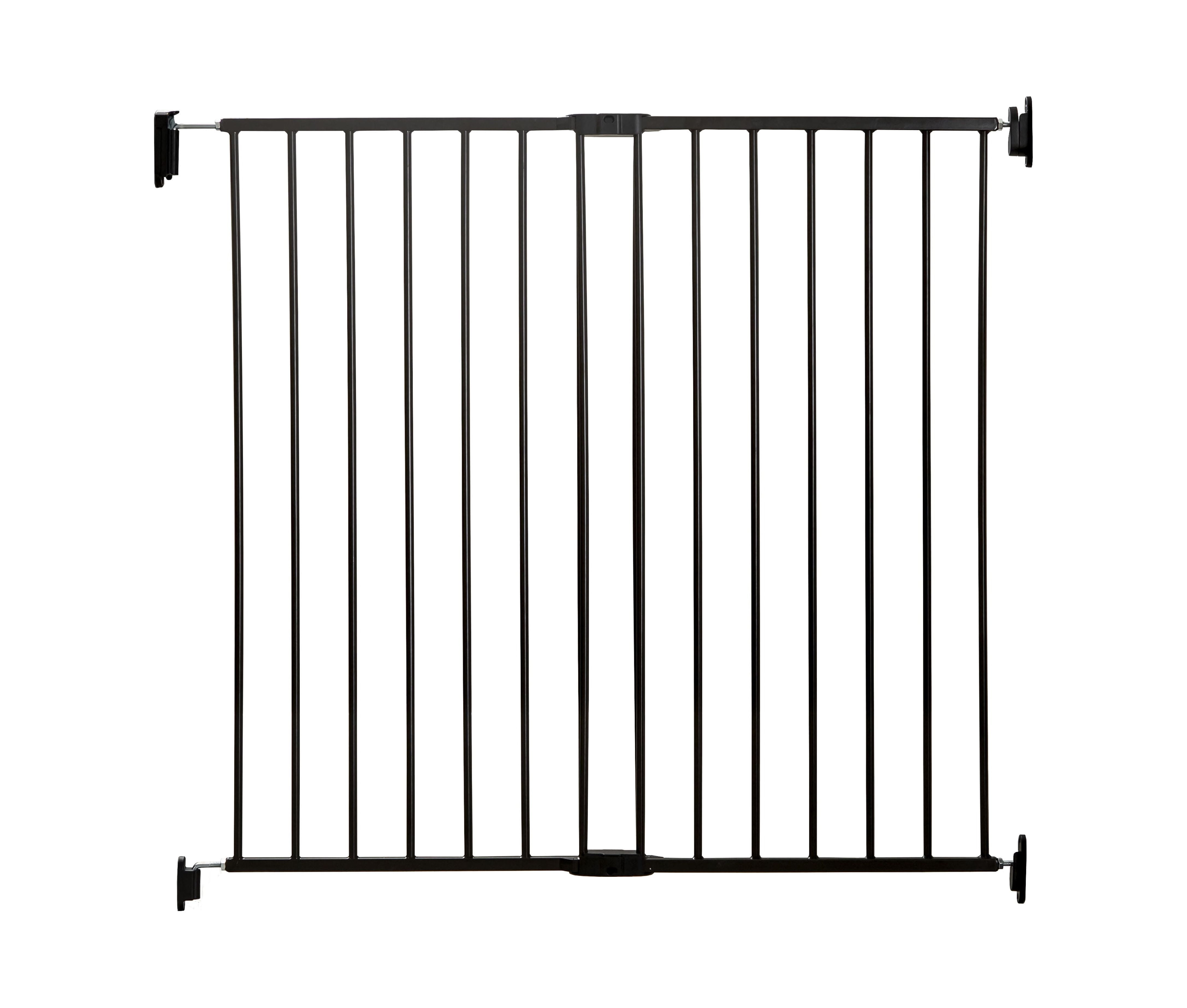 An essential tool in childproofing your home, the Extra Tall Regalo Top of Stairs Baby Gate is a sturdy, convenient gate to protect your mobile child from the dangers of stairs. Boasting an all-steel construction, the Extra Tall Regalo Top of Stairs Baby Gate was built with durability and strength in mind. This attractive safety gate is extra tall to provide further protection. It is also adjustable to accommodate stair openings between 24”-40.5”. With a simple rotating latch, the gate swings open, making it easy to pass through. The hardware mounts are included, to secure the gate to the wall or banister. Designed to be sleek and secure, the gate makes use of a hinge system to create a tight fit and easy walk-through.