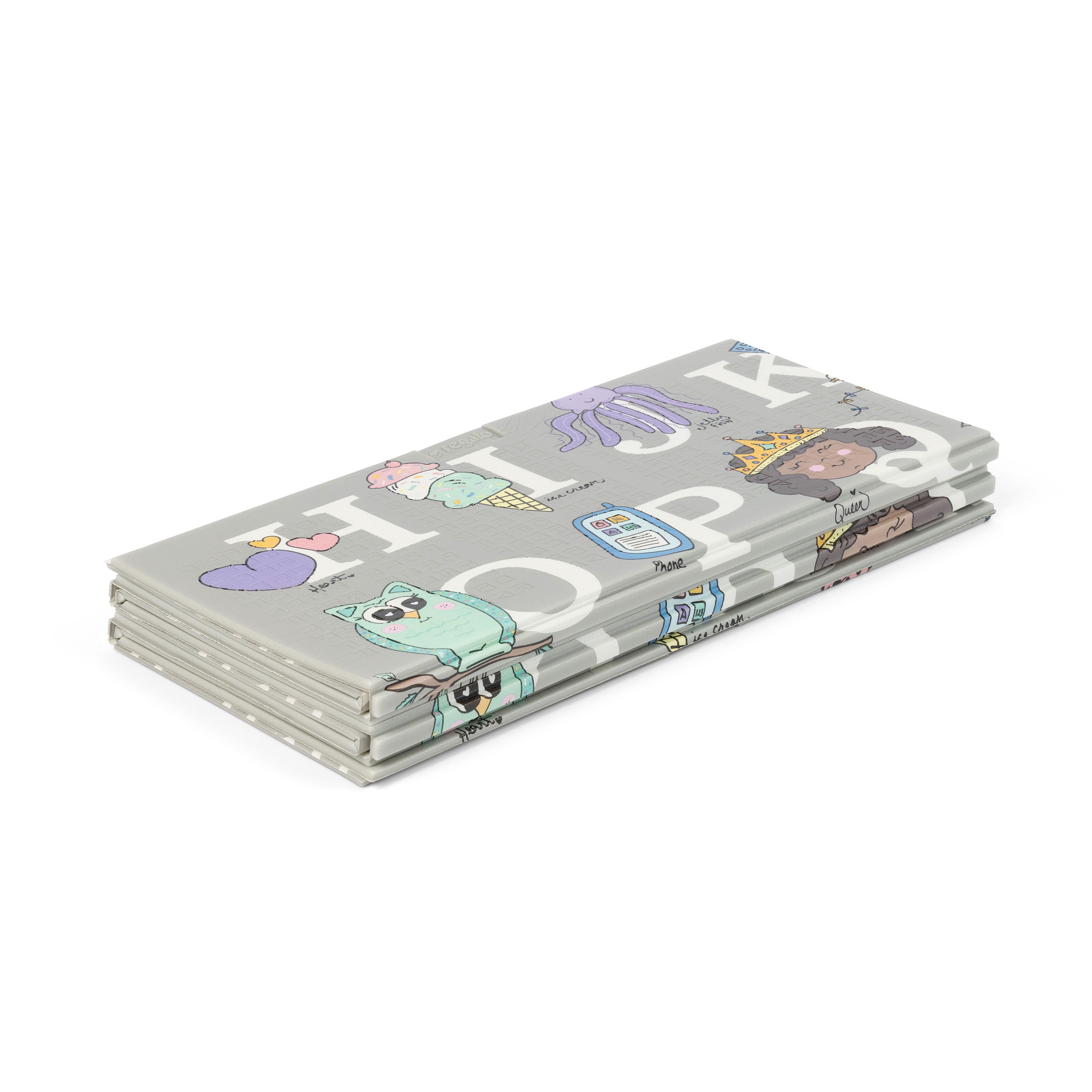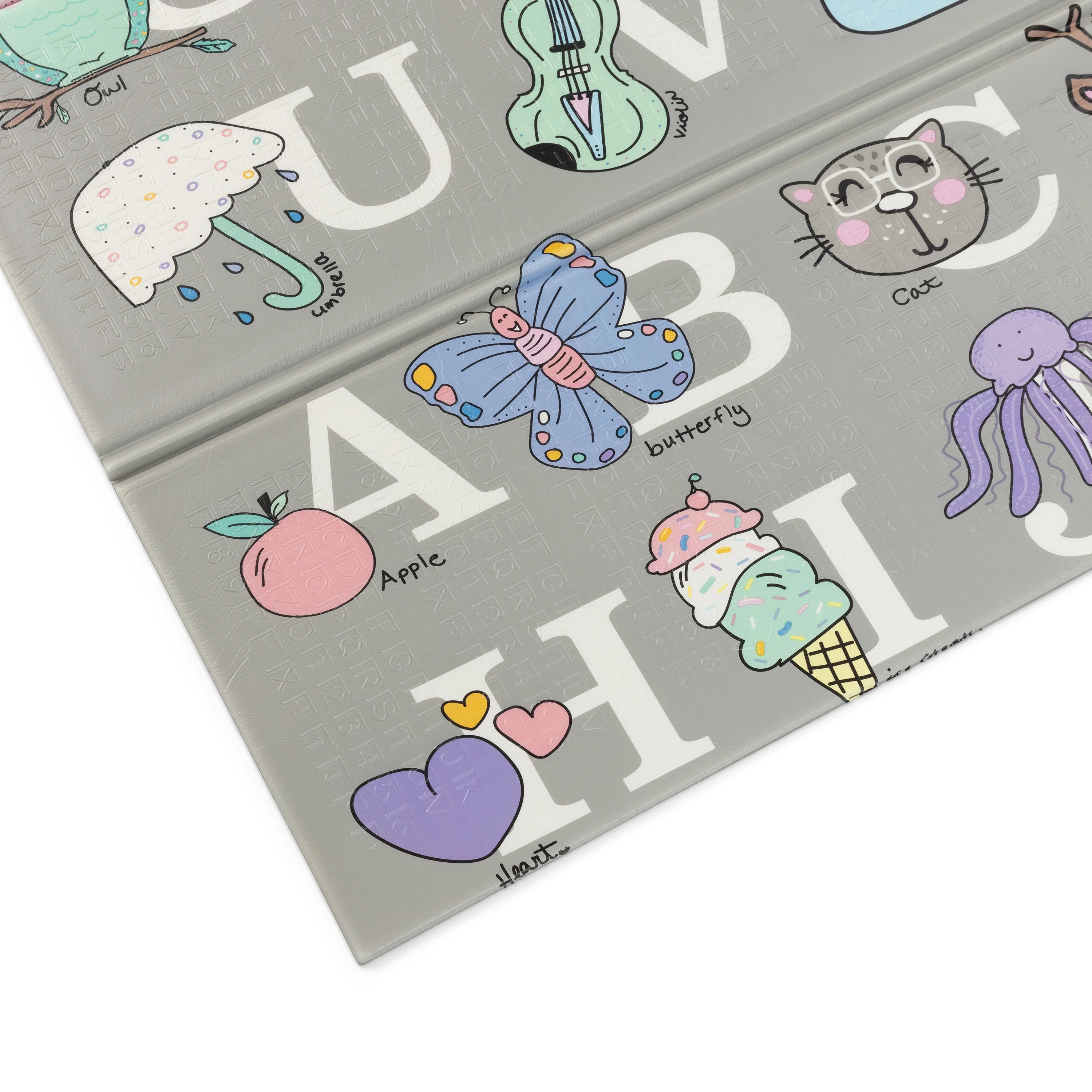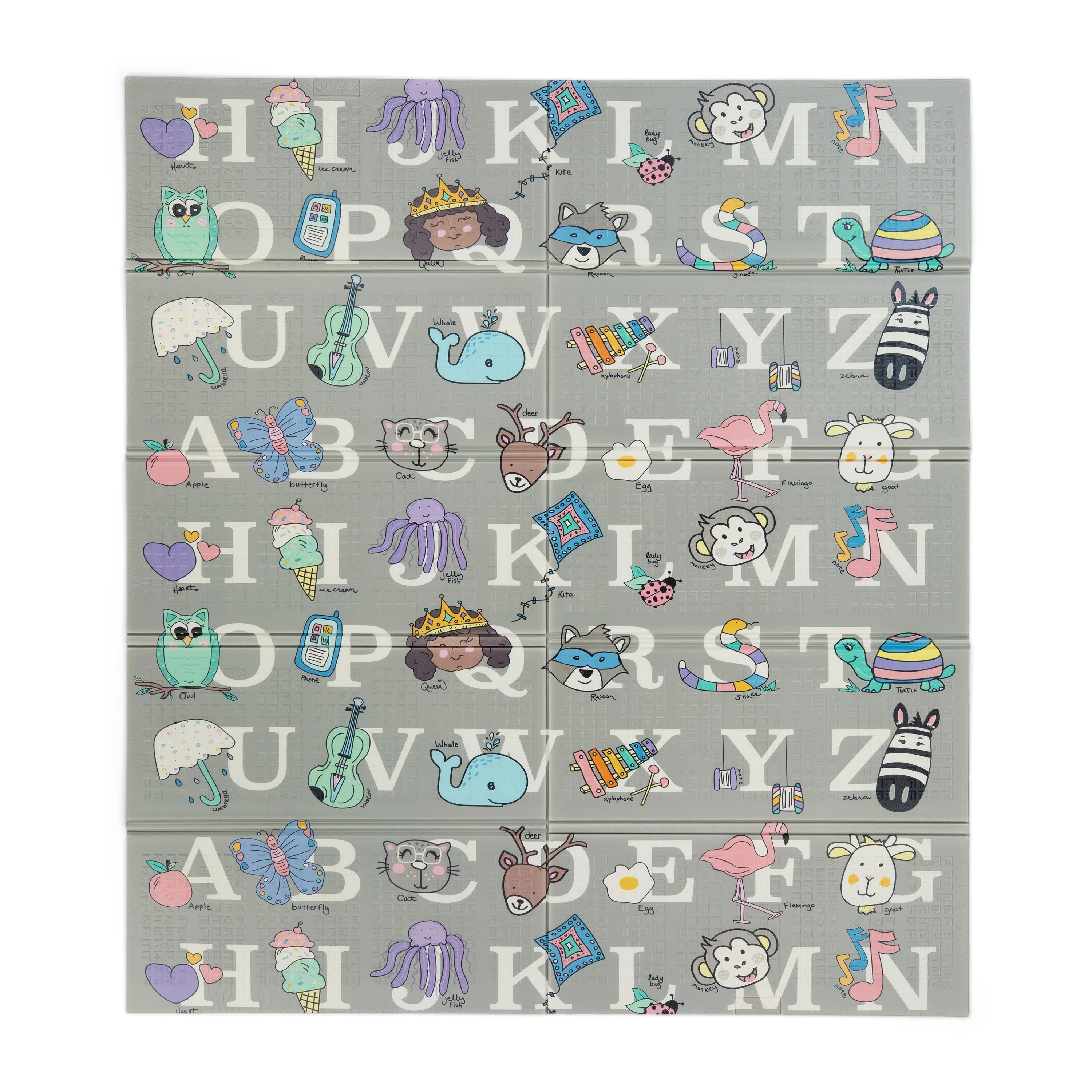 The Regalo My Play Mat™ is a lightweight, foldable, play mat ideal for home, time spent outdoors, and when traveling. Ideal in protecting those little hands and feet by covering hard surfaces or to create a play space – the My Play Mat™ folds up in seconds to be tucked away for later use. This playmat is reversible featuring adorable alphabet characters on one side and gray chevron pattern on the opposite side. Measuring 77” x 71”, the My Play Mat™ is made with soft foam and is wipeable with a wet cloth for easy wipe down.