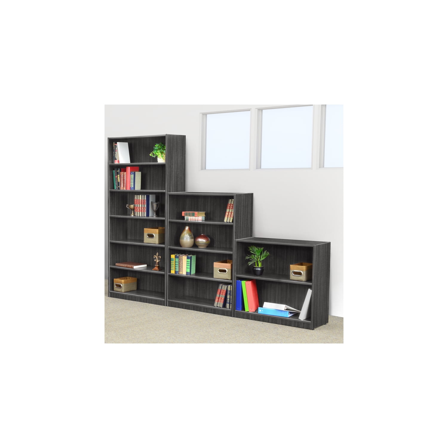Medium-sized Legacy bookcase is great for small offices dorm rooms living rooms entryways and more. Three adjustable shelves that can be moved in 1-inch increments Adjustable glides on the bottom of the base keep the shelves level Stylish Ash Grey laminate is scratch stain and scald resistant Backed by a 10-year limited manufacturer’s warranty Assembly Required: Yes Product Dimensions:32 x 14 x 47 Product Weight(lbs):90 Style:Modern Office Material:Wood