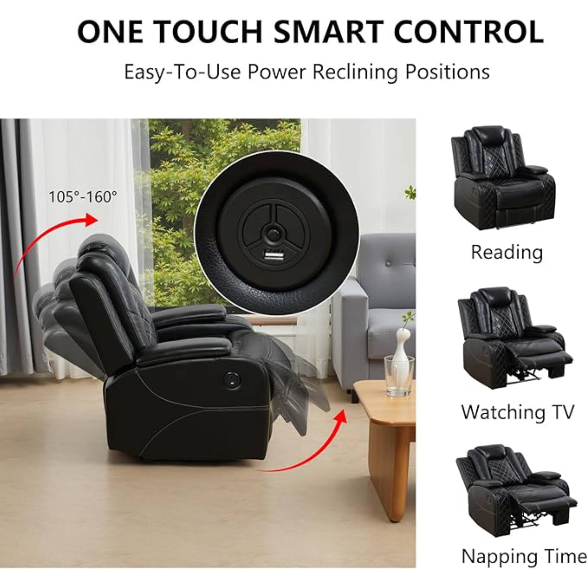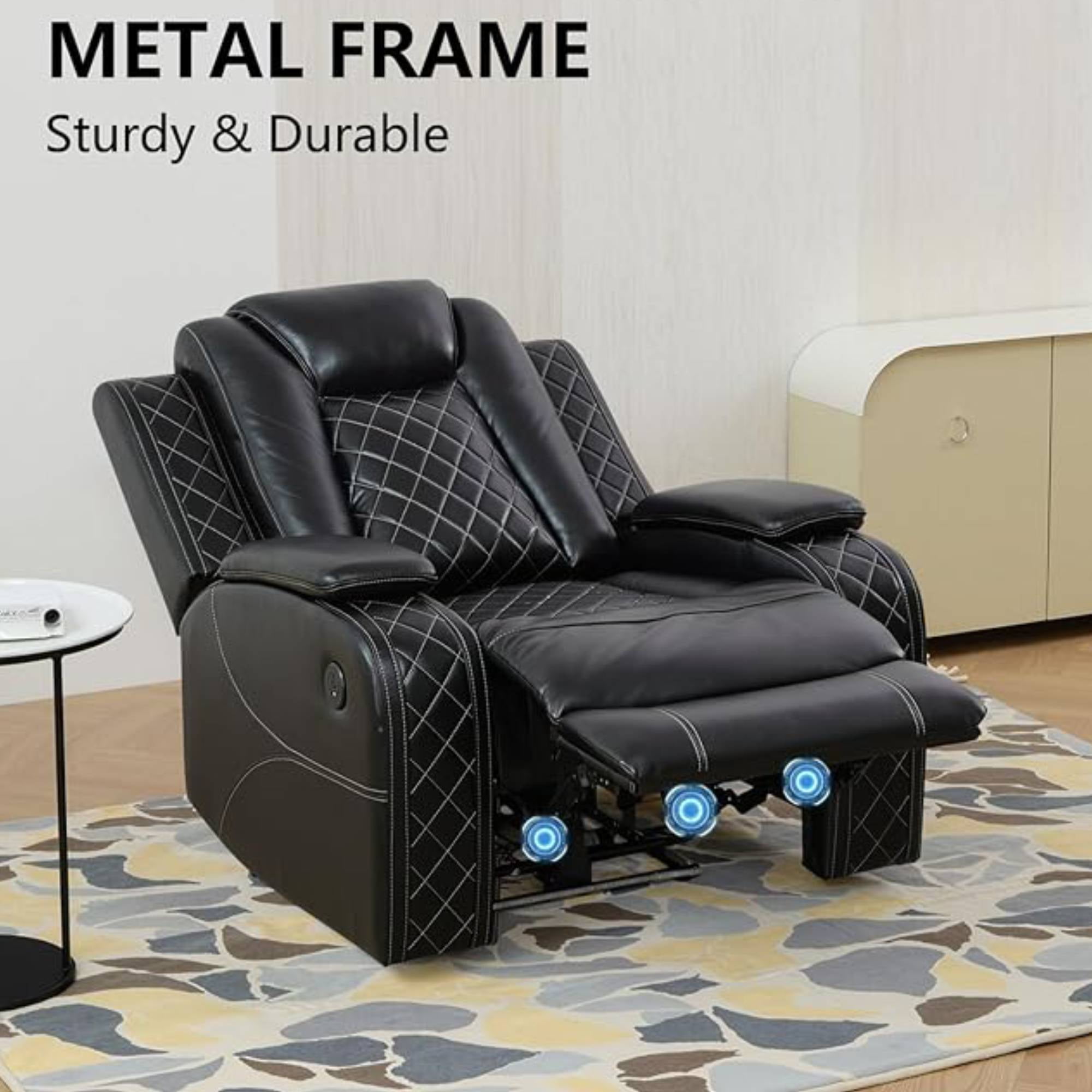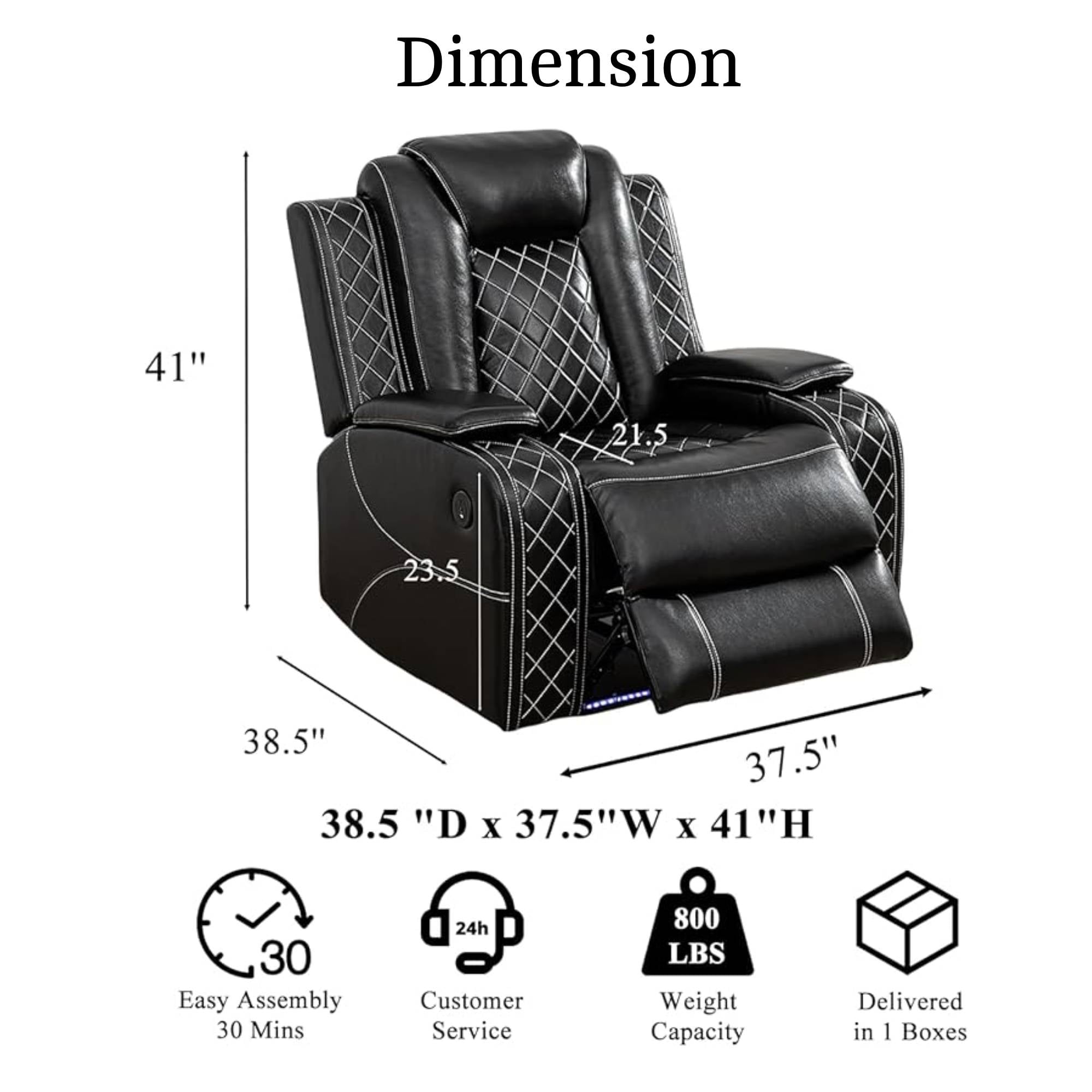 Reliancer Power Recliner Sofa Set, Leather Single Sofas Chair with LED Light for Living Room/House/Office
