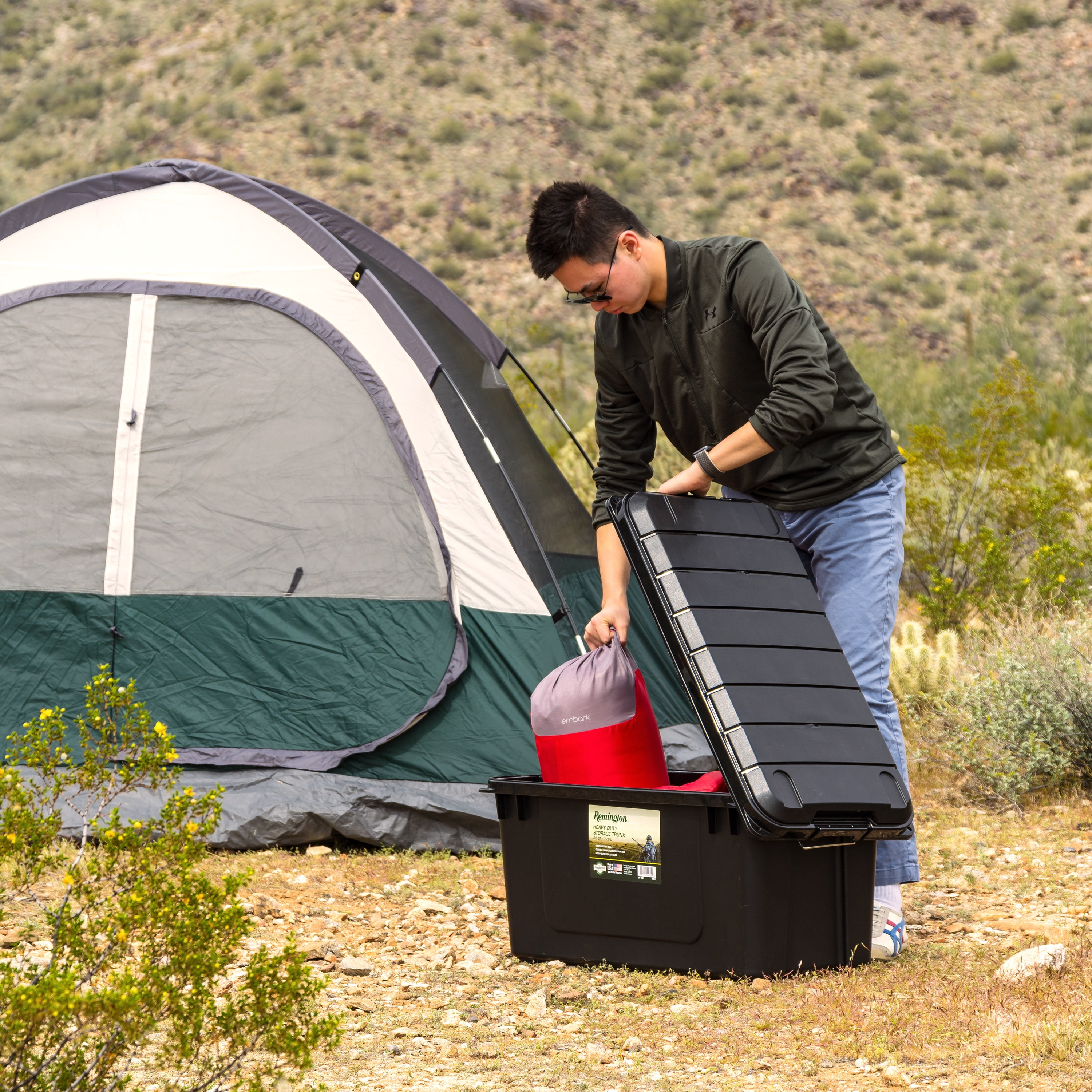 Remington 22 Gallon Black Plastic Storage Bin with Lid Tote, Plastic Storage Container with Lid, 4-Pack
