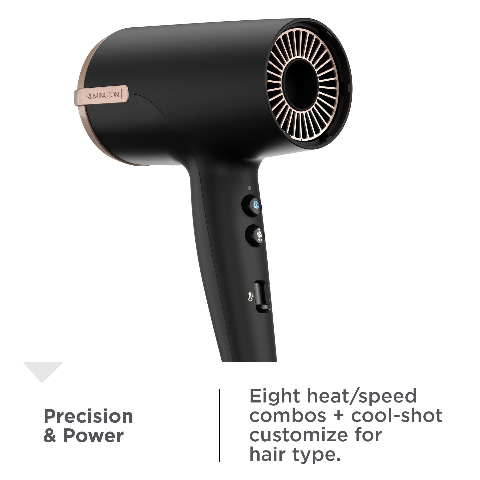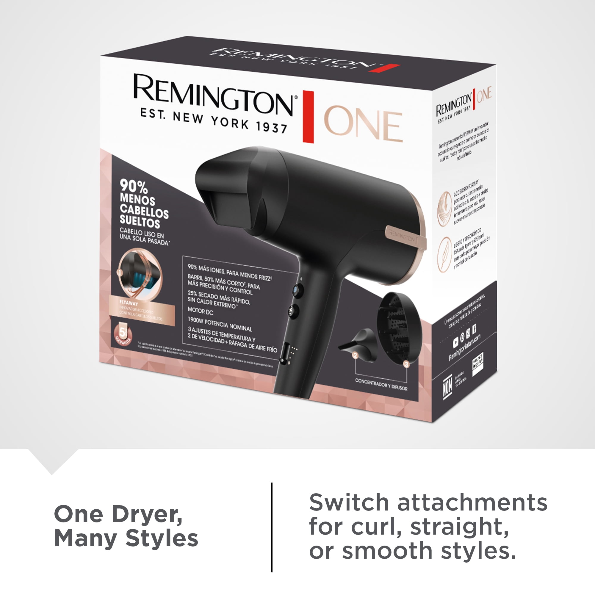 Multi-style design with Curl Diffuser, Flyaway Tamer, and Styling Concentrator attachments for the REMINGTON One Multi-Style Ionic Hair Dryer Double ionic system helps reduce frizz and boost shine for smooth, healthy-looking hair Ceramic hair dryer technology provides even heat distribution to protect hair from damage ThermaCare sensor regulates heat to maintain safe styling temperatures Lightweight body and 50% shorter barrel for better control and precision