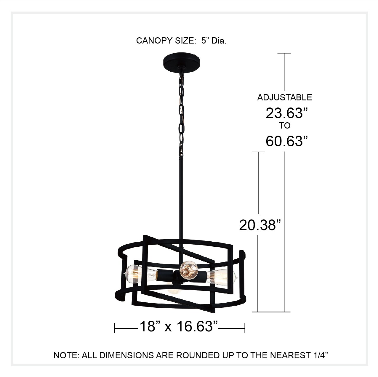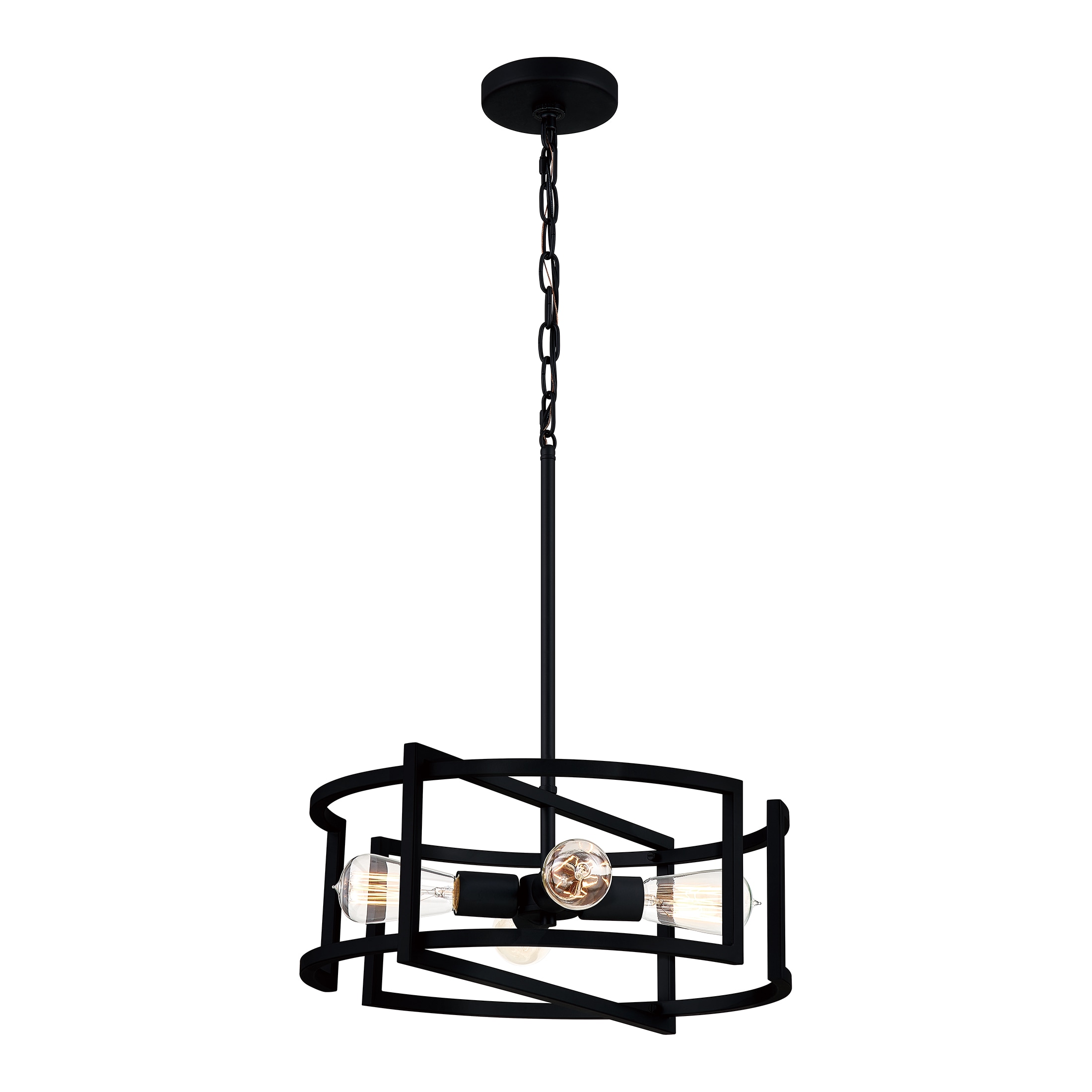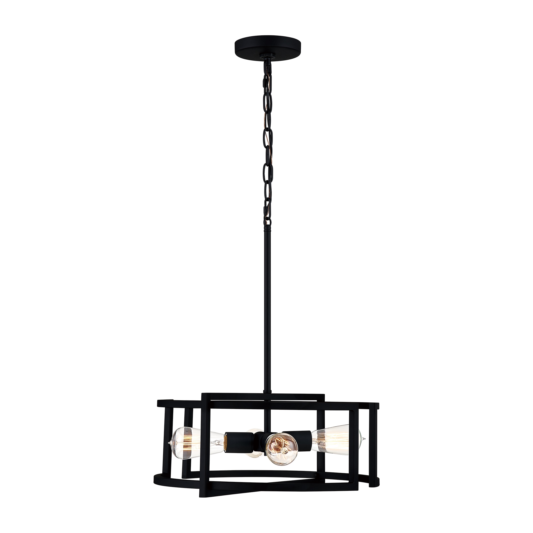 Understated beauty and transitional appeal are the cornerstones of the Renford 4-light pendant light. The open framework is beautifully paired with a classic matte black finish for added appeal. Looks best when paired with vintage filament bulbs to provide a soft, ambient glow. Height adjustable to pair with varying ceiling heights and design styles.