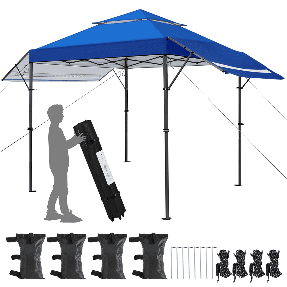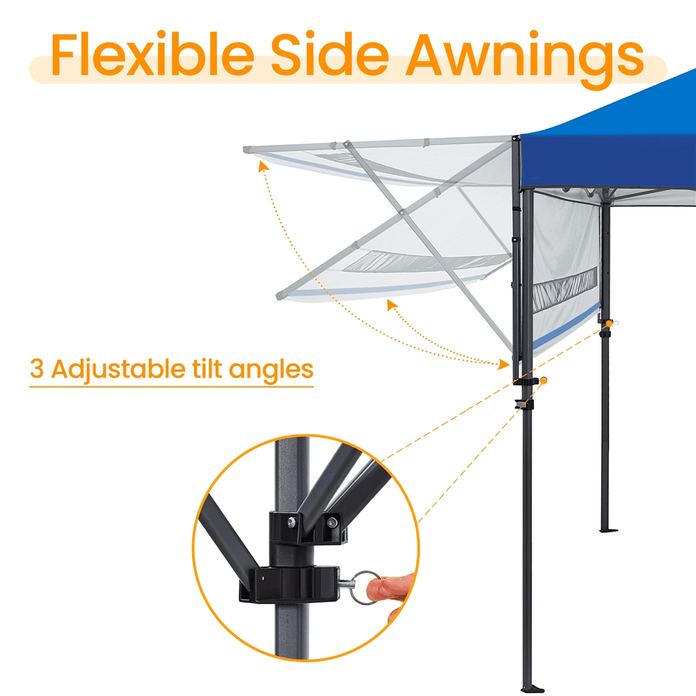 Renwick 10 × 17 ft Pop-up Canopy Tent w/ Side Awnings and One-handed Setup, Blue