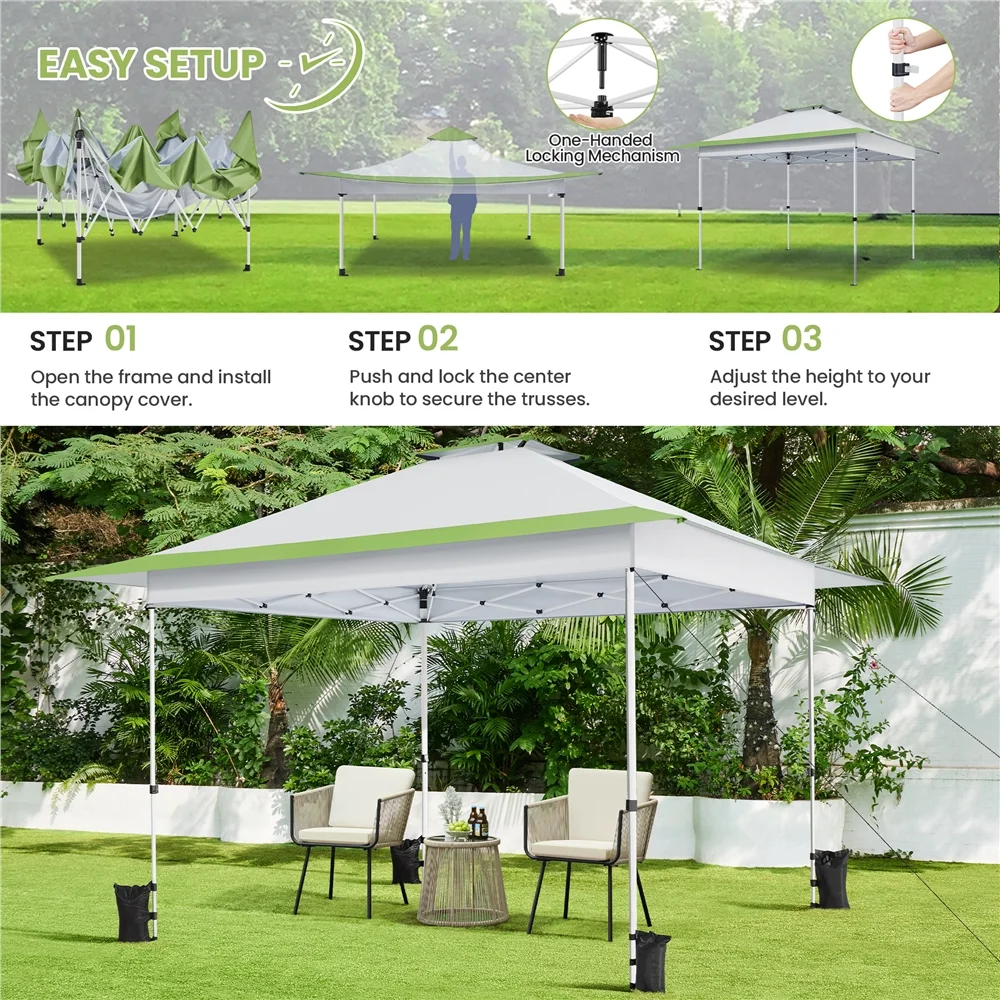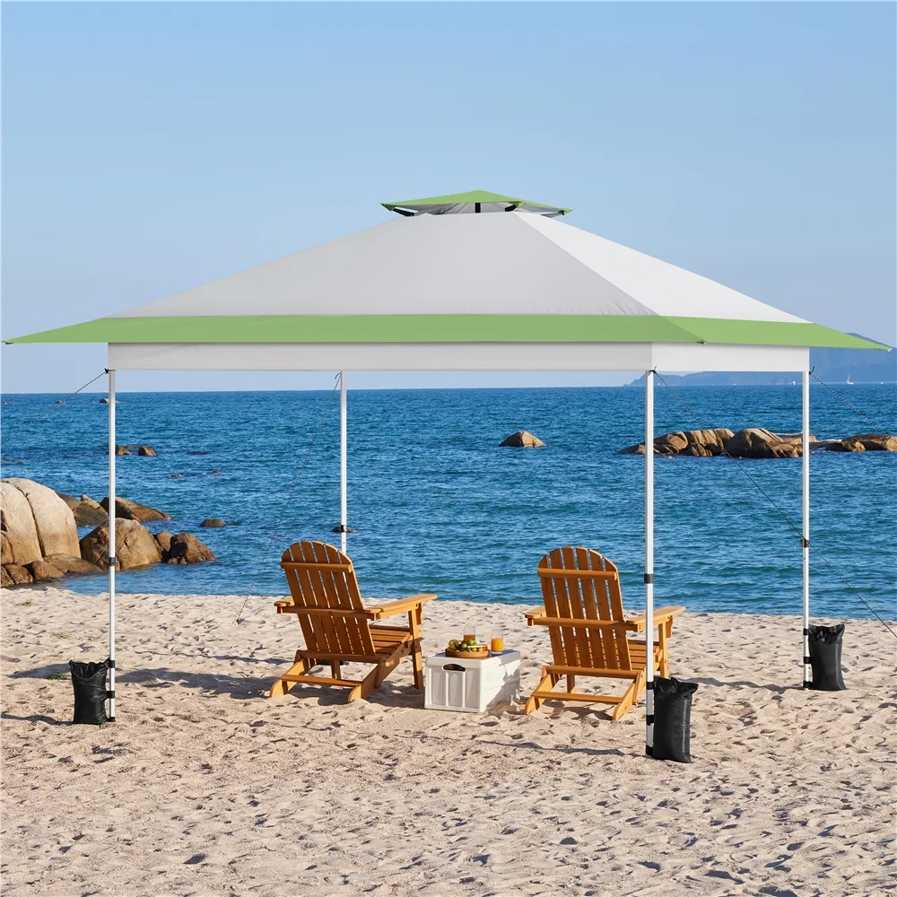 Renwick 13 Ft L and 13Ft W Outdoor Portable Pop Up Canopy with Rolling Storage Bag, Light Gray/Green