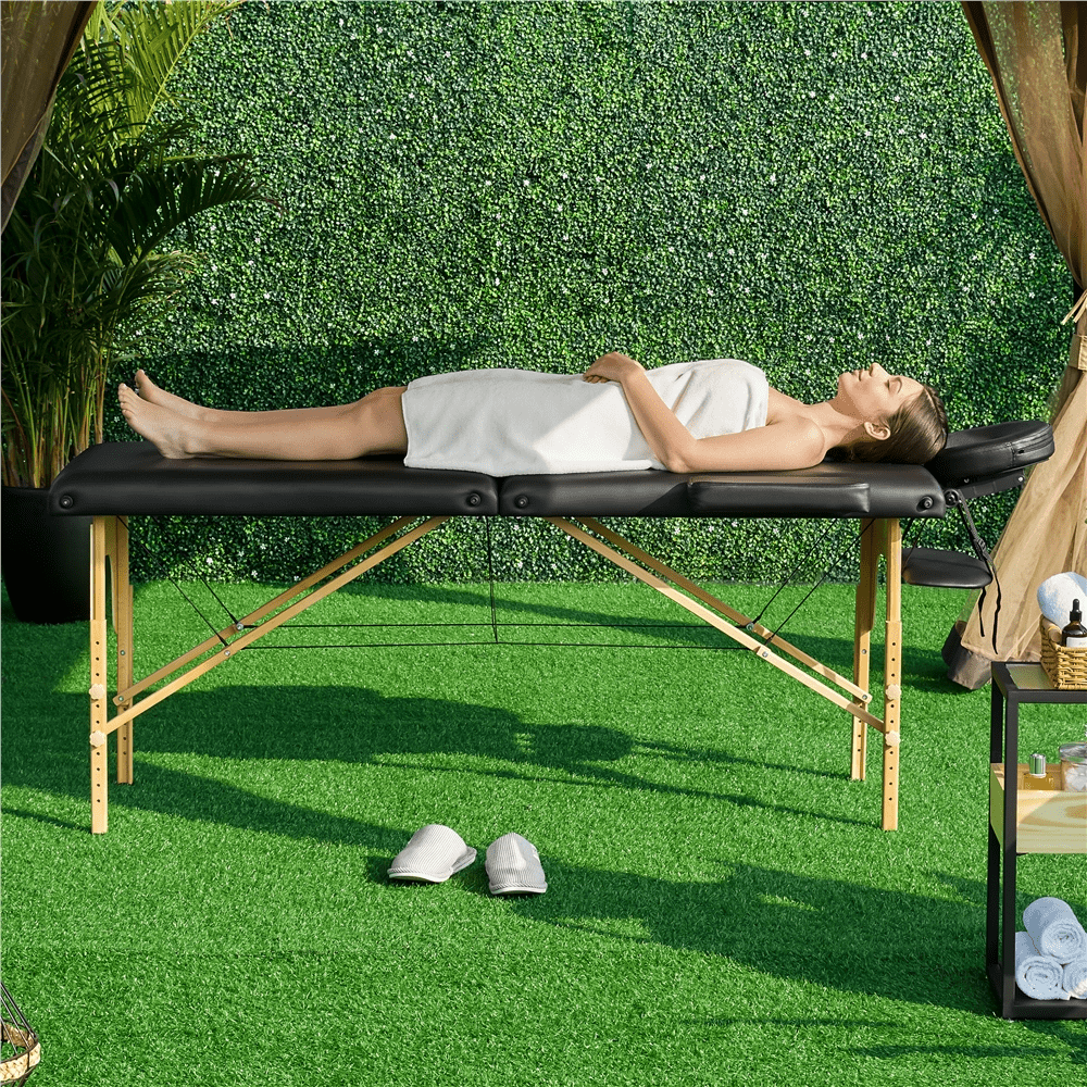 Renwick 2 Sections Adjustable Folding Massage Bed with Headrest/Armrest/Hand Pallet, Black