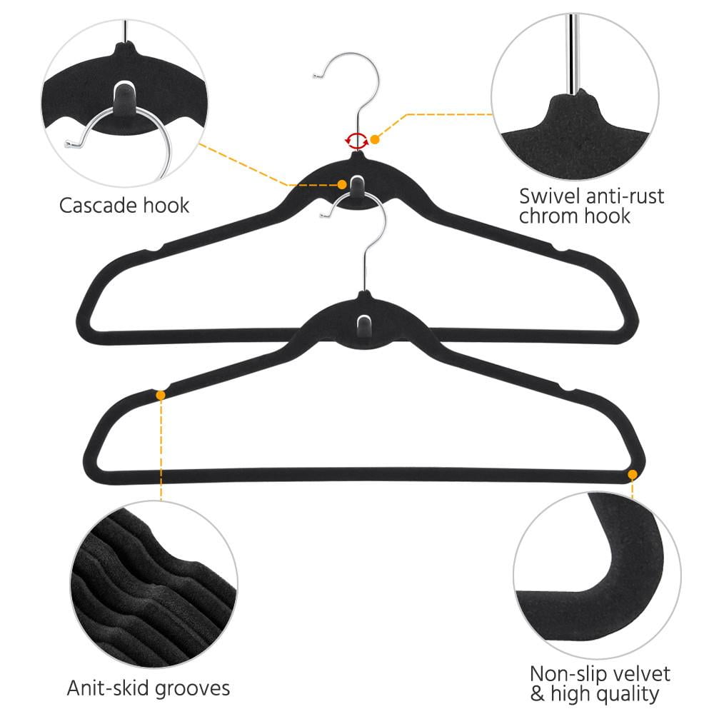 Renwick 200 x Cascading Non Slip Velvet Hangers, Black