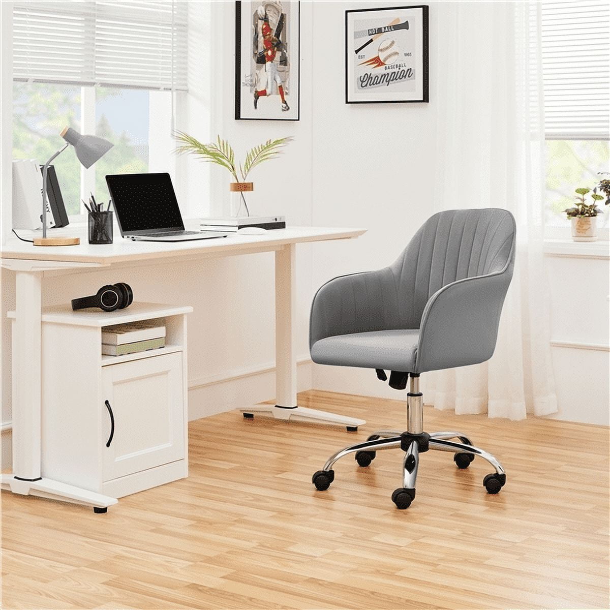 Renwick 2Pcs Modern Velvet Task Chair with Adjustable Height for Adult, Light Gray