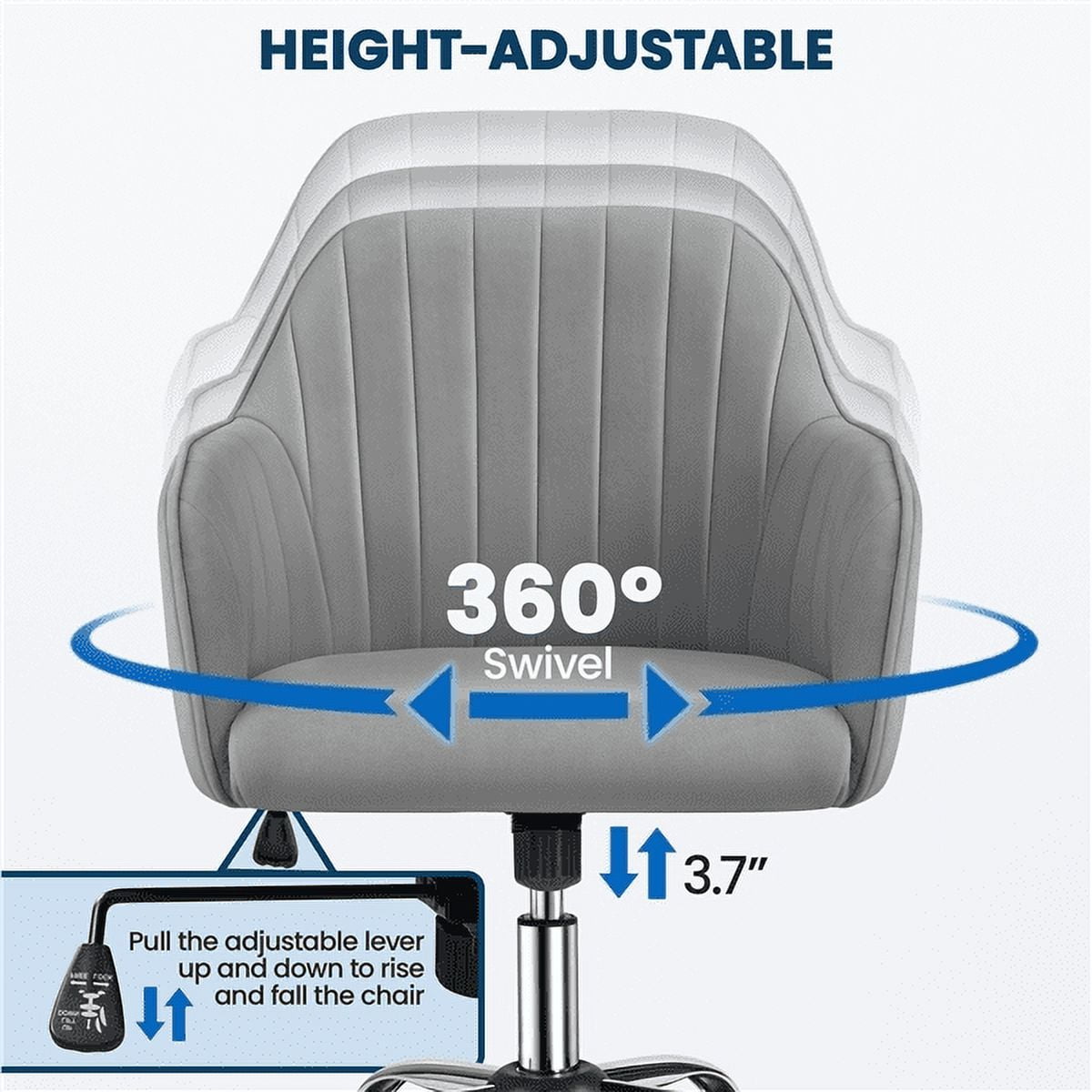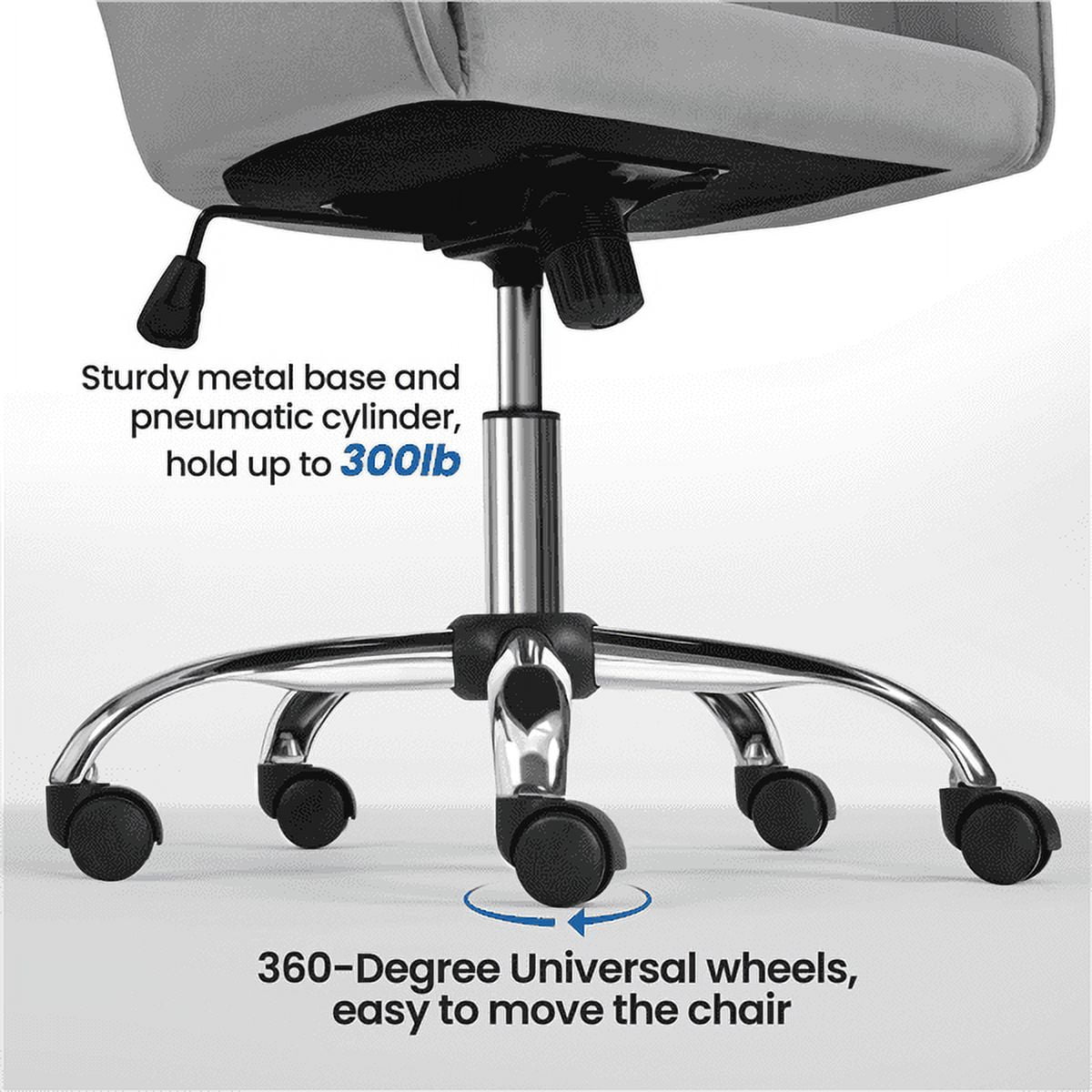 It’s an ideal desk chair for home use or office use. Make your sitting comfortable with this comfy computer chair! You can use the adjustment lever to adjust height safely and freely. With 360° swivel casters and a heavy-duty base, this armchair can be moved from task to task conveniently; with the modern design and aesthetically pleasing appearance, our desk chair can also provide you with a comfortable sitting experience and the fabric texture makes your living/working space stylish. We are dedicated to what makes both your life and budget happy, rest assured that all our items are subject to rigorous tests before packaging and shipment. After assembly, the dimensions are 24″L x 24″W x (33-36.5)”H.