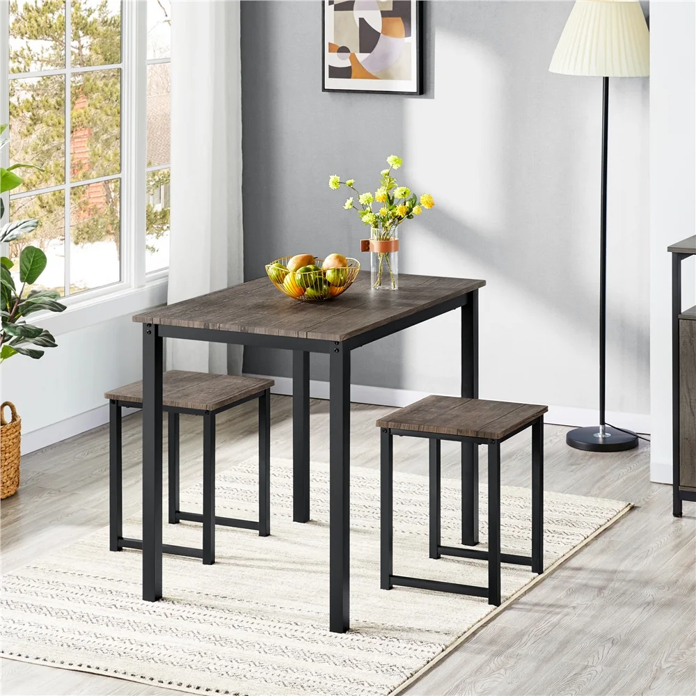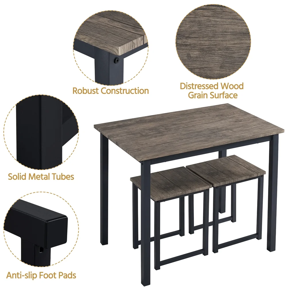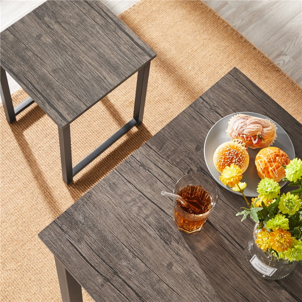 Renwick 3-Piece Dining Set with Industrial Square Table & 2 Backless Chairs, Drift Brown