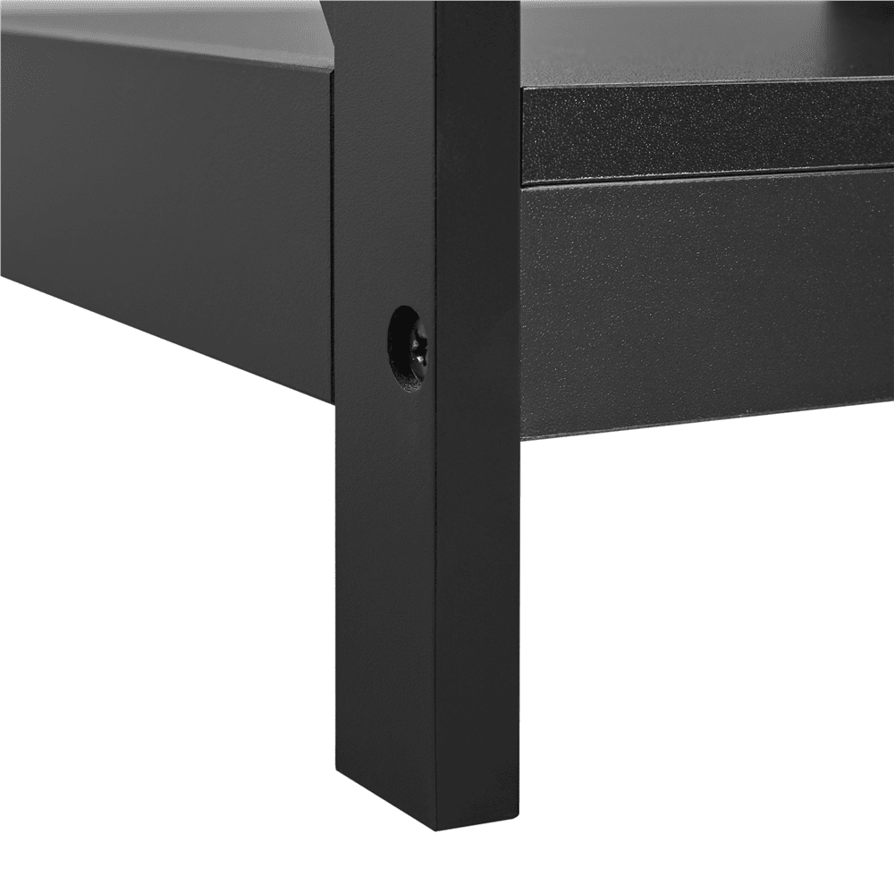 Selected Materials: The end table is made of durable E1-compliant MDF with water-resistant veneer, sturdy, solid, and with a high weight capacity that can hold up to 88 lb in total. Decent Storage Space: This three-tiered side table offers practical storage for essentials. The spacious top allows you to keep a lamp or the remote control, phone, or eyeglasses close at hand. The two open shelves can be used to store books, magazines, storage baskets, or ornaments. Modern Design: This wooden side table showcases a contemporary aesthetic with sleek lines and an X-shaped frame. It seamlessly complements any room décor while adding a touch of charm to your space. Easy to Clean: The modern sofa side table is finished in waterproof and scratch-resistant veneer over durable MDF. It’s easy to wipe clean with a damp cloth. Specifications: Color: Black; Materials: MDF; Assembled Dimensions: 16″ L × 16″ W × 24″ H; Maximum Weight Capacity: Tabletop: 44 lb; Shelf: 22 lb.